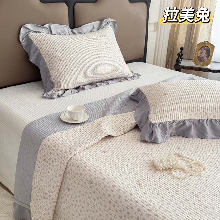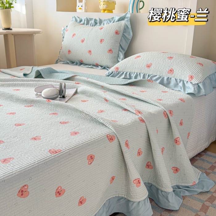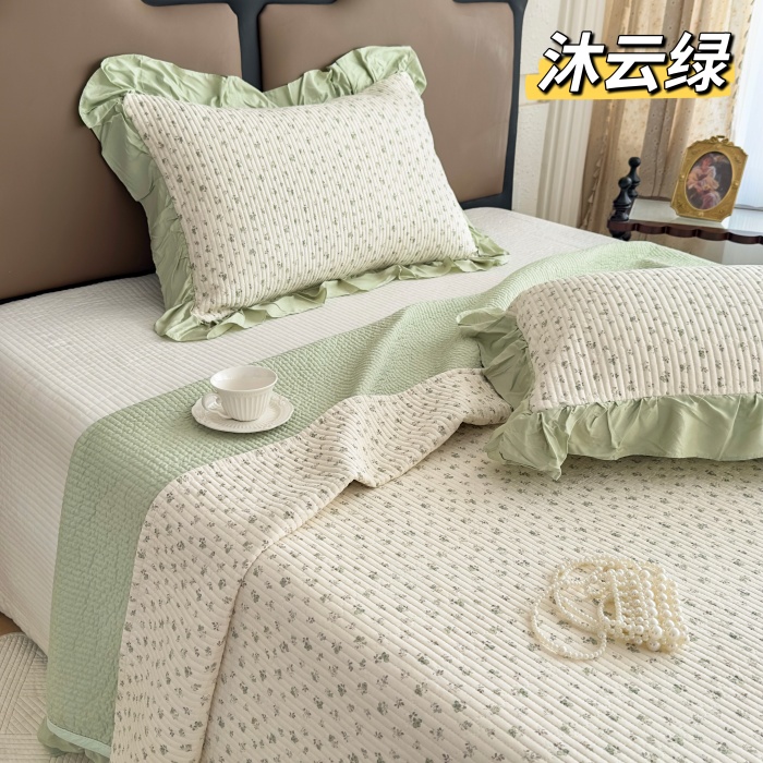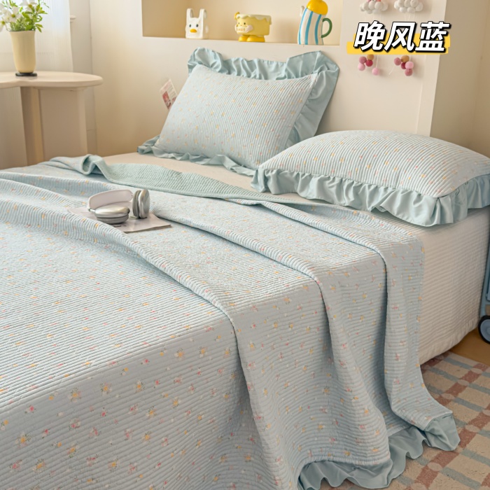 (总)莫代尔天丝床盖三件套 砂洗小清新夹棉绗缝防滑床单四季