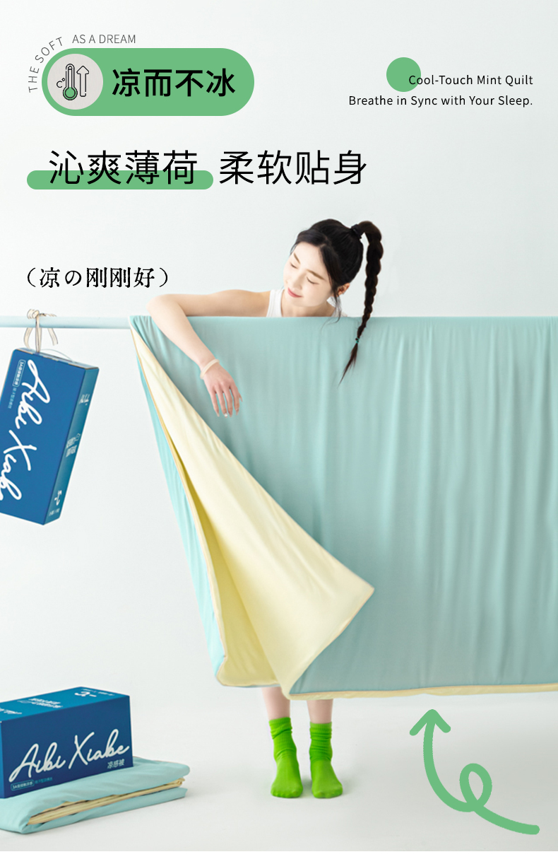 (总)爱彼家纺 2026新款冰吸薄荷A类氨纶黑科技凉感夏被冰薄荷空调被夏凉被-薄荷系列二,薄荷绿,薄荷粉,薄荷蓝,薄荷紫,组合图仅供展示不可下单