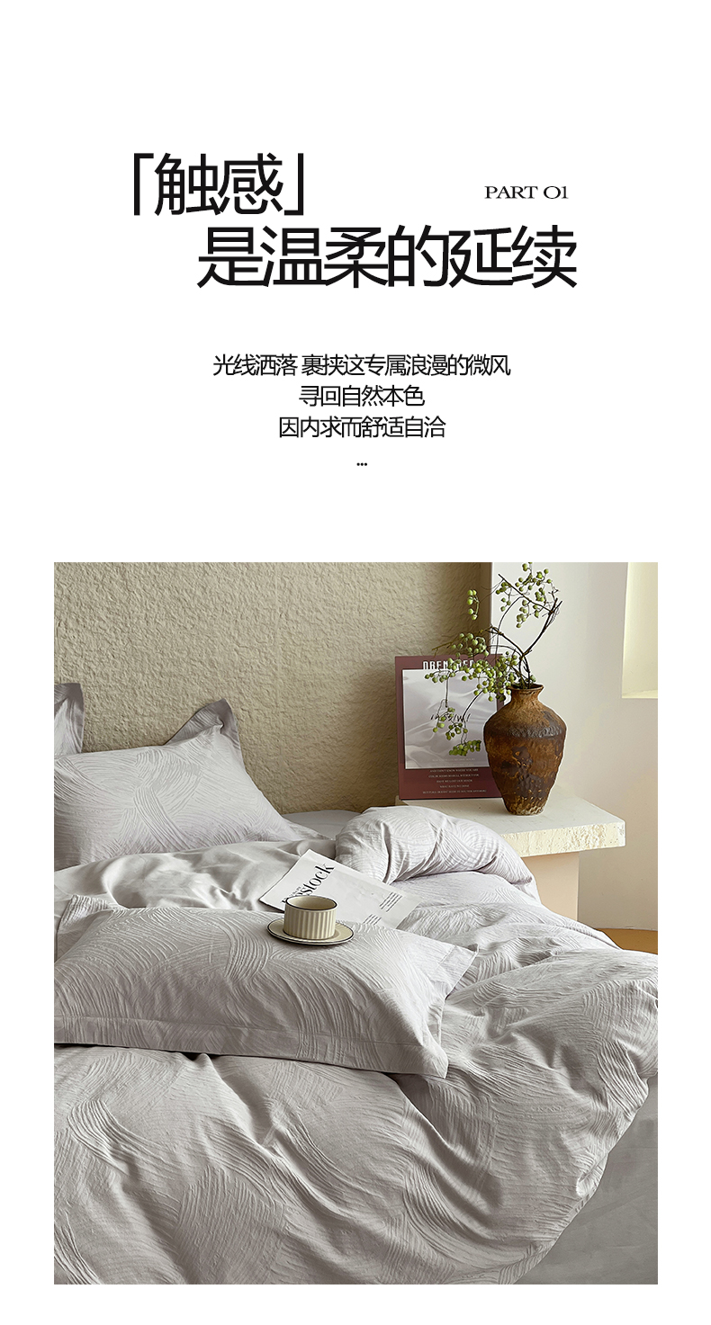 当前位置: 91家纺网 > 商品网购 > 床品套件 > 四件套 > 全棉普通四件套 > 帅露家纺 2026新款A类全棉纯棉亮面浮雕提花四件套 布兰卡-银灰