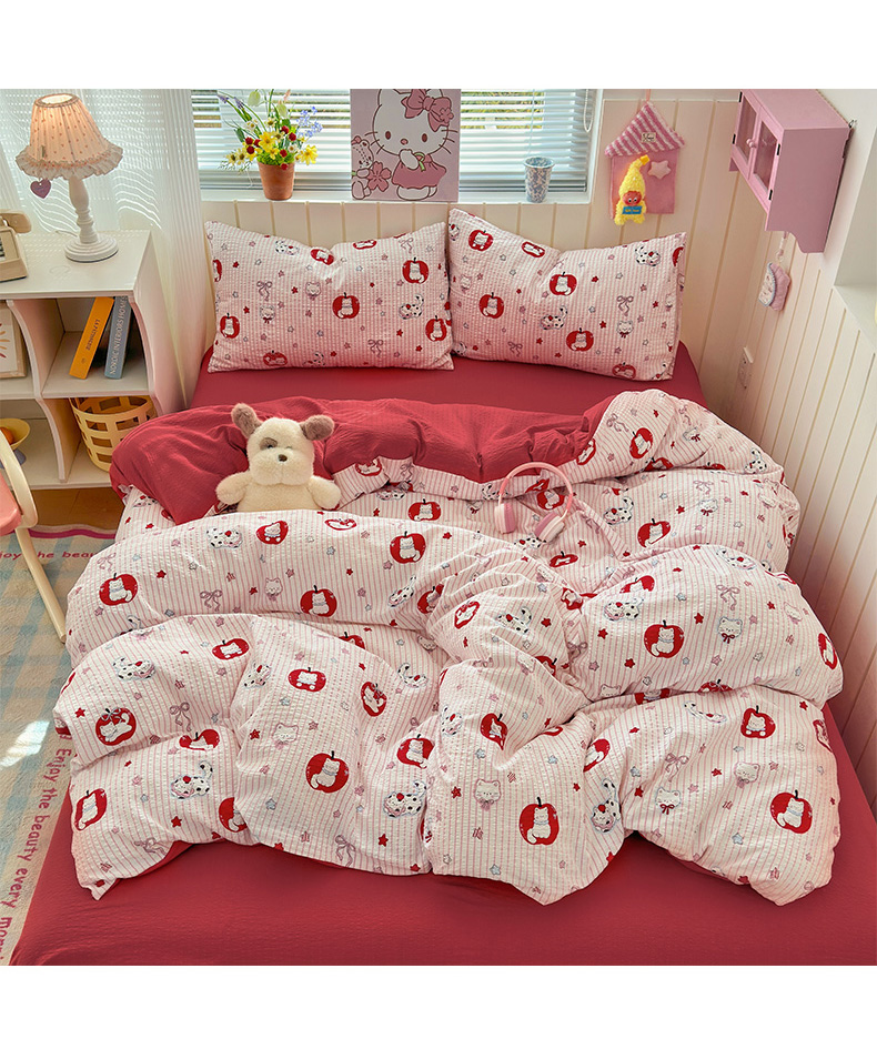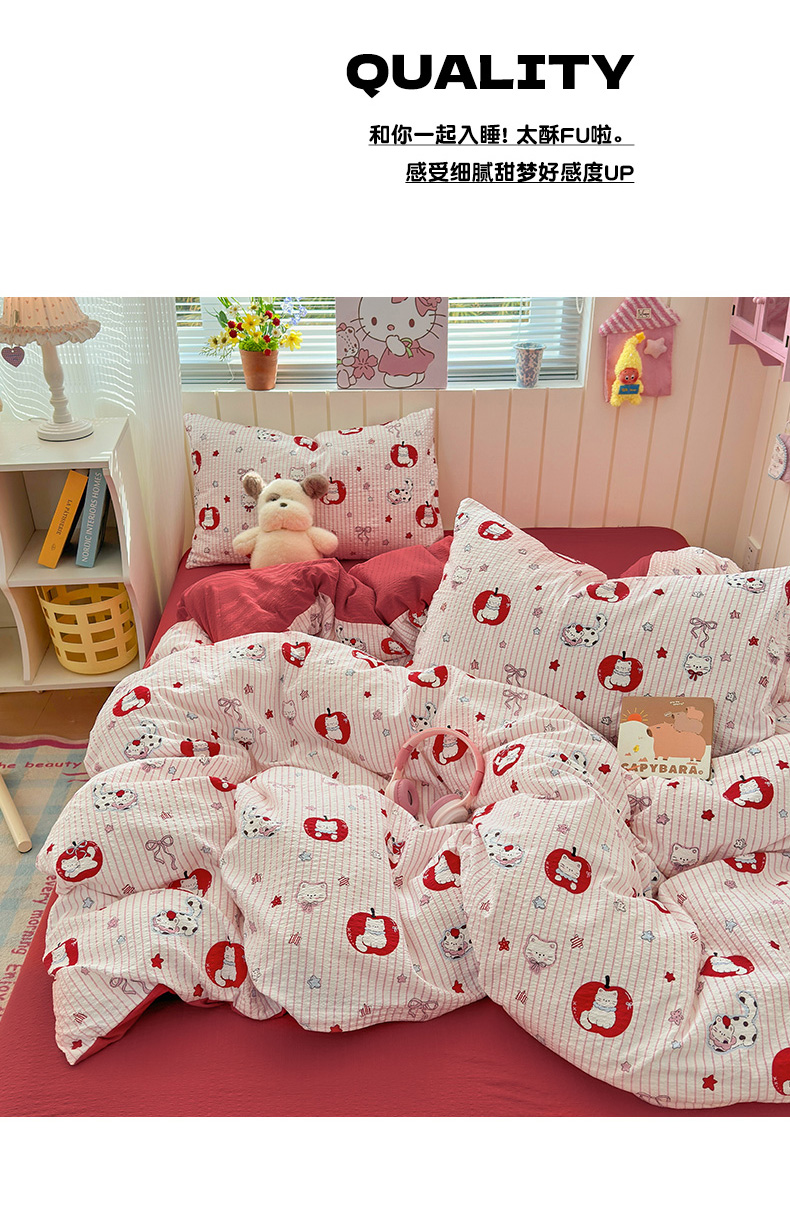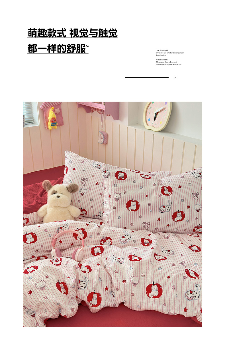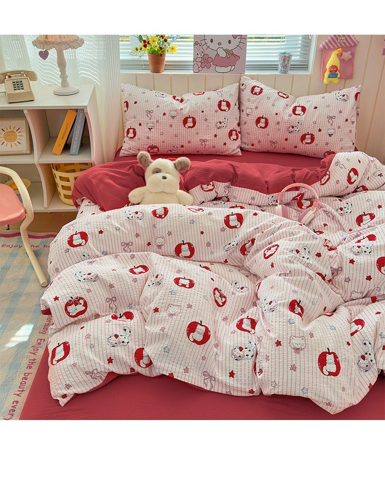 当前位置: 91家纺网 > 商品网购 > 床品套件 > 四件套 > 化纤普通四件套 > 奈颜 2026新款A类泡芙纱印花四件套学生宿舍三件套-卡通印花系列 苹果小狗
