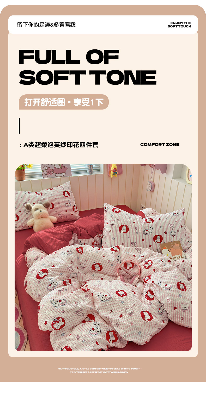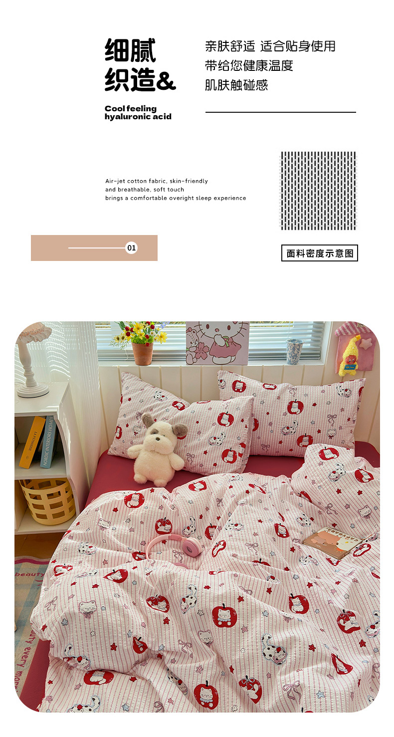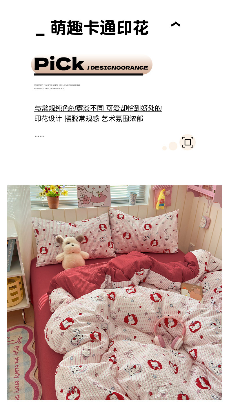 当前位置: 91家纺网 > 商品网购 > 床品套件 > 四件套 > 化纤普通四件套 > 奈颜 2026新款A类泡芙纱印花四件套学生宿舍三件套-卡通印花系列 苹果小狗