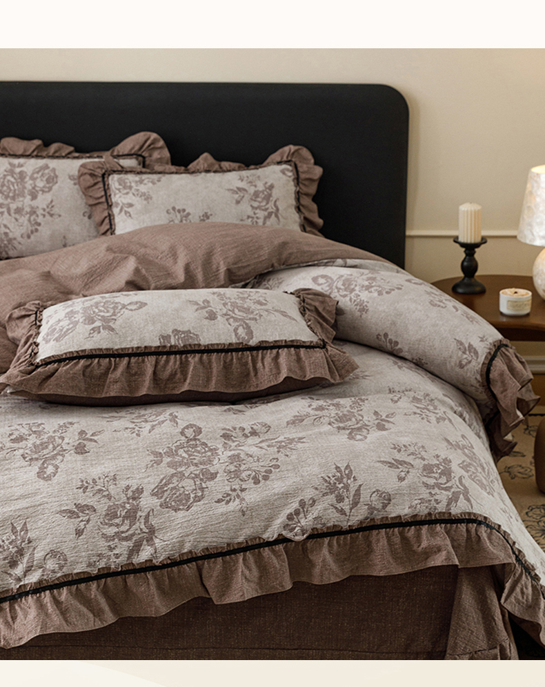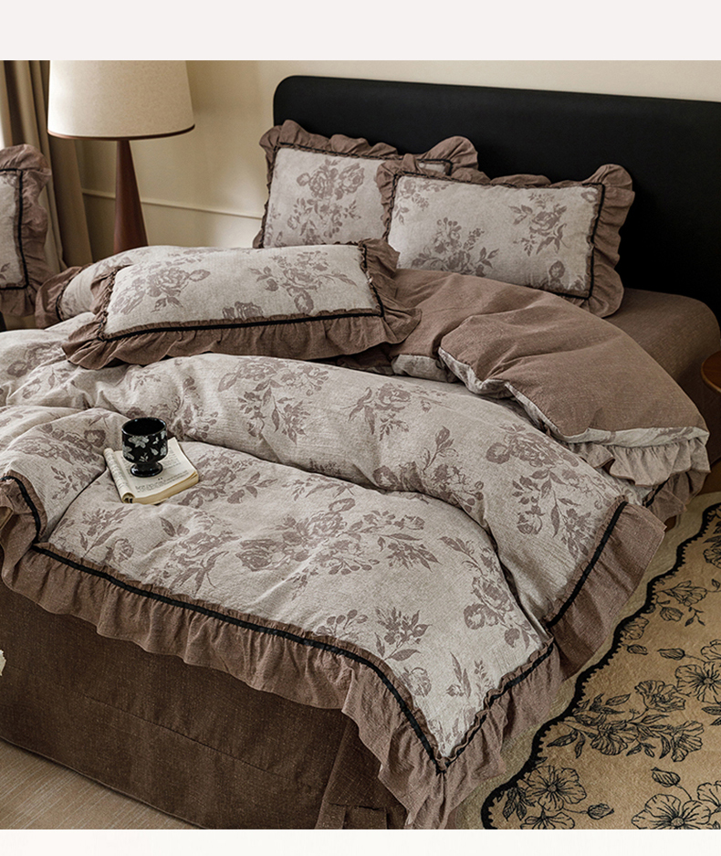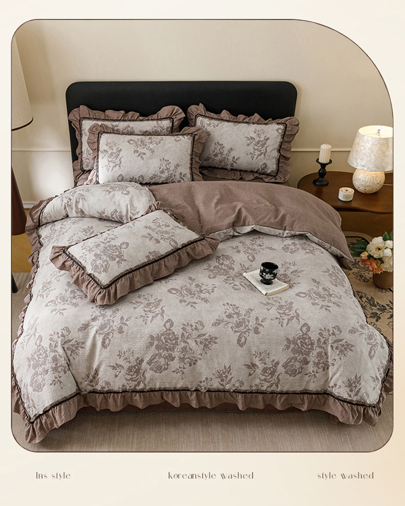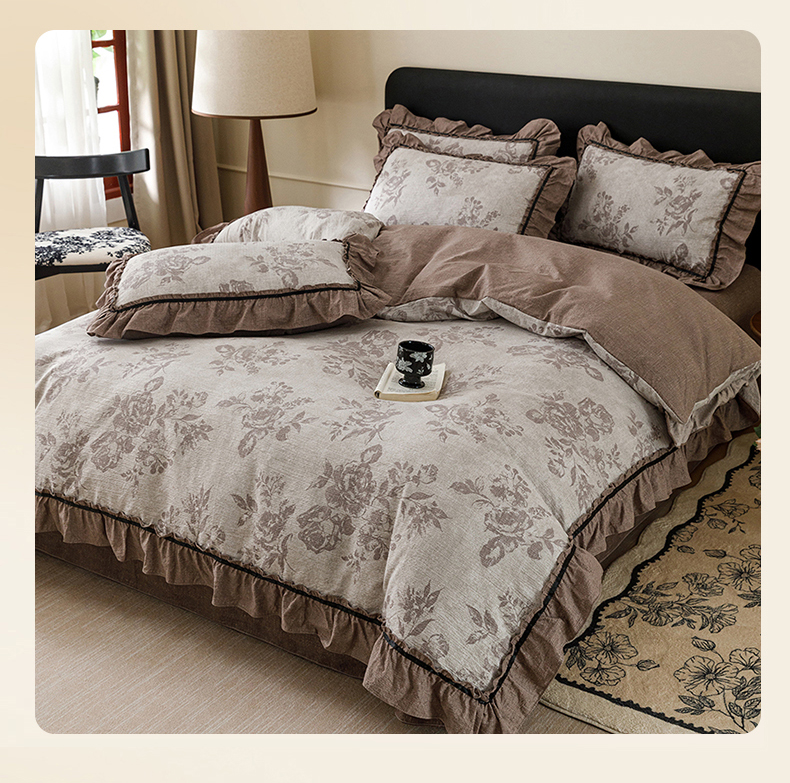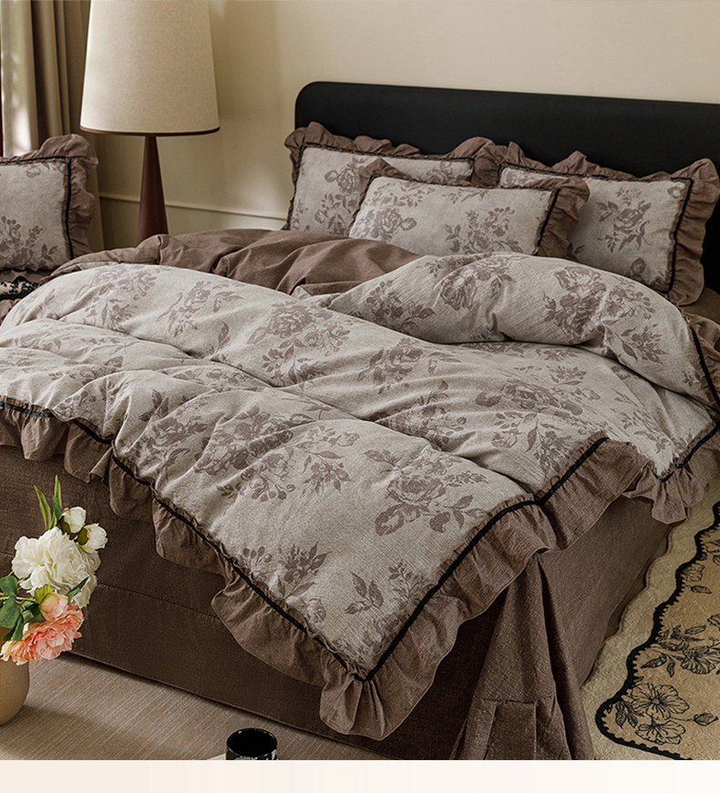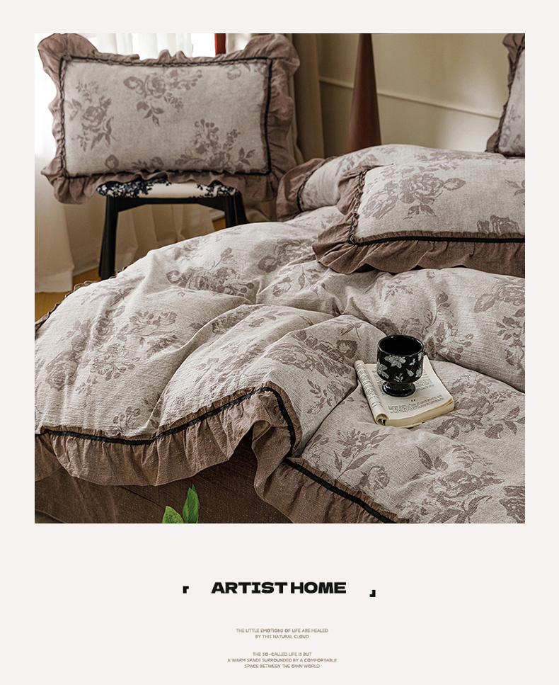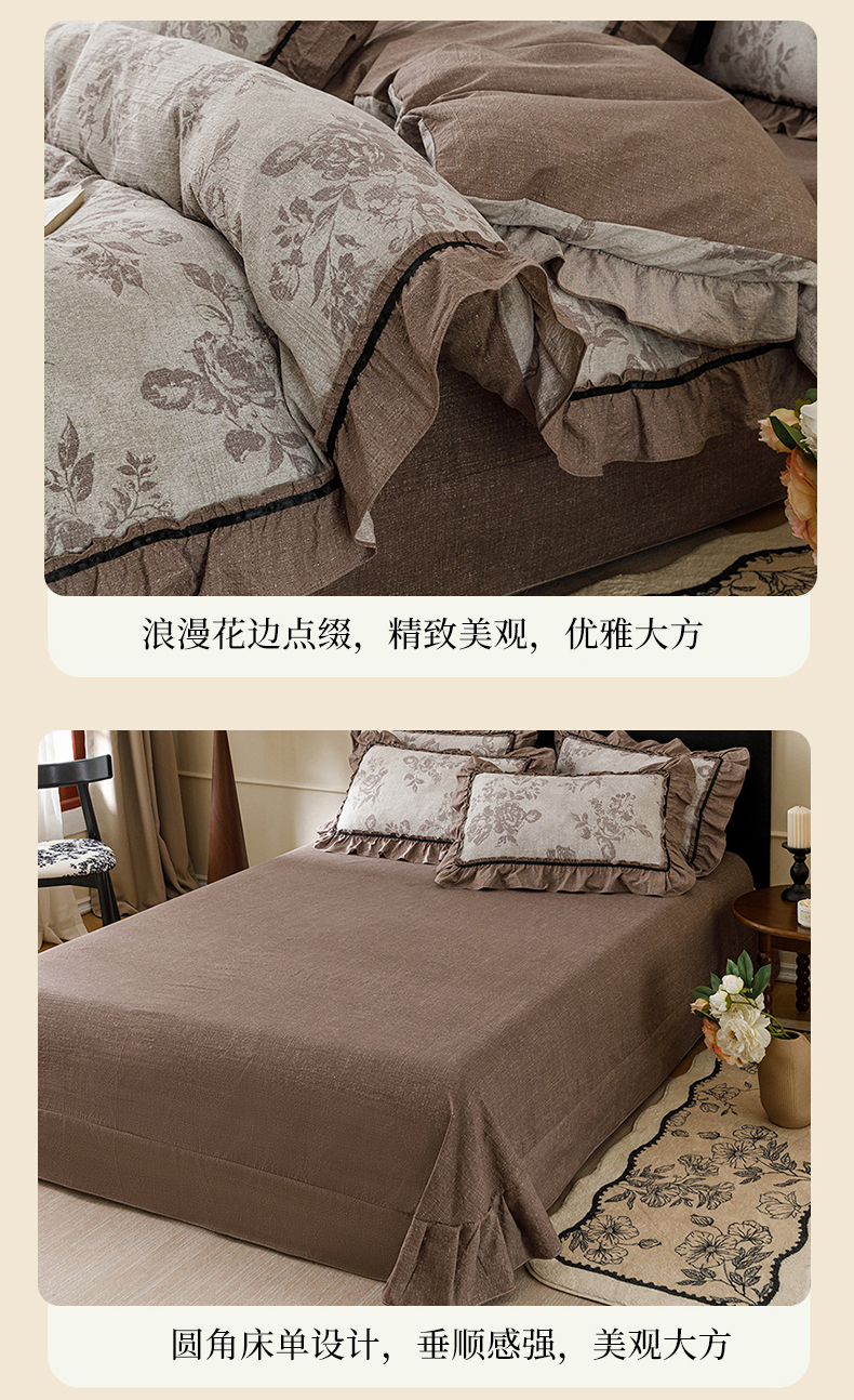 悦然毛巾被 2026新款原麻水洗提花四件套 咖枝雾影