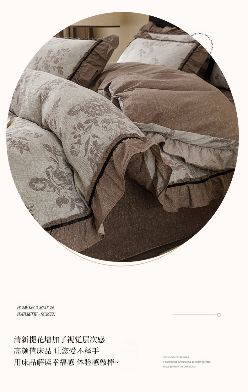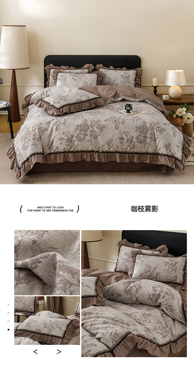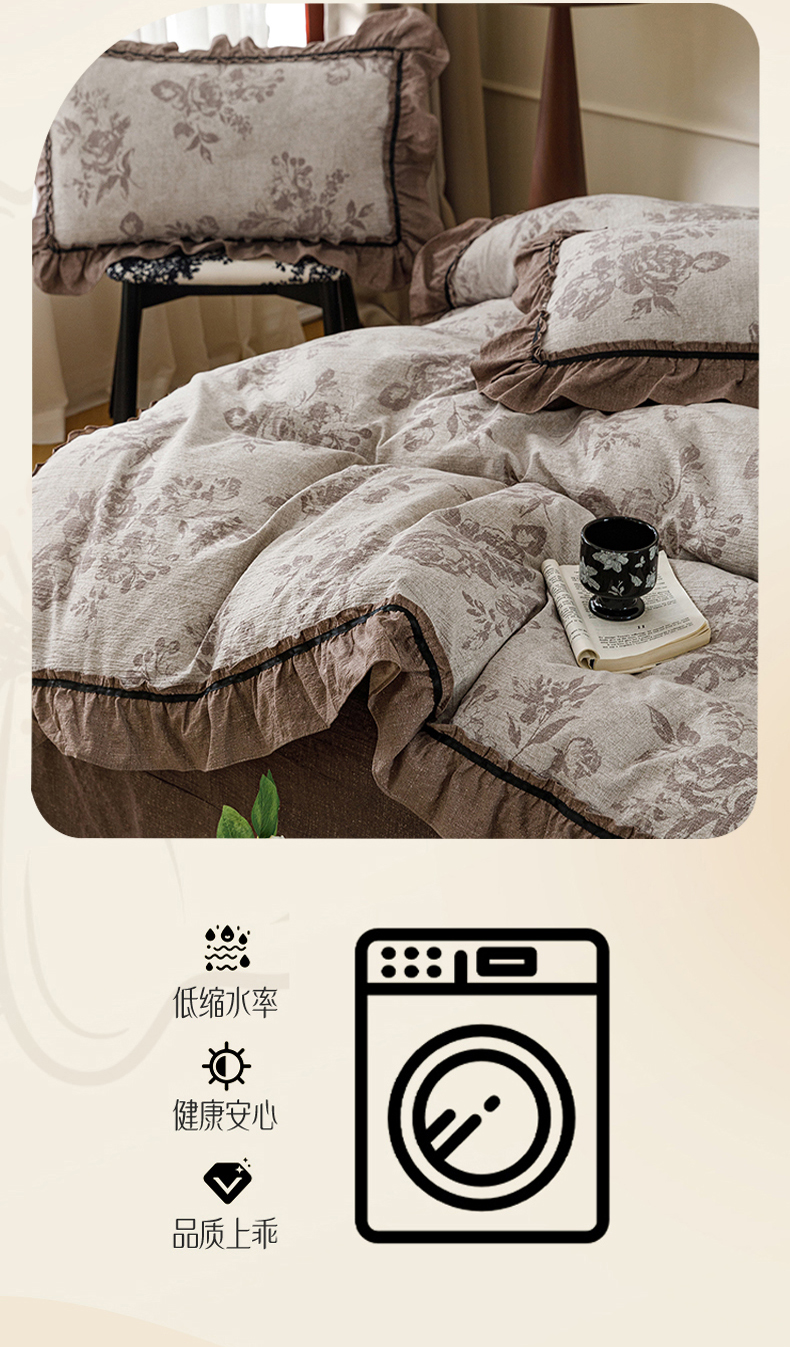 商品名称:悦然毛巾被 2026新款原麻水洗提花四件套 咖枝雾影
