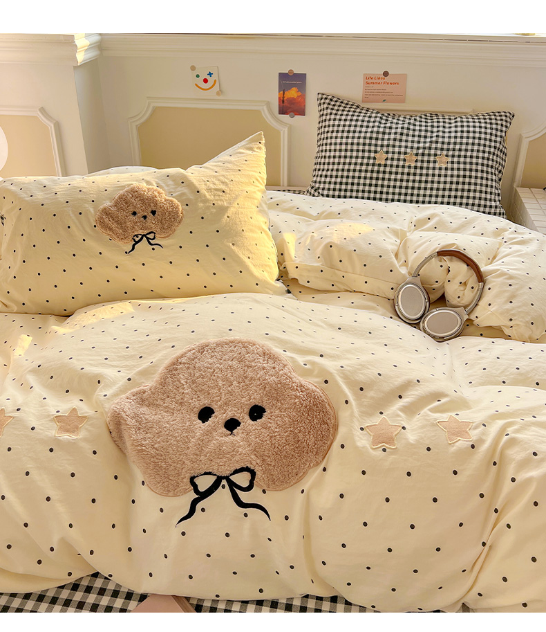当前位置: 91家纺网 > 商品网购 > 床品套件 > 四件套 > 毛巾绣四件套 > 繁花家居 2026新款云感泡芙棉邹邹木棉可爱童趣贴布绣毛巾绣四件套 炸猫狗