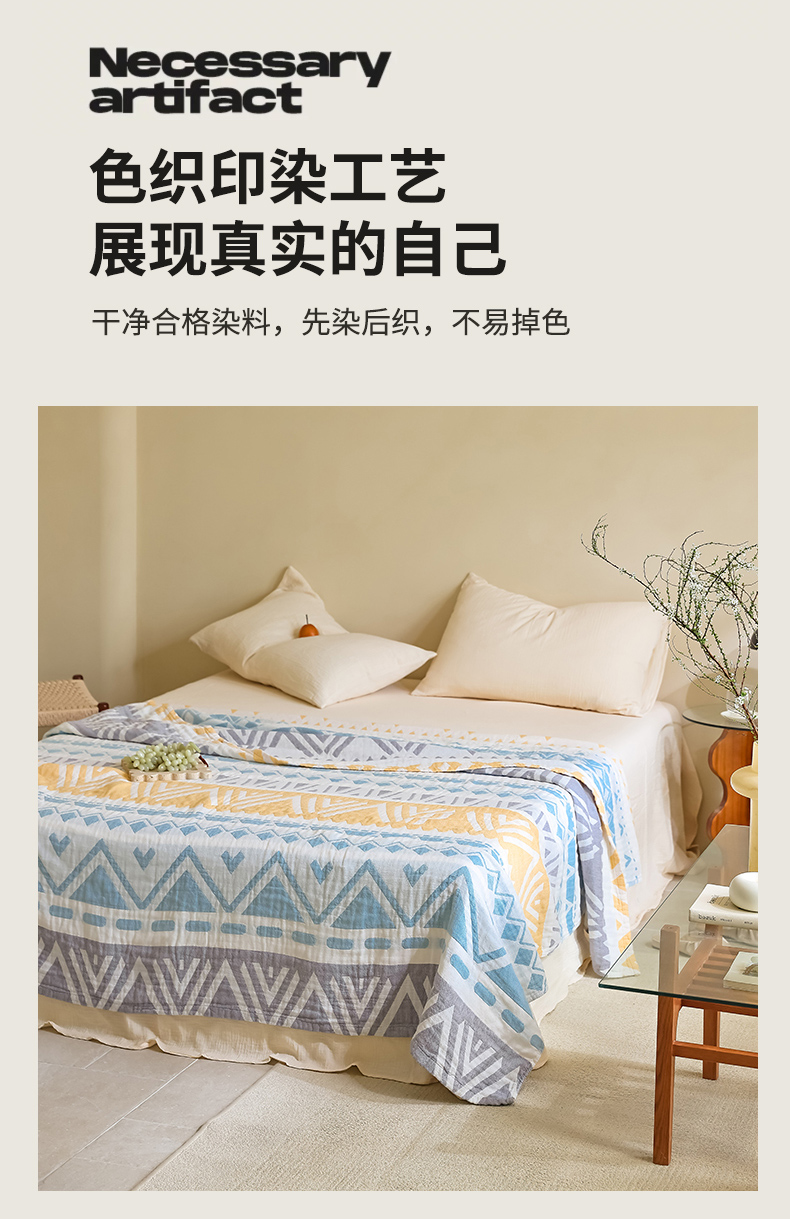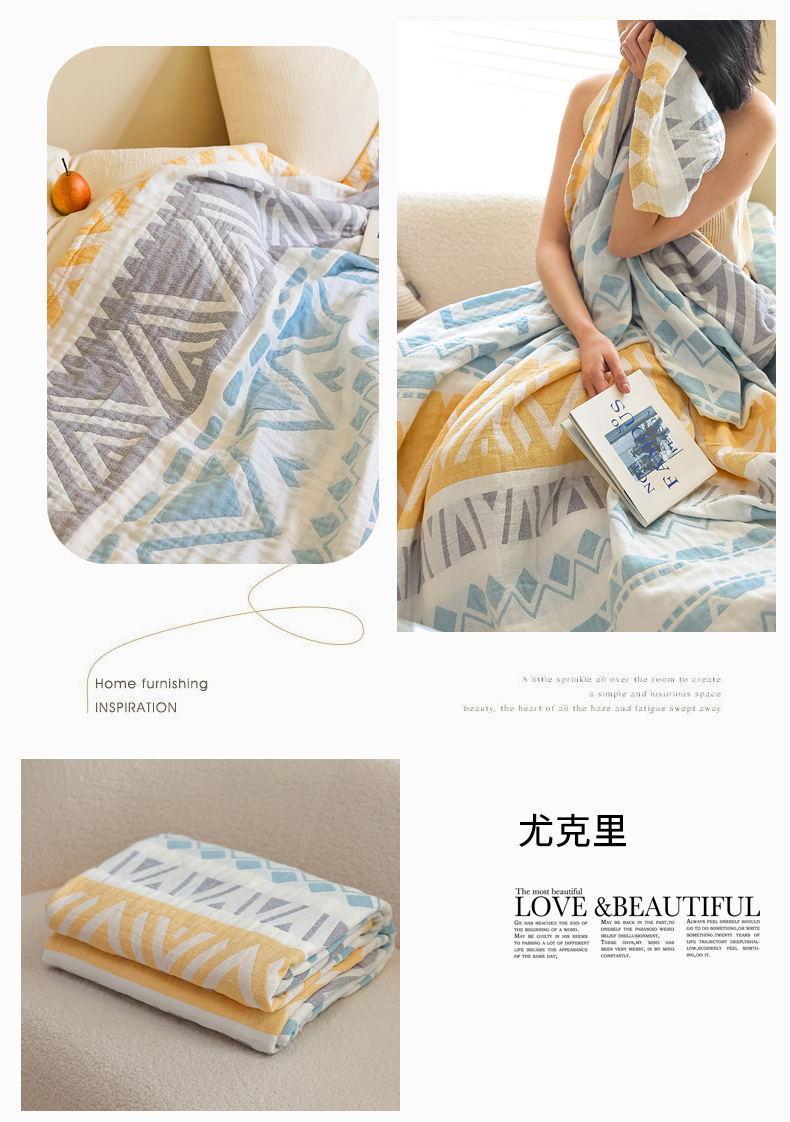 商品名称:朴尔家纺-毛巾被 2026新款格调简约风全棉纯棉三层纱布毛巾被-朴尔经典款常年备货 尤克里