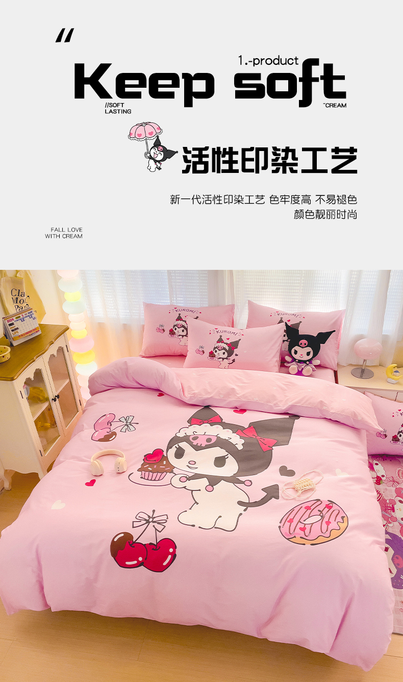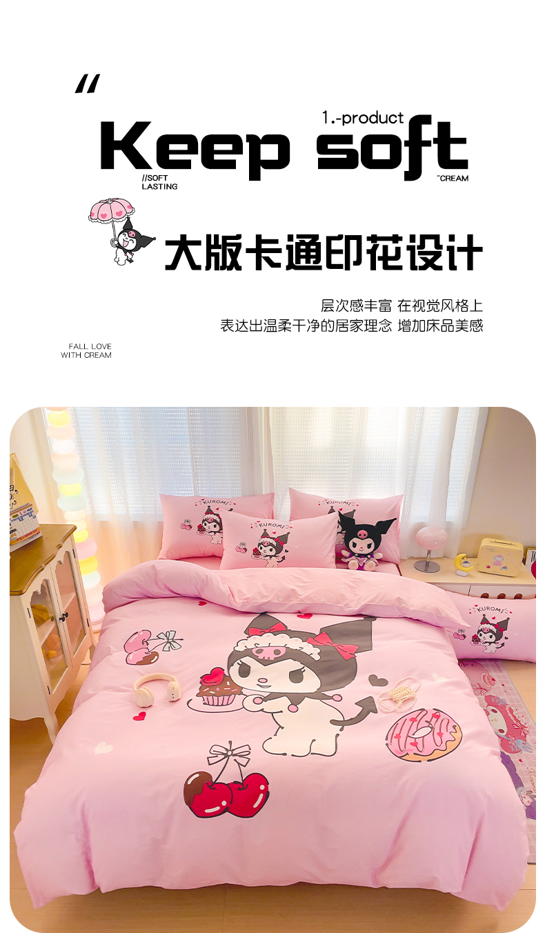 商品名称:朵希曼 2026新款正版授权全棉大版数码印花三丽鸥系列四件套 美味库洛米