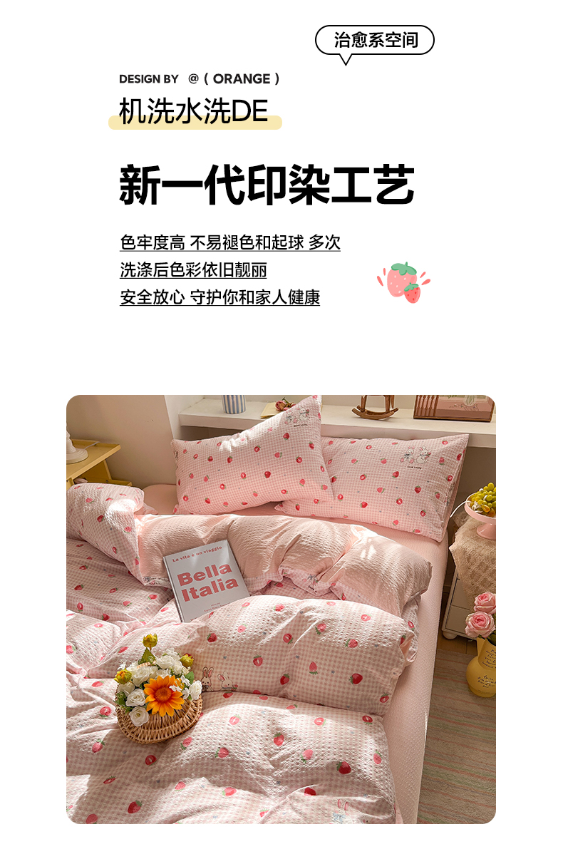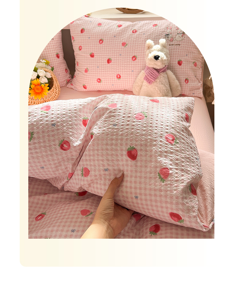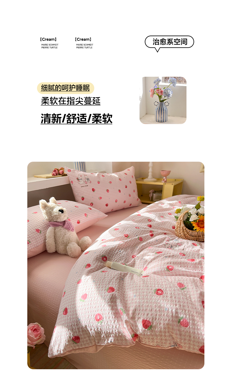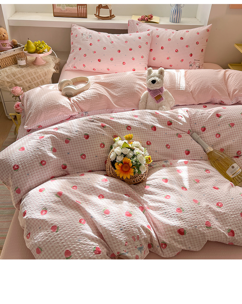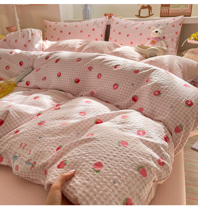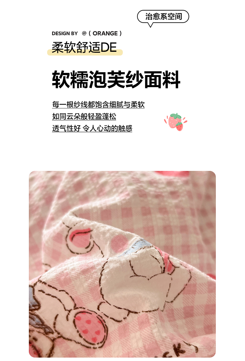 当前位置: 91家纺网 > 商品网购 > 床品套件 > 四件套 > 其它四件套 > 彩韵家纺 2026新款软糯泡芙纱印花四件套 草莓兔兔