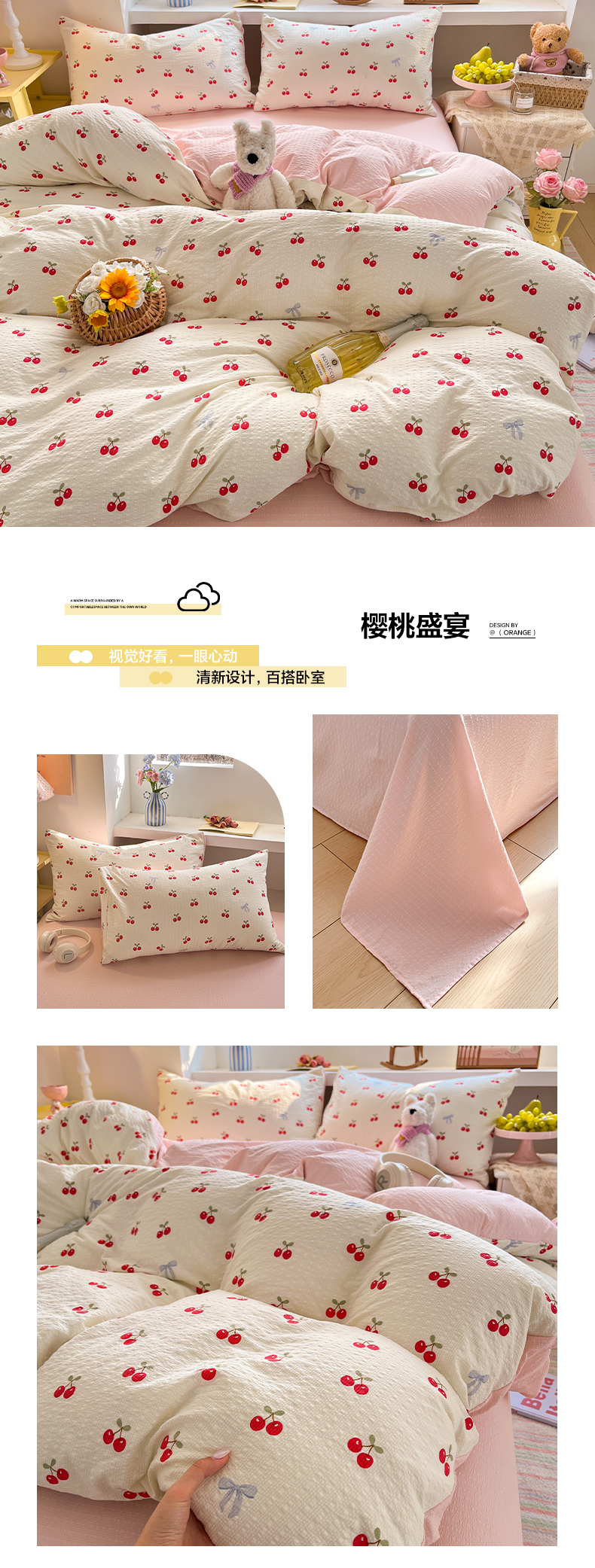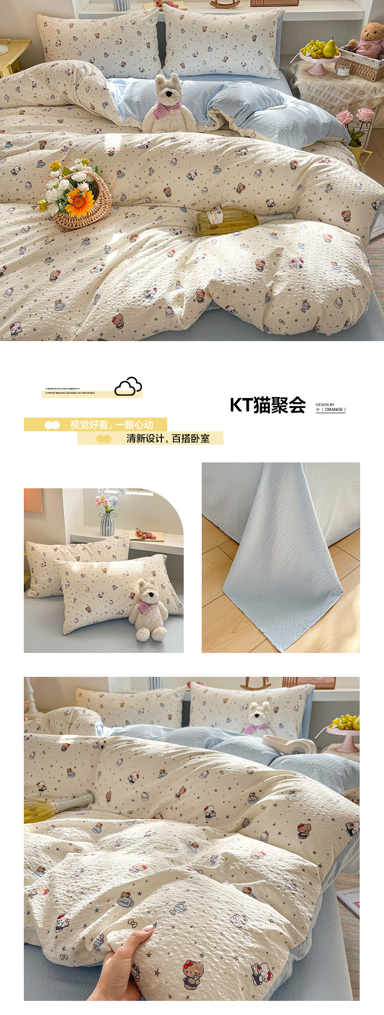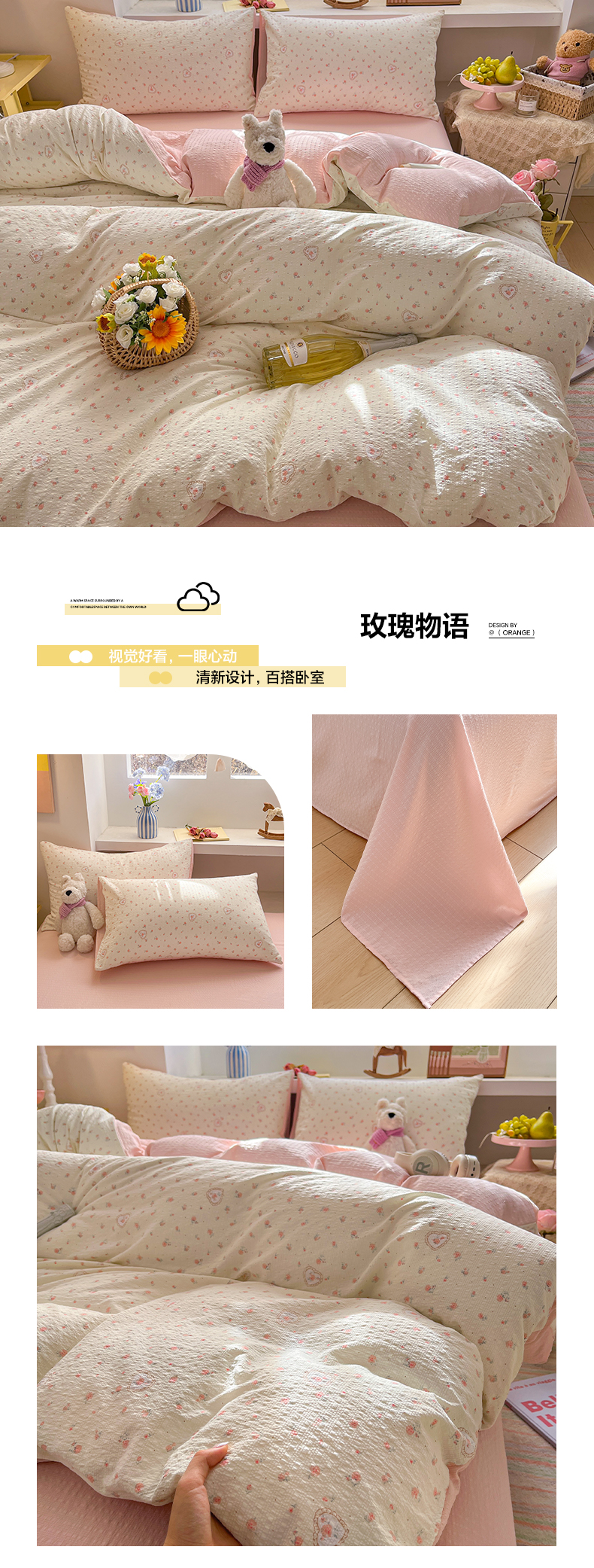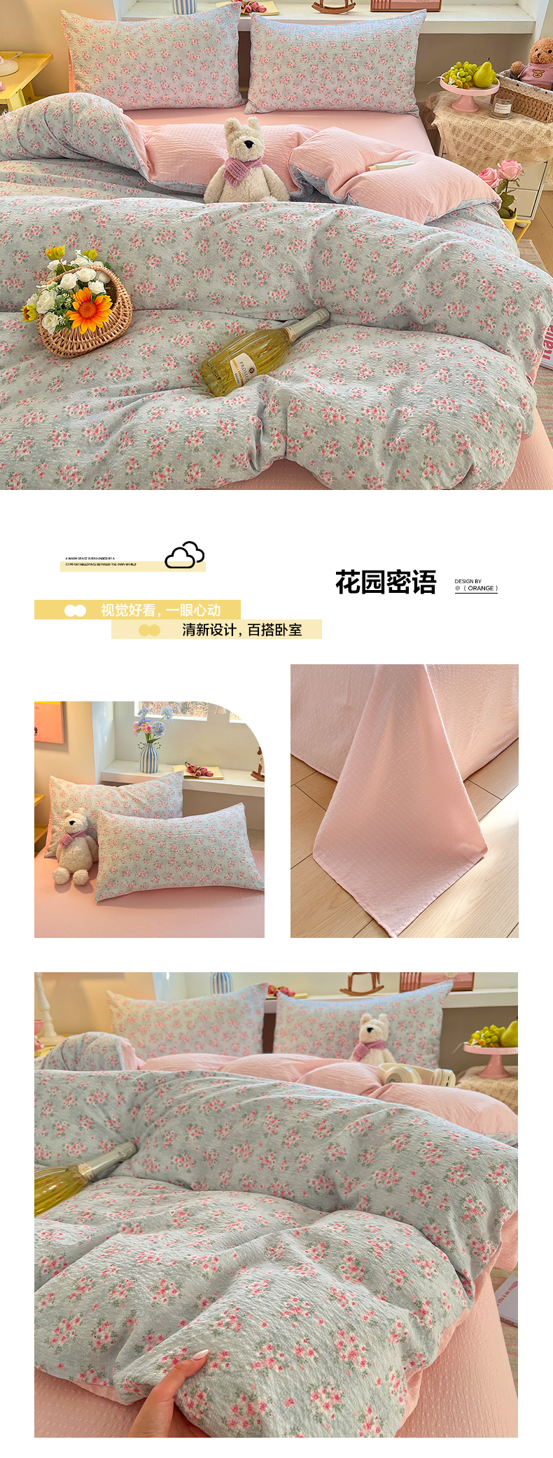 (总)卡迪熊家纺 2025新款水洗双层纱双拼碎花四件套,爱心蝴蝶结,彩色波点,多彩心情,分格棋盘,格纹猫咪,黑色波点,花园兔子,欢乐聚会,欢乐小狗,可爱猫猫,腊肠狗狗,满满花海,美好心情,藤条花蔓,甜点小屋,甜甜小兔,甜心猫咪,晚安世界,小花朵朵,小小樱桃