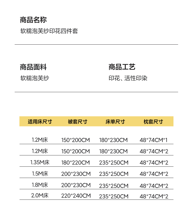 商品名称:(总)卡迪熊家纺 2026新款软糯泡芙纱印花四件套