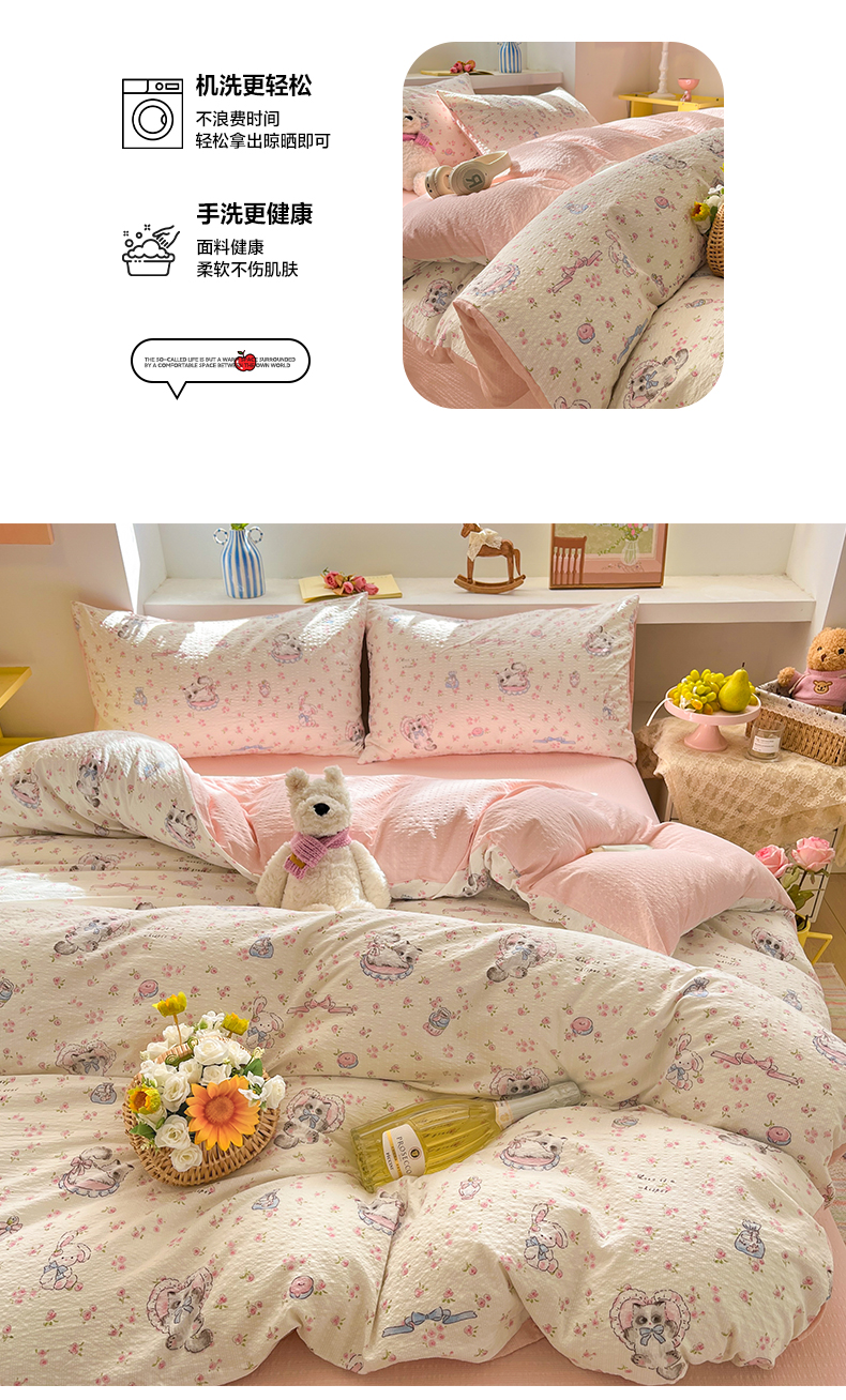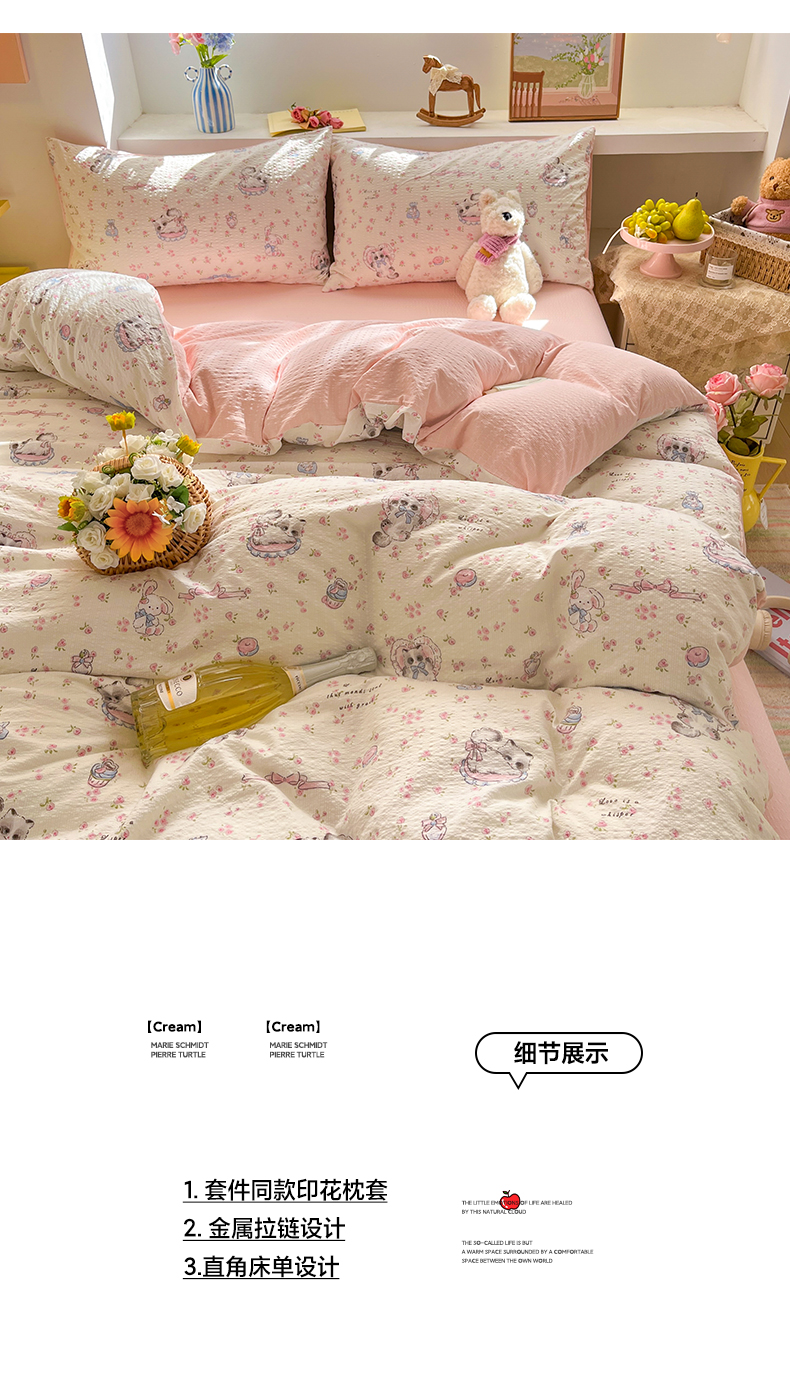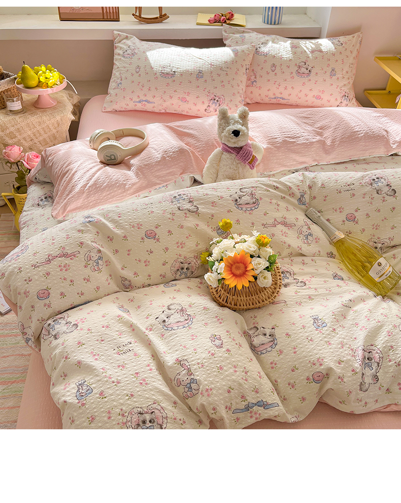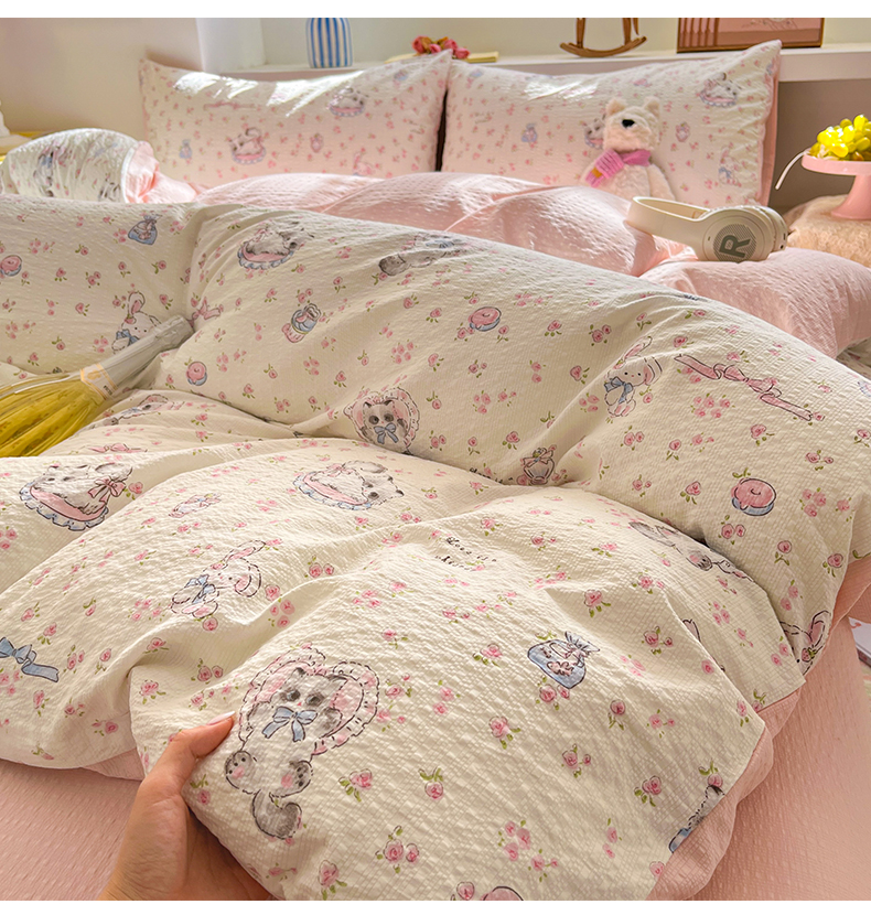 当前位置: 91家纺网 > 商品网购 > 床品套件 > 四件套 > 其它四件套 > 卡迪熊家纺 2026新款软糯泡芙纱印花四件套 萌宠派对