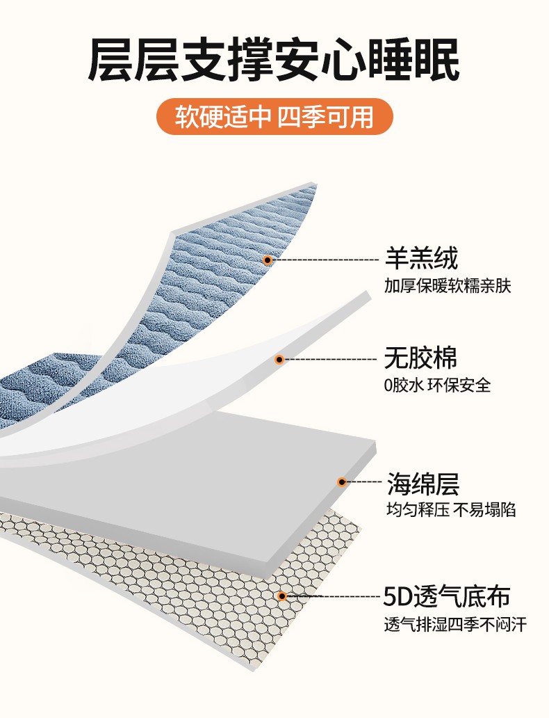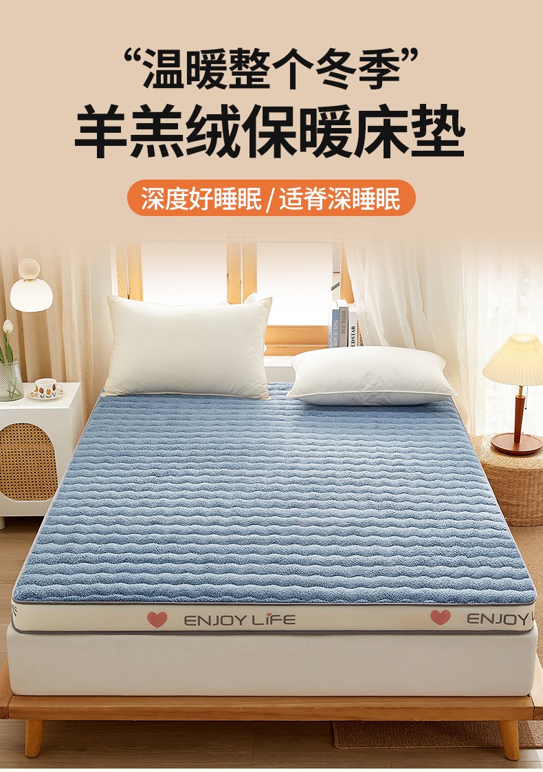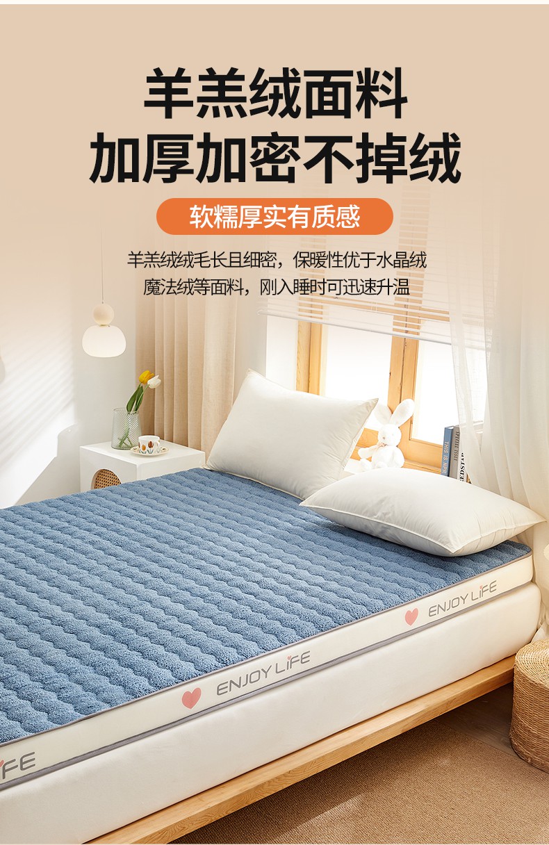 当前位置: 91家纺网 > 商品网购 > 床垫/床褥 > 普通床垫 > 月茶家纺 2026新款立体爱心边羊羔绒海绵床垫垫子 蓝色