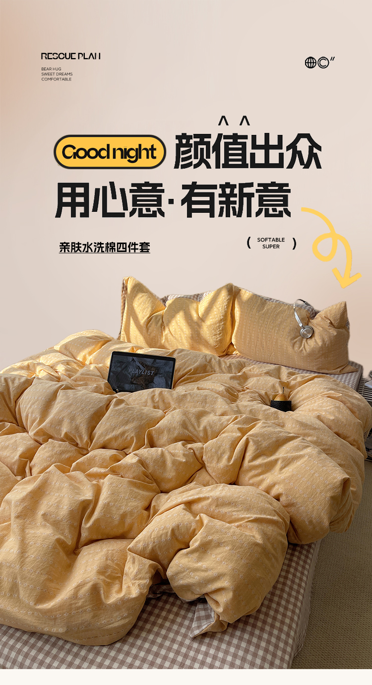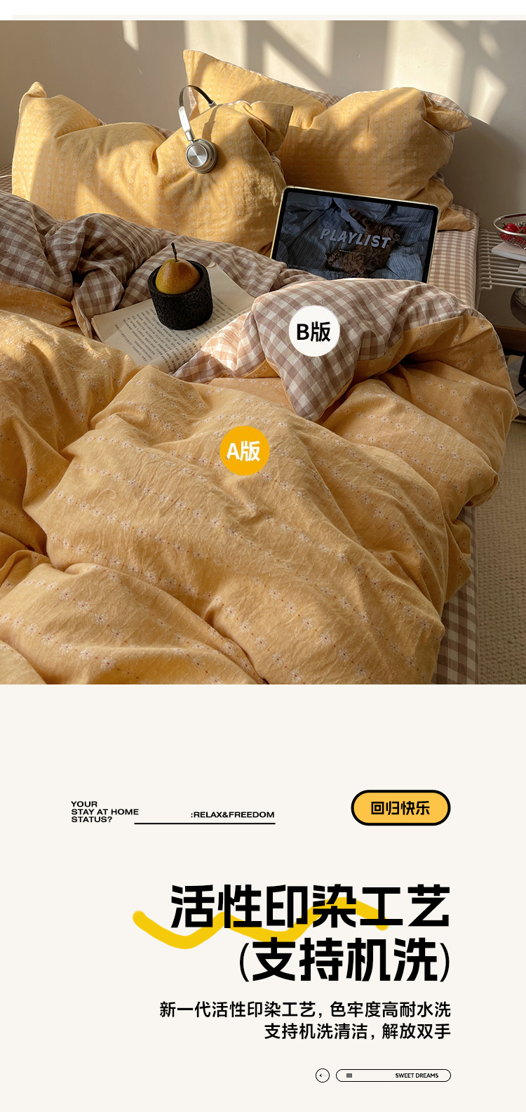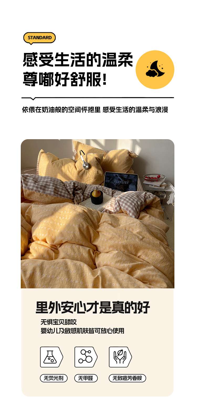 当前位置: 91家纺网 > 商品网购 > 床品套件 > 四件套 > 水洗棉四件套 > 盼季家纺 2026新款亲肤水洗棉四件套-简单款 简单款-阿尔曼黄