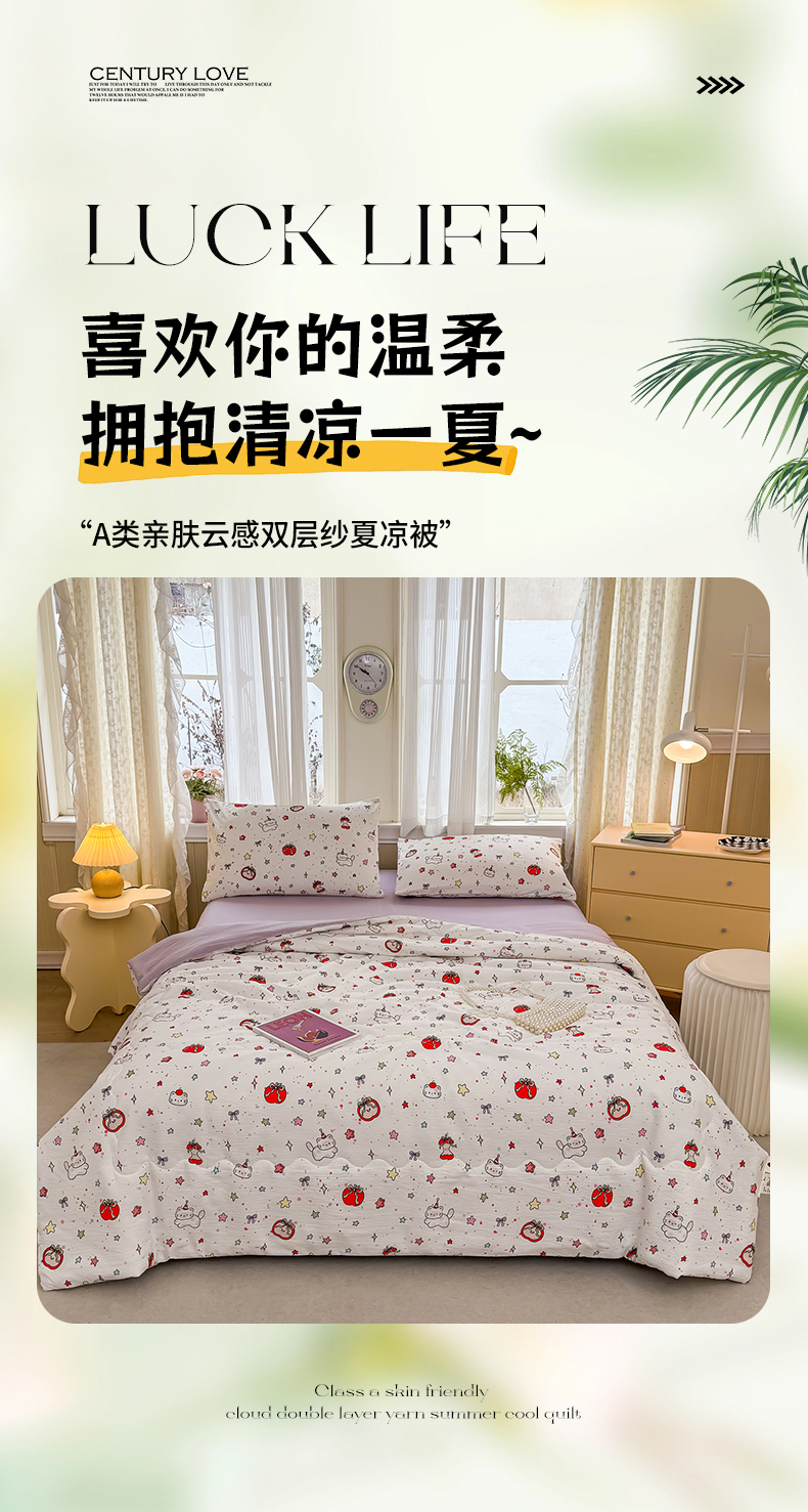 艺菲阁家纺 2026新款云感双层纱夏被夏凉被空调被 苹果小怪