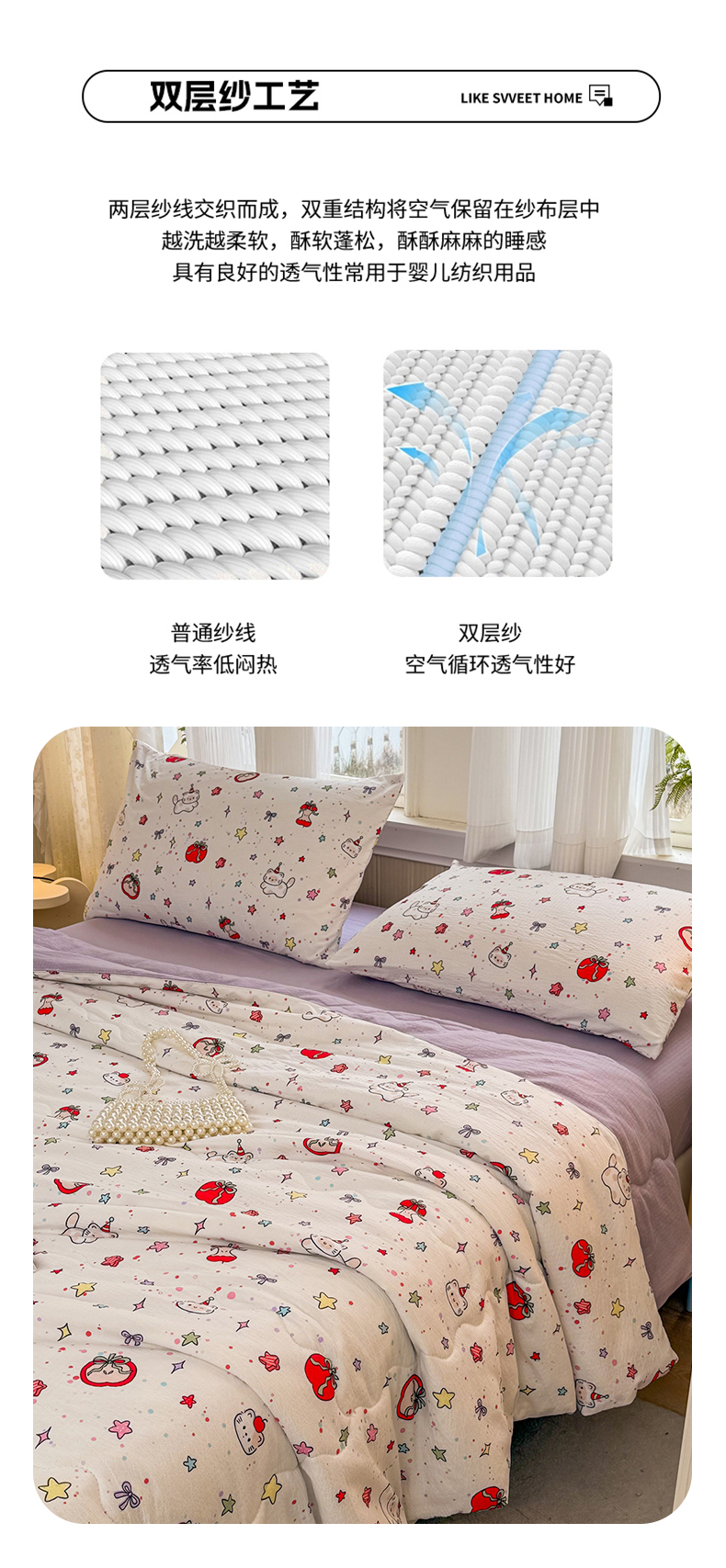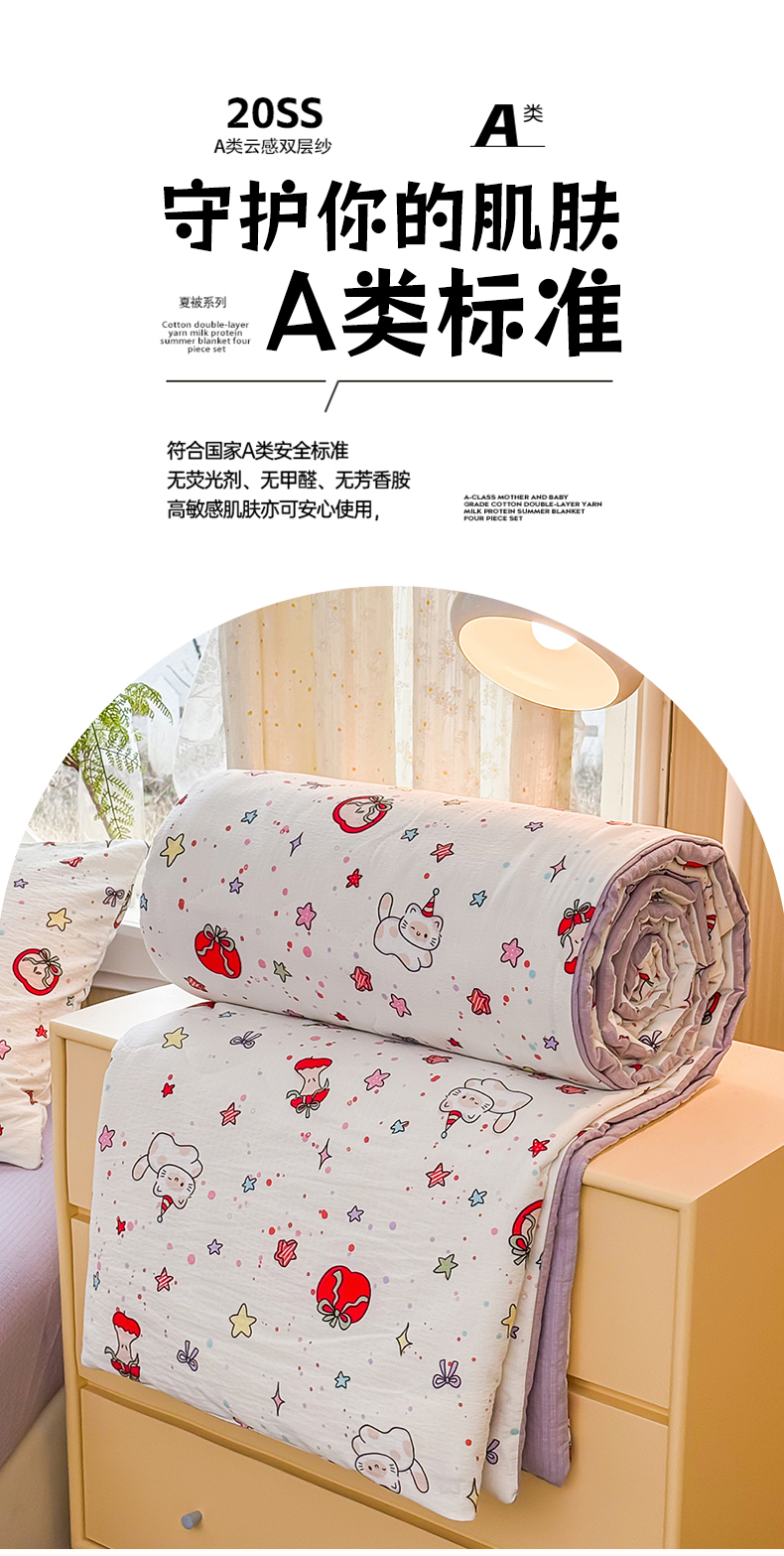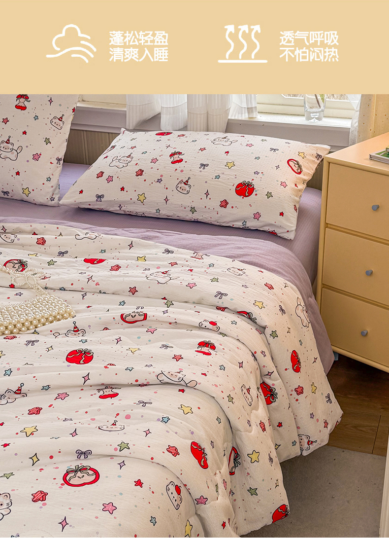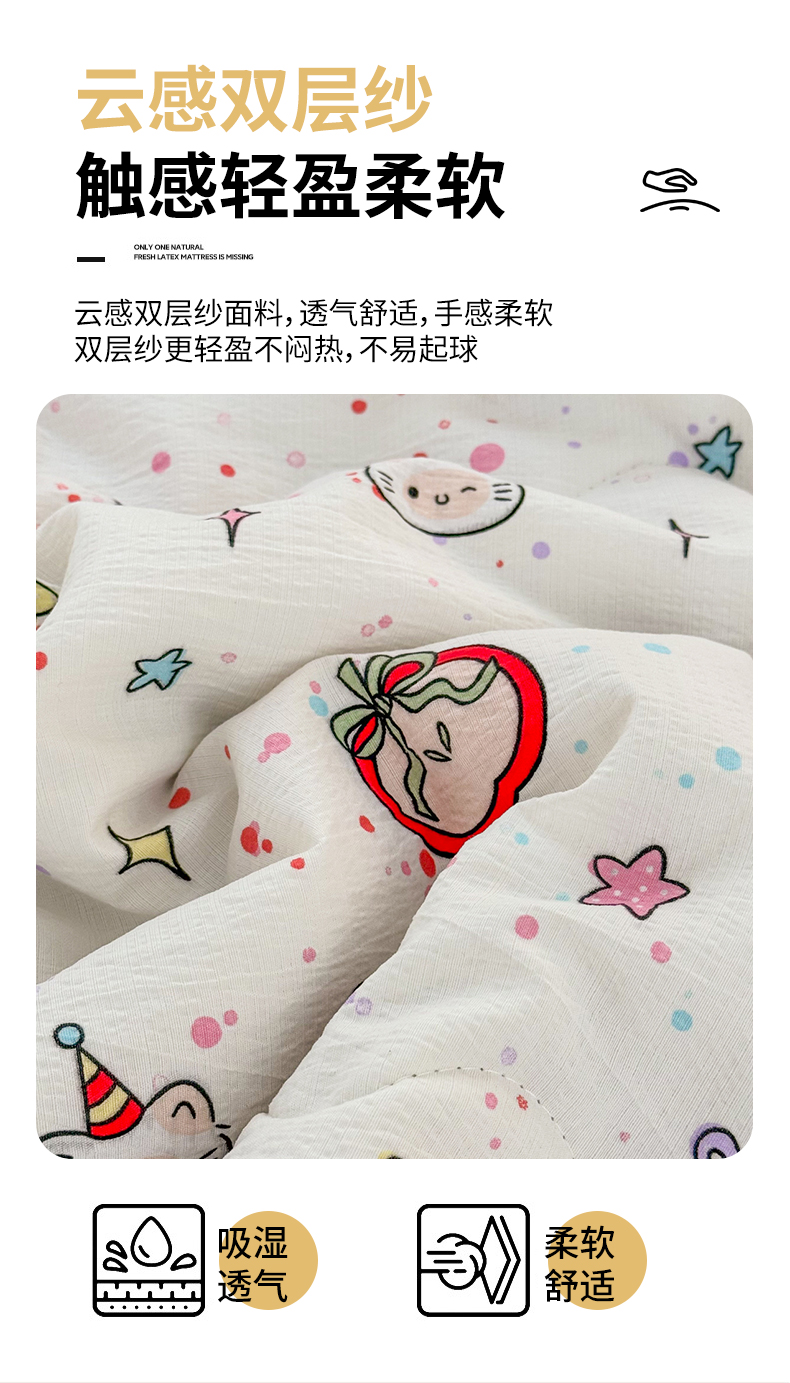 商品名称:艺菲阁家纺 2026新款云感双层纱夏被夏凉被空调被 苹果小怪
