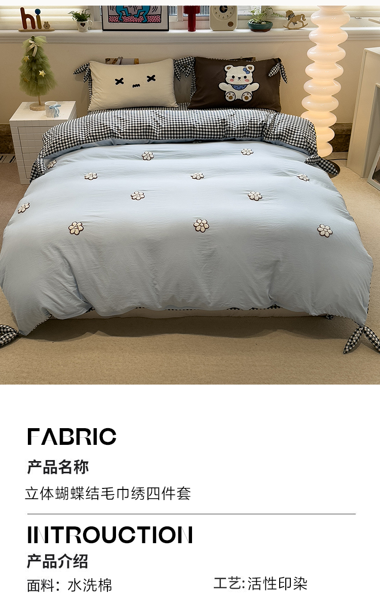 商品名称:(总)盼季家纺 2026新款立体蝴蝶结毛巾绣卡通四件套