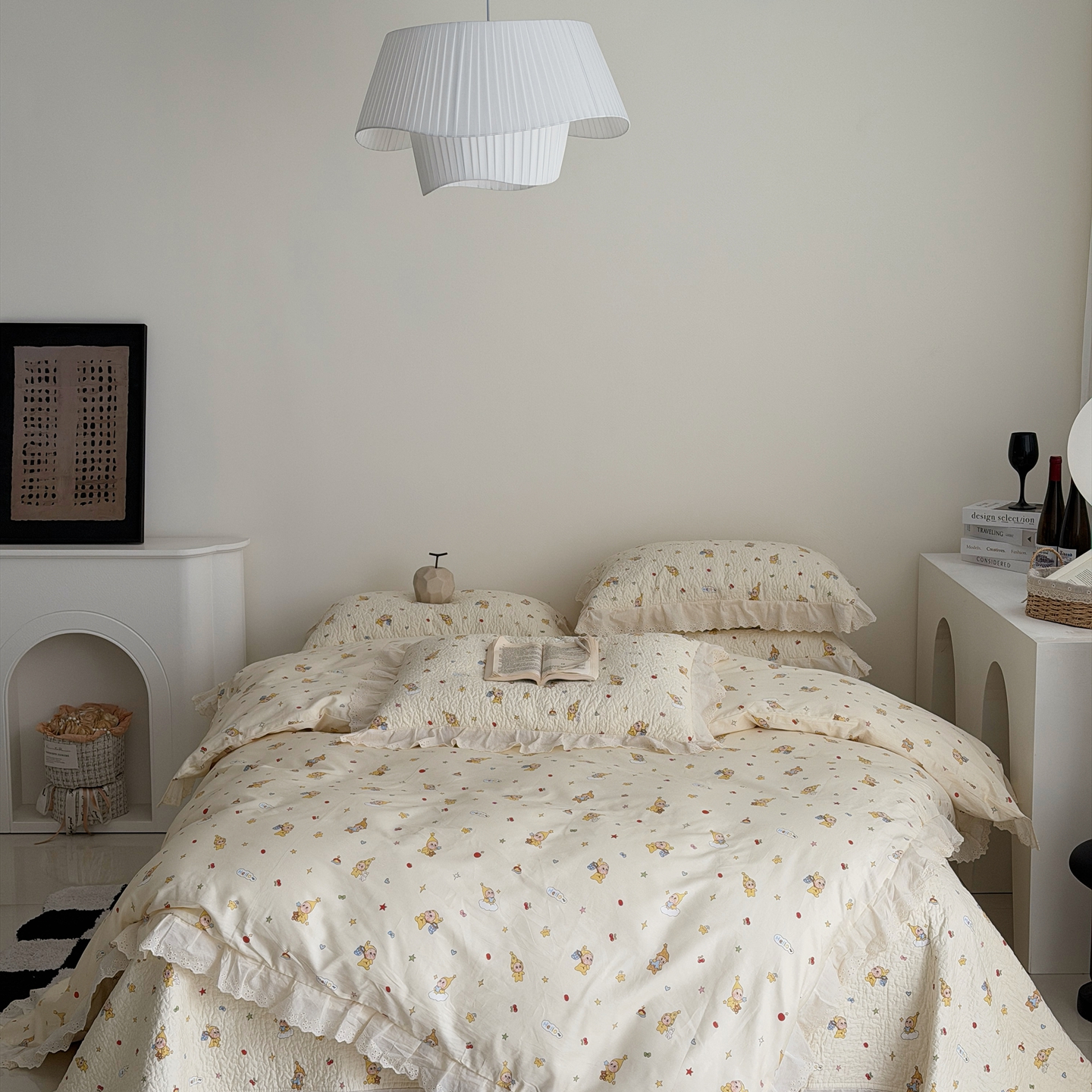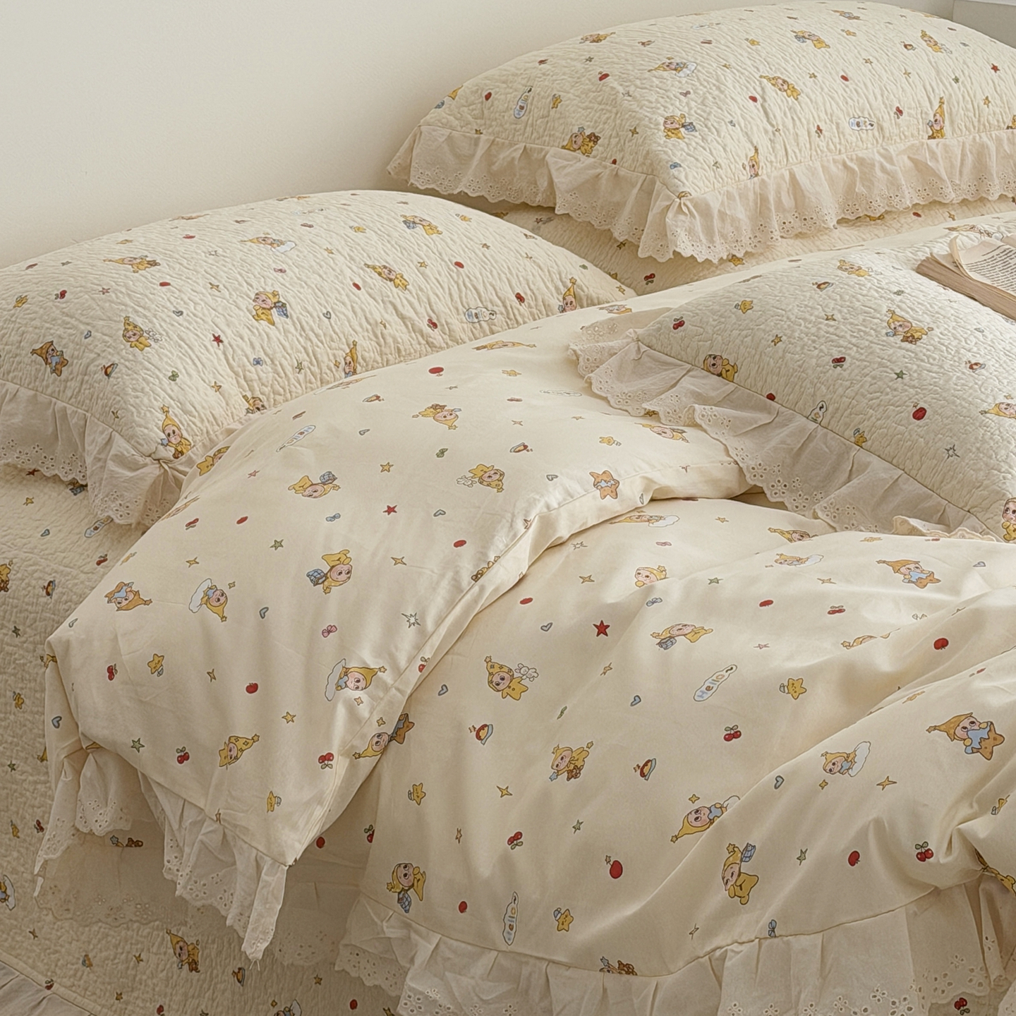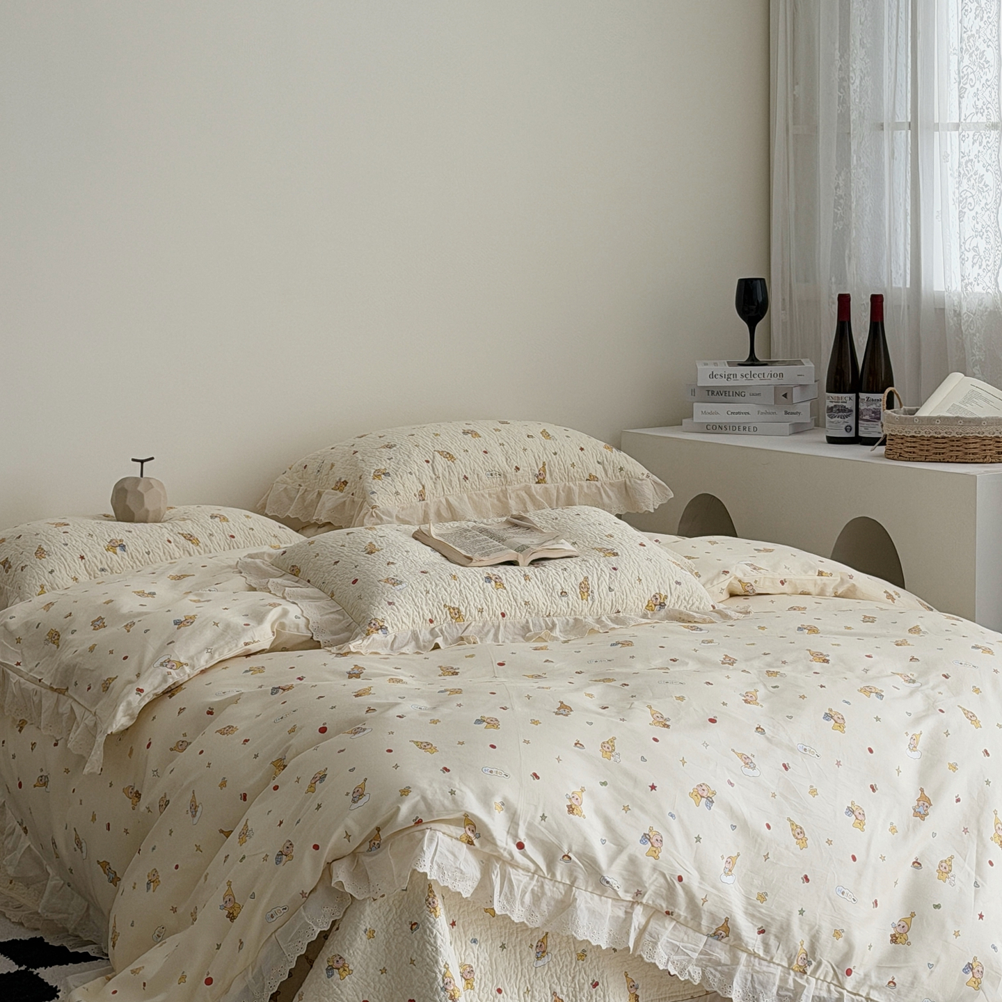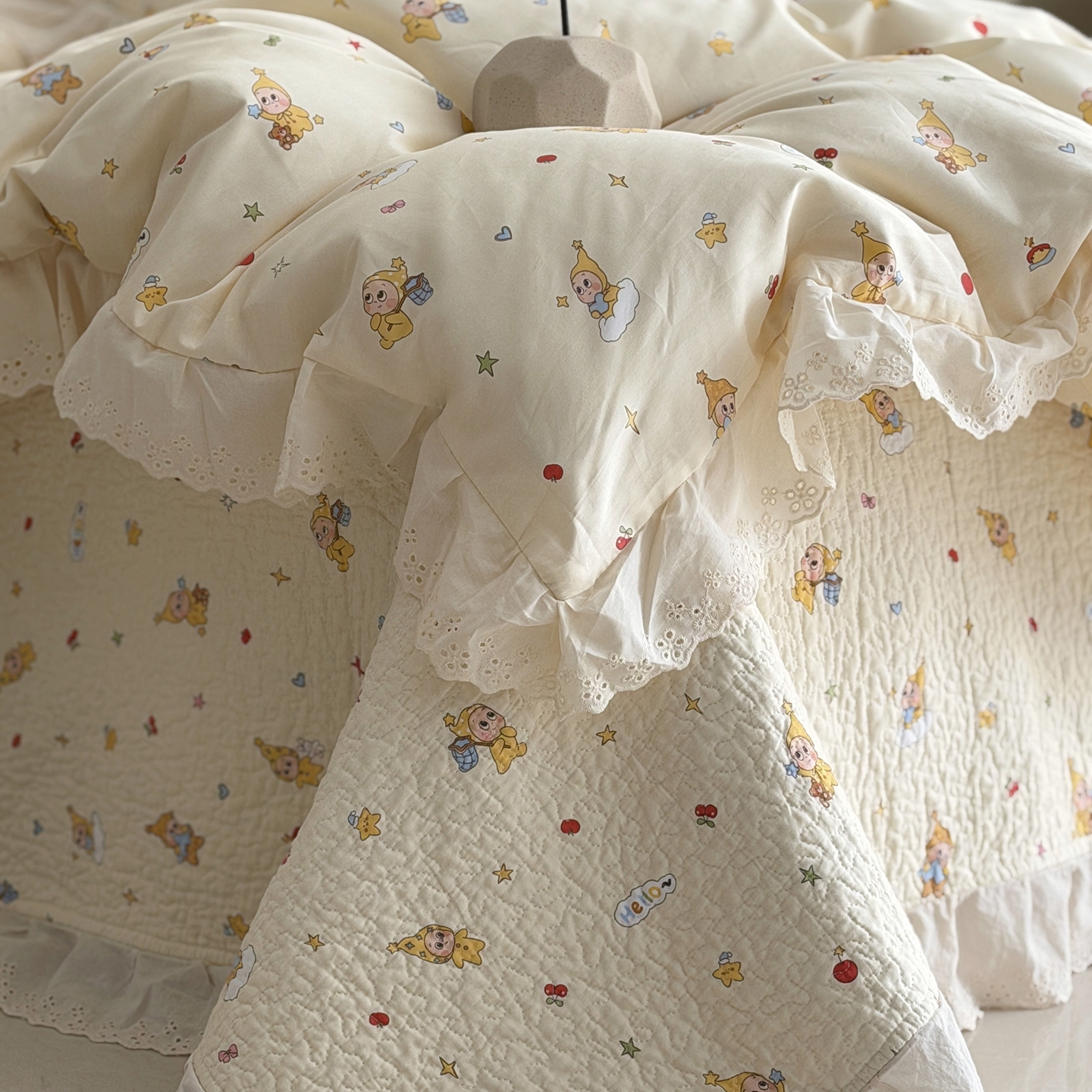 佰织鑫家居 2025新款全棉法式砂洗棉花床盖款被套四件套 星星人