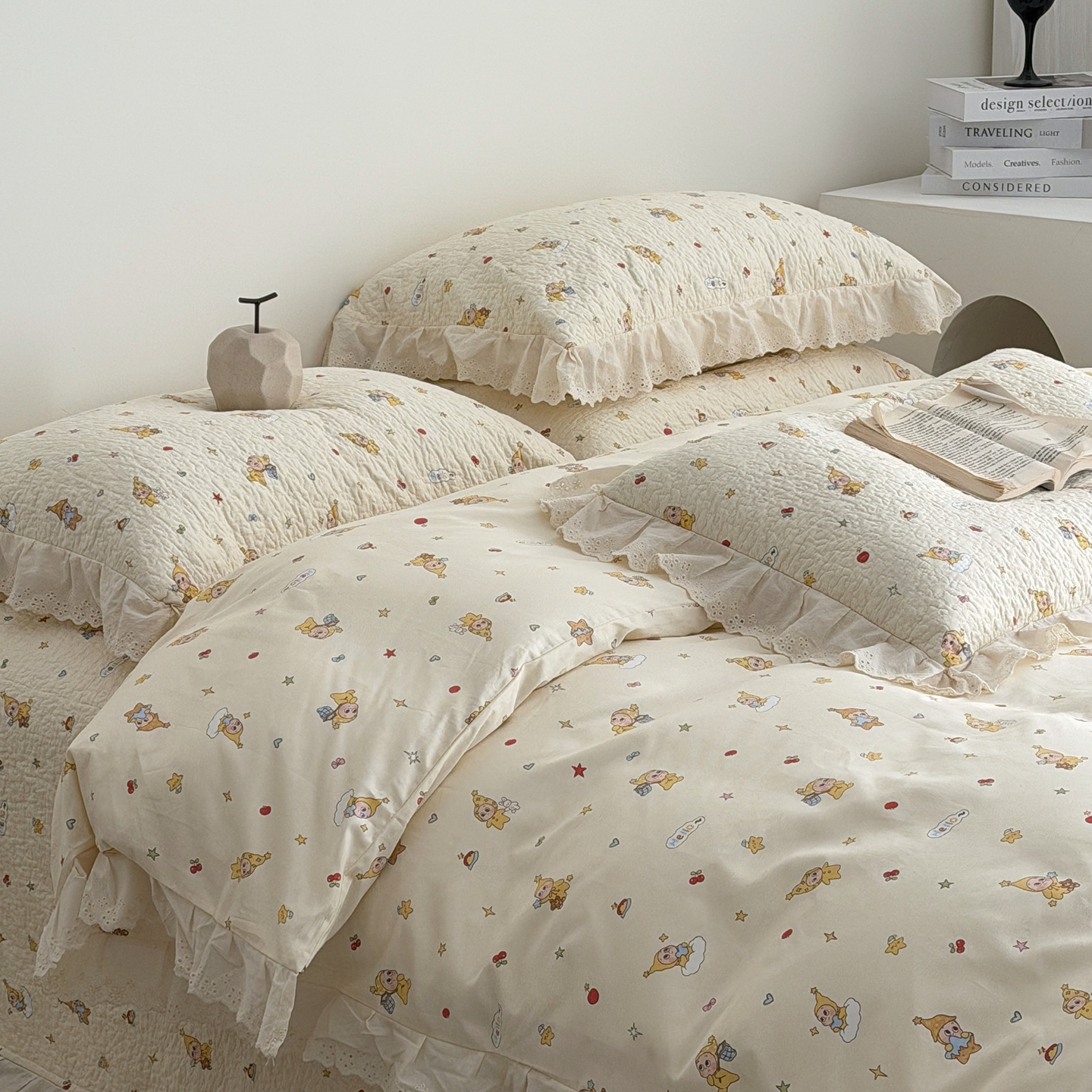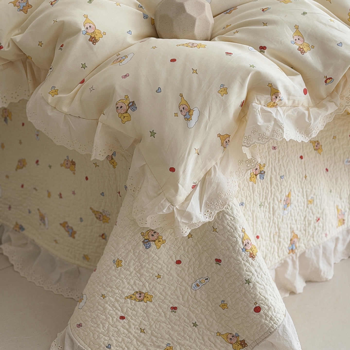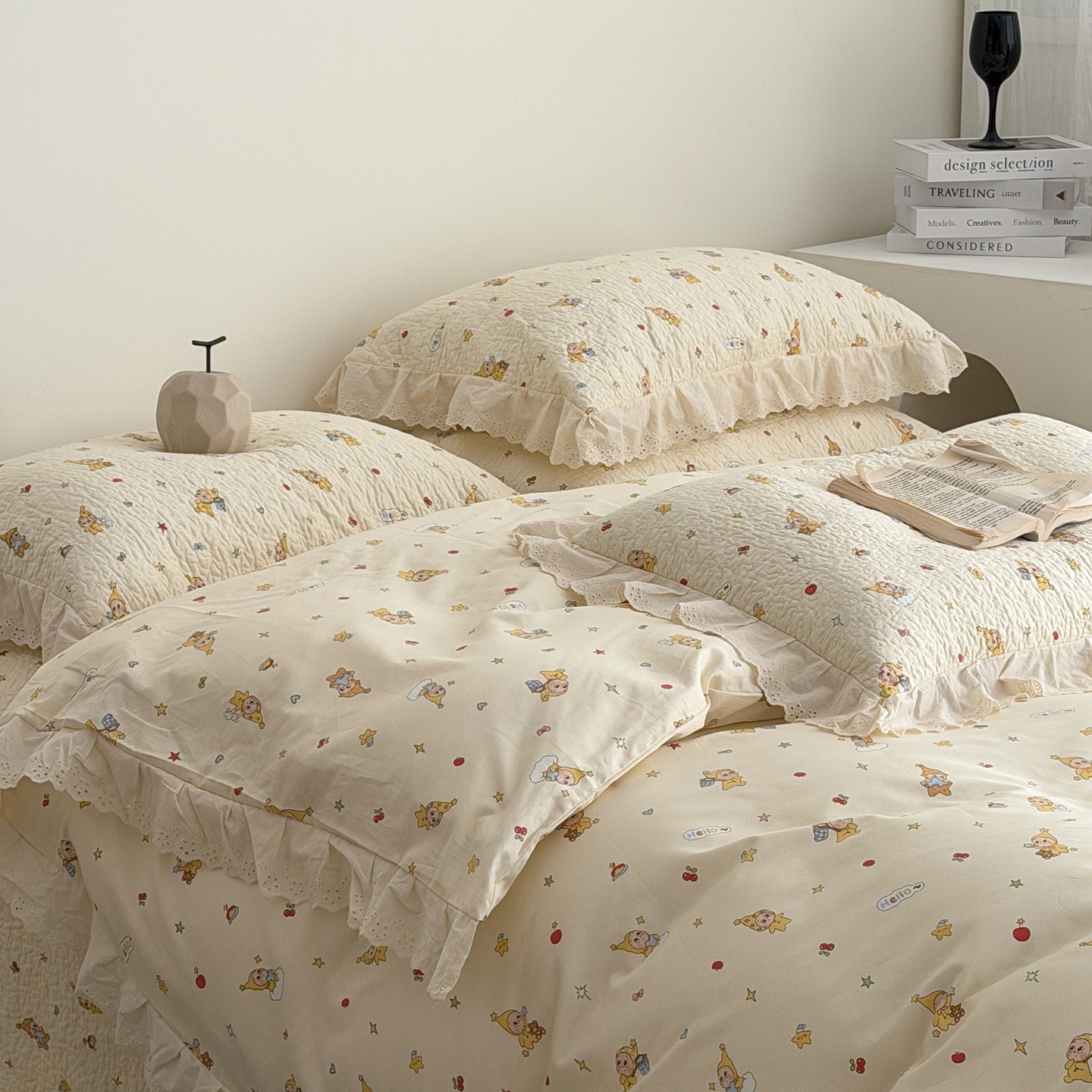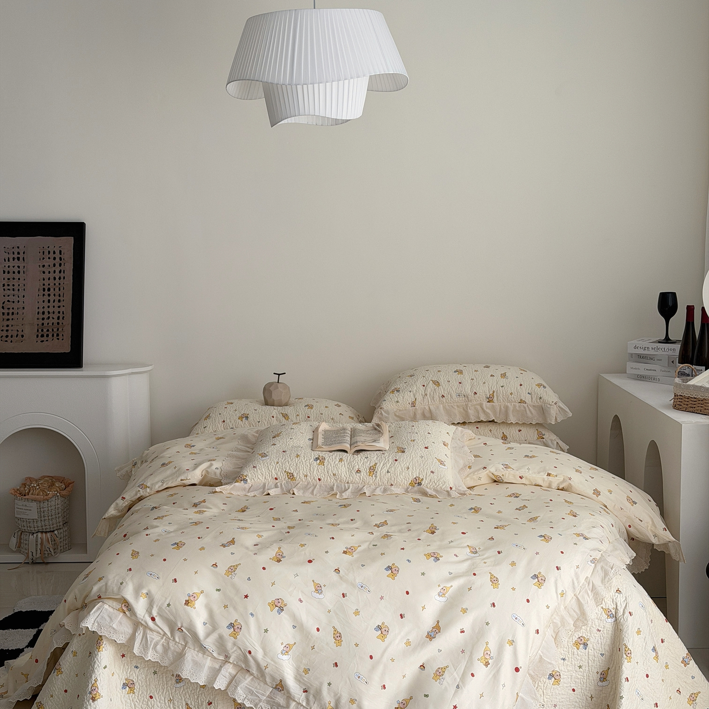 佰织鑫家居 2025新款全棉法式砂洗棉花床盖款被套四件套 星星人