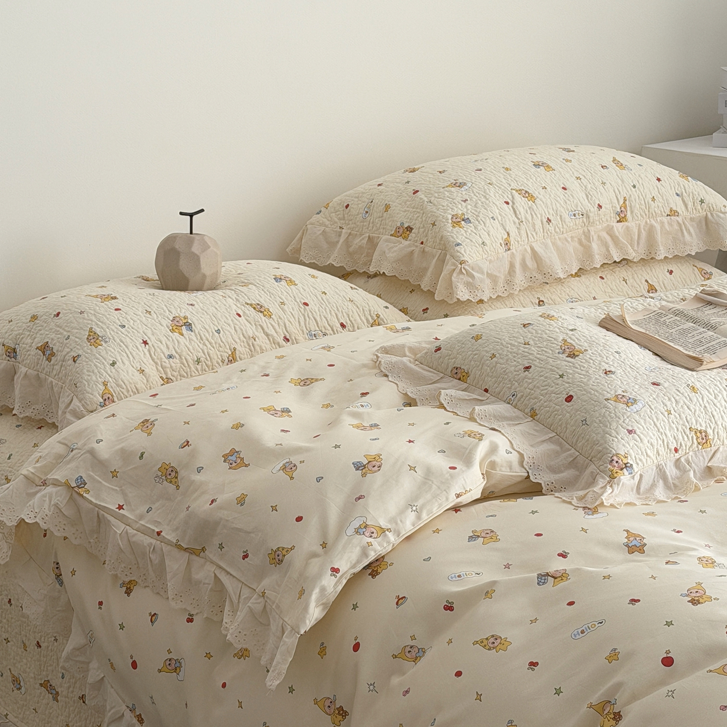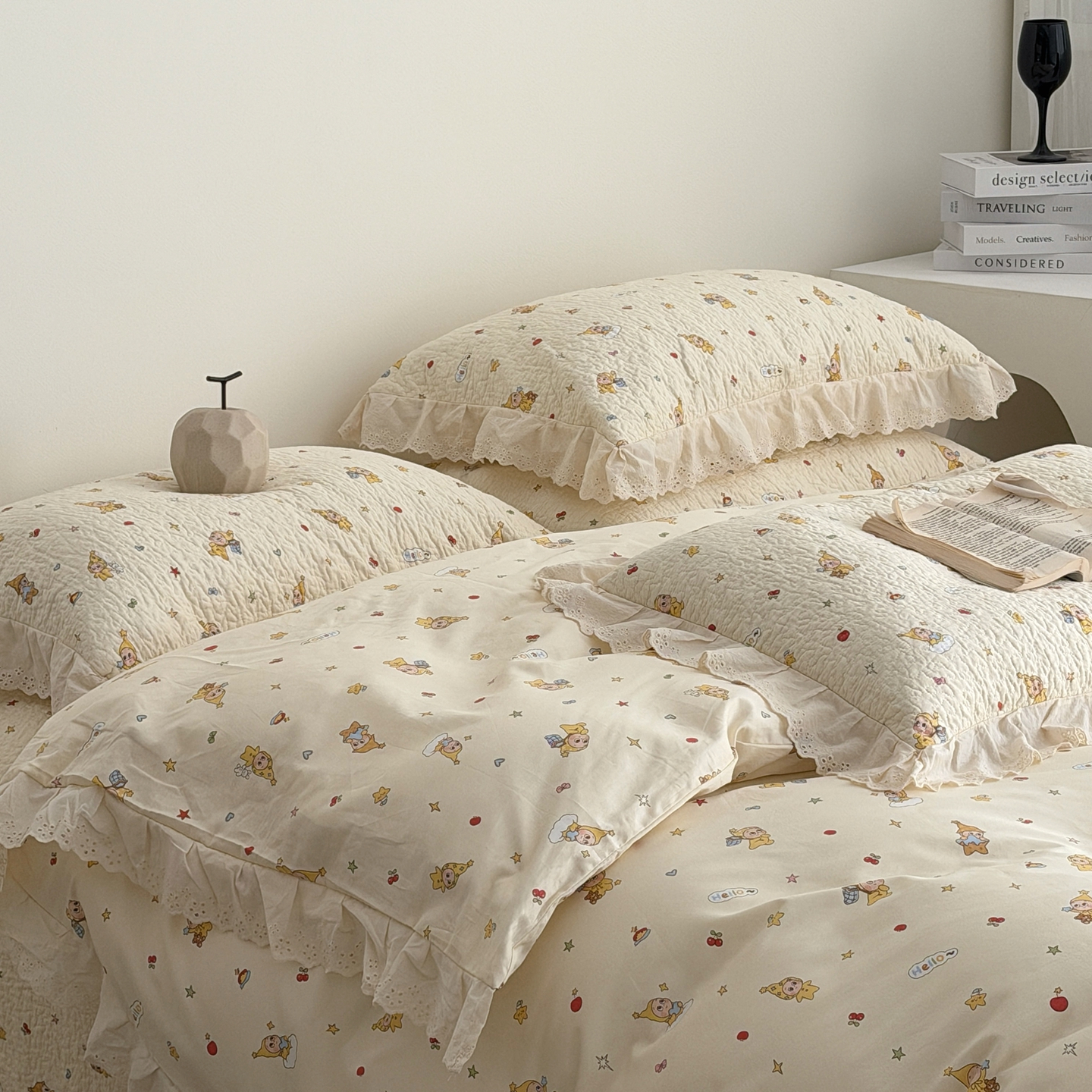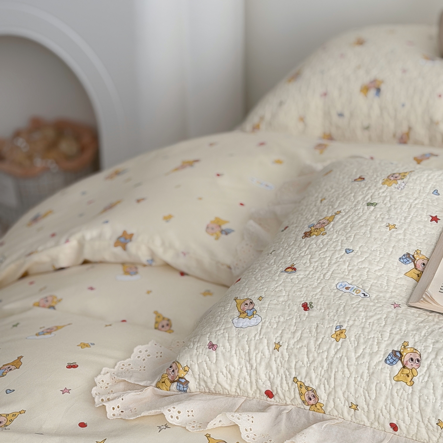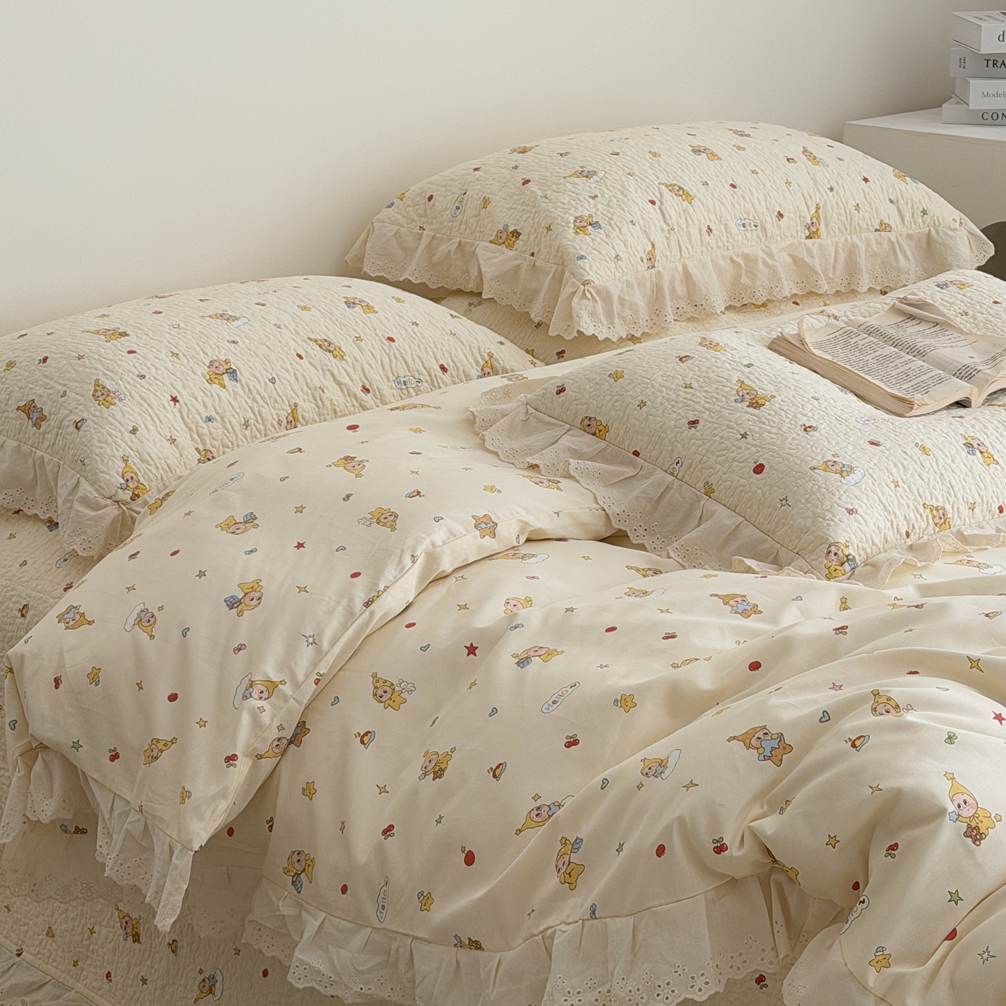 佰织鑫家居 2025新款全棉法式砂洗棉花床盖款被套四件套 星星人