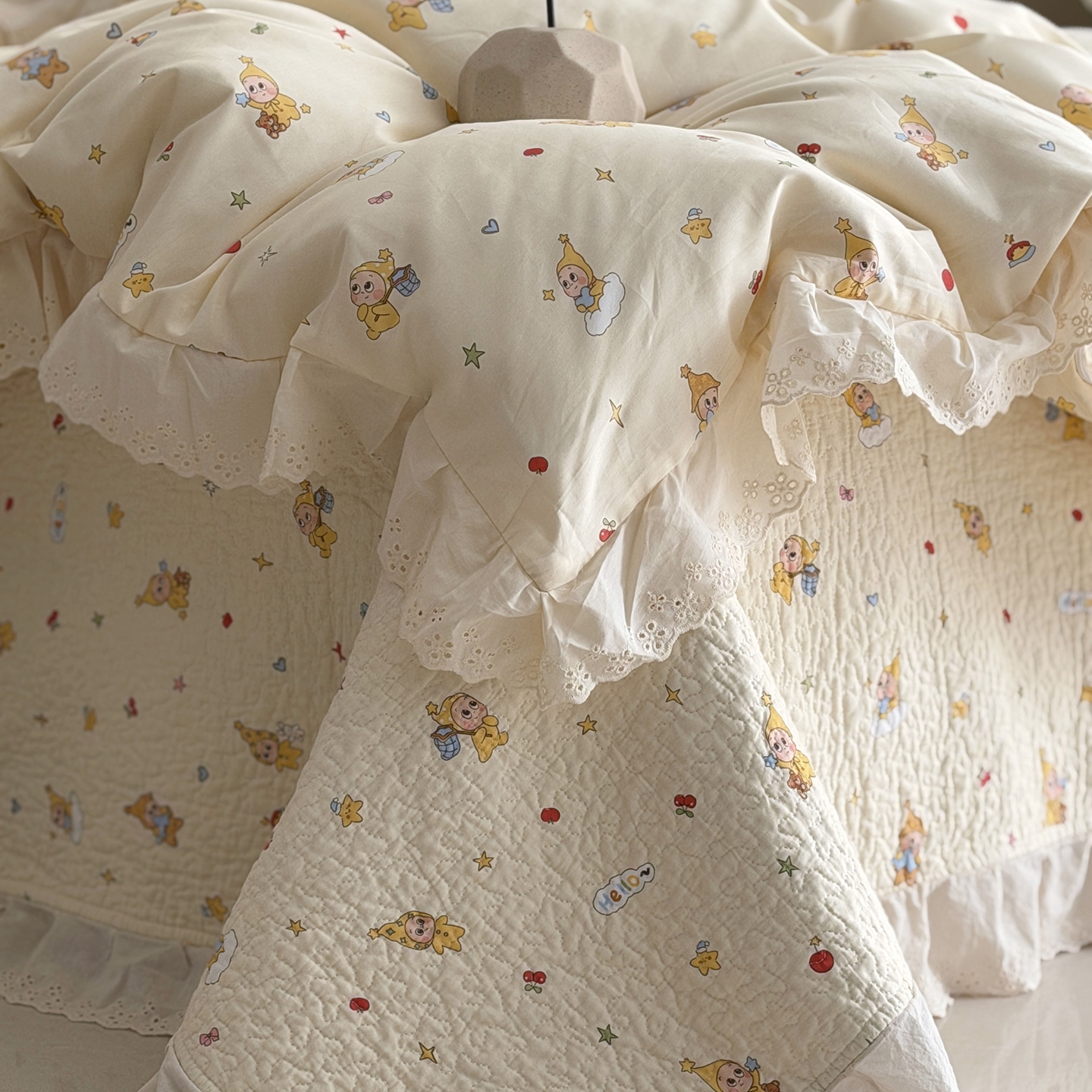 商品名称:佰织鑫家居 2025新款全棉法式砂洗棉花床盖款被套四件套 星星人