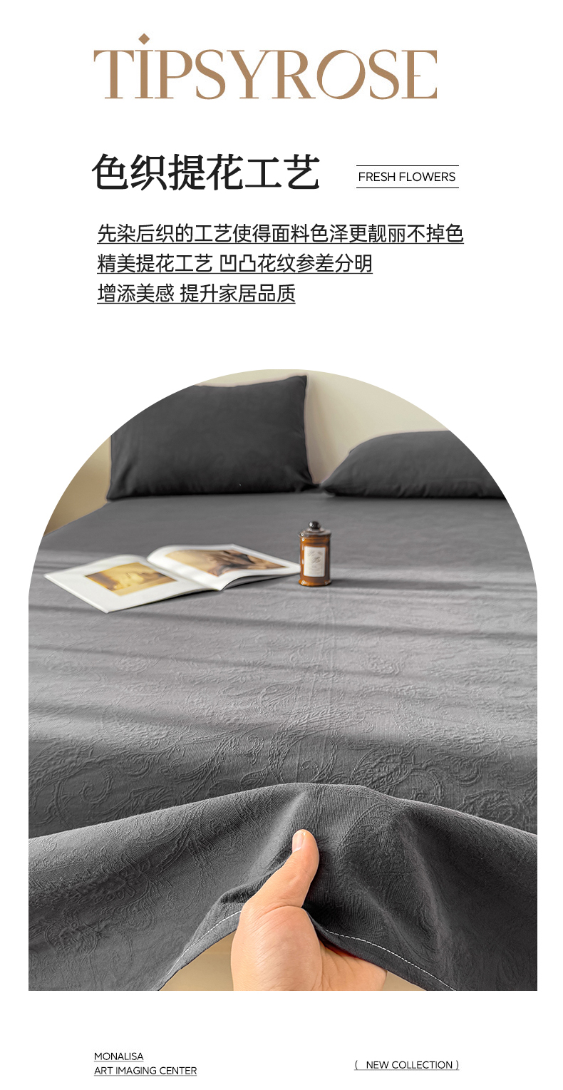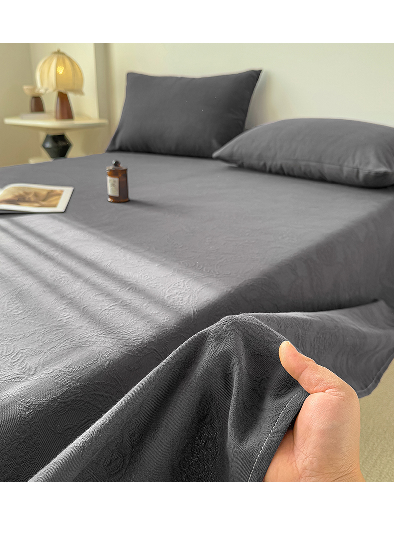 • 91家纺网 家纺一手货源 找家纺 灰鲸 2026新款全棉纯棉厚织三层水洗色织提花床单单床单床单单件 罗格西亚-素墨