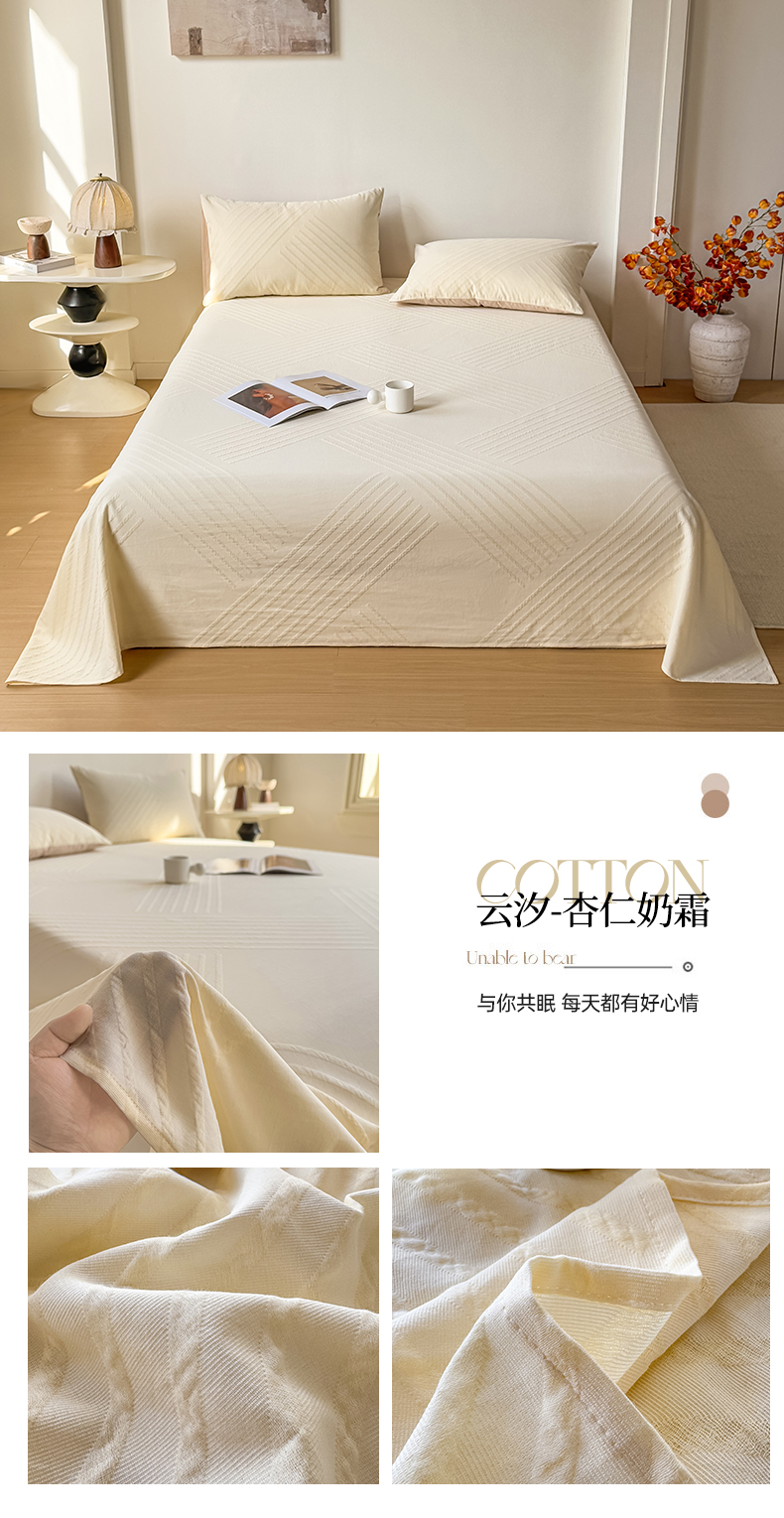 • 91家纺网 家纺一手货源 找家纺 灰鲸 2026新款全棉纯棉厚织三层水洗色织提花床单单床单床单单件 云汐-杏仁奶霜