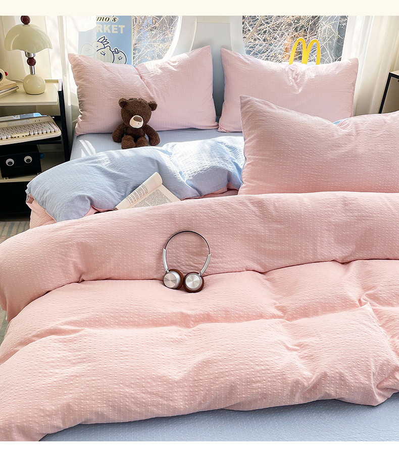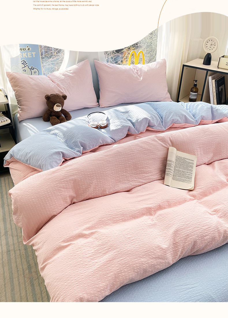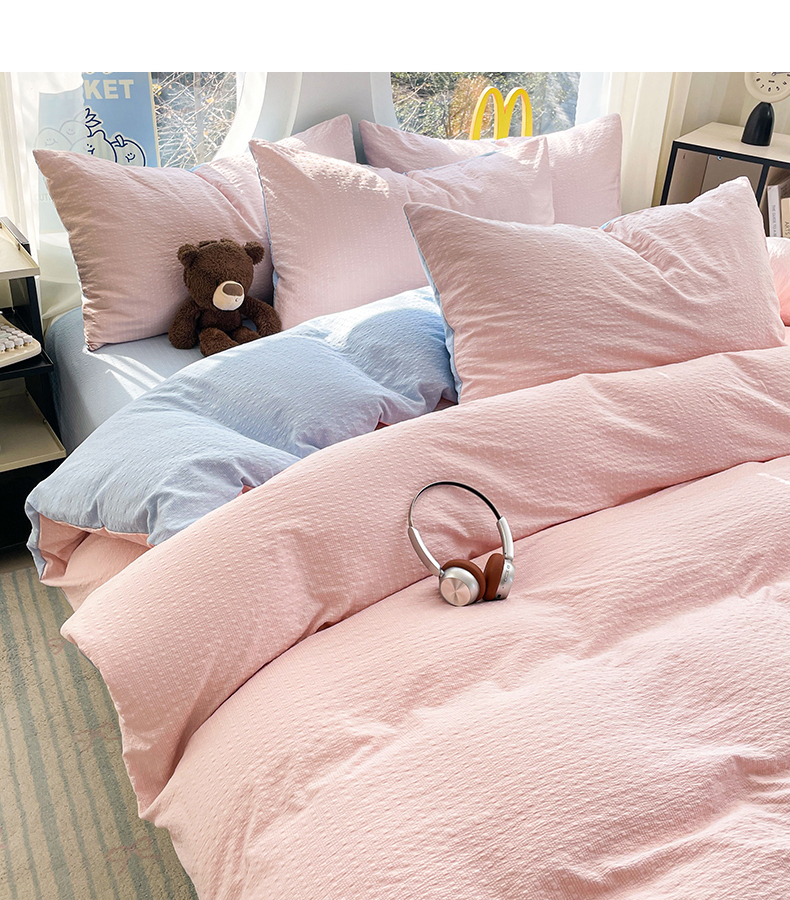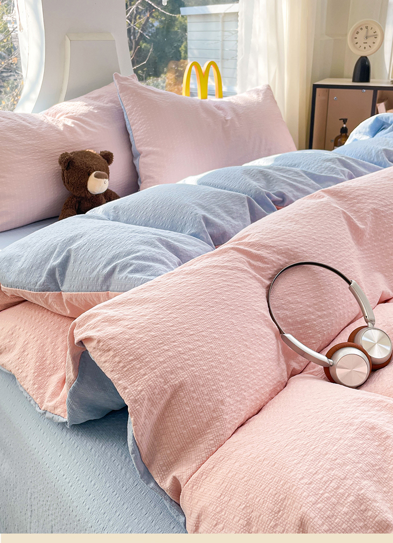 当前位置: 91家纺网 > 商品网购 > 床品套件 > 四件套 > 双层纱四件套 > 优承佳生活馆 2026新款软糯双拼泡芙纱四件套 肉桂粉+天空蓝