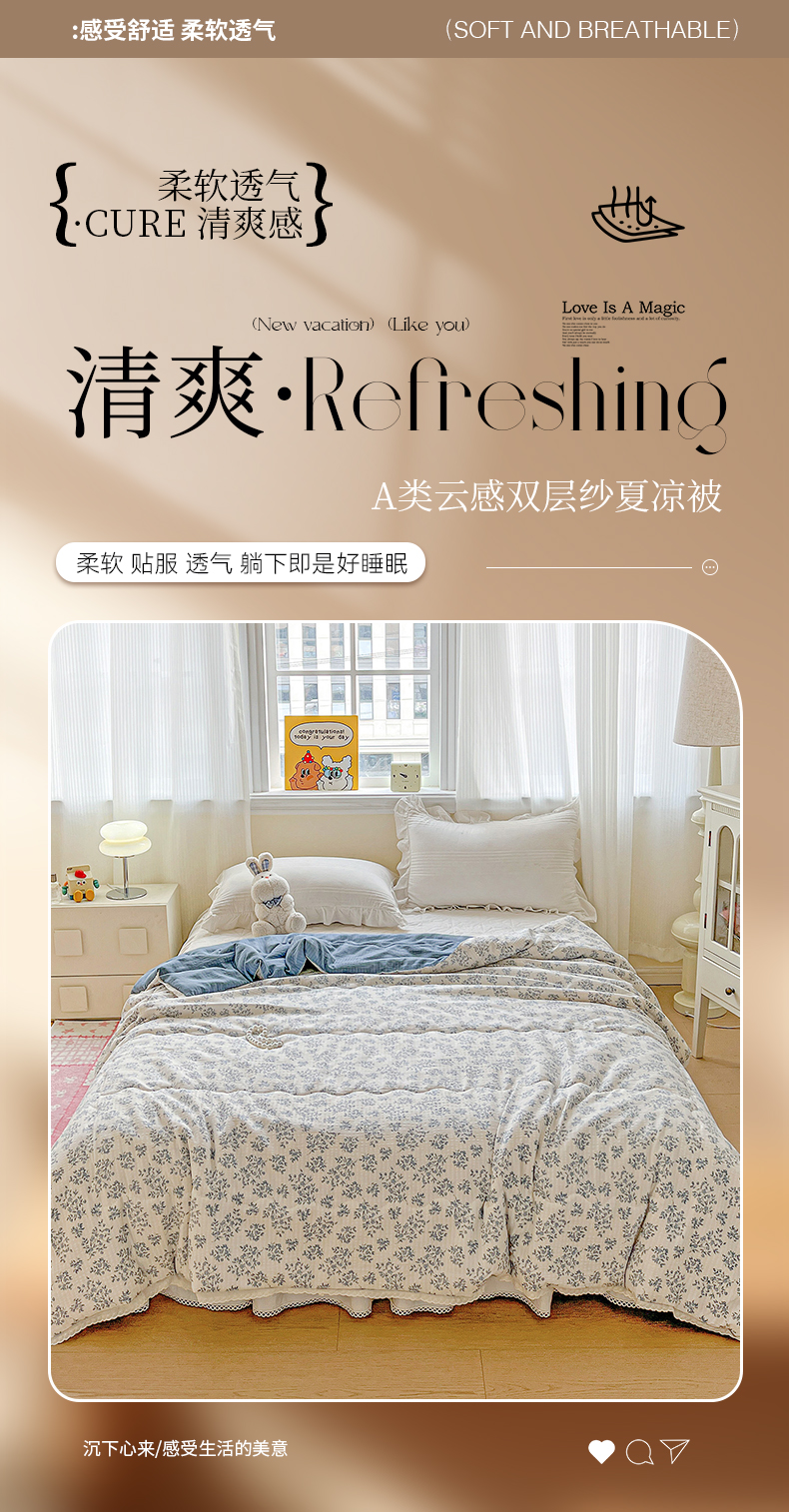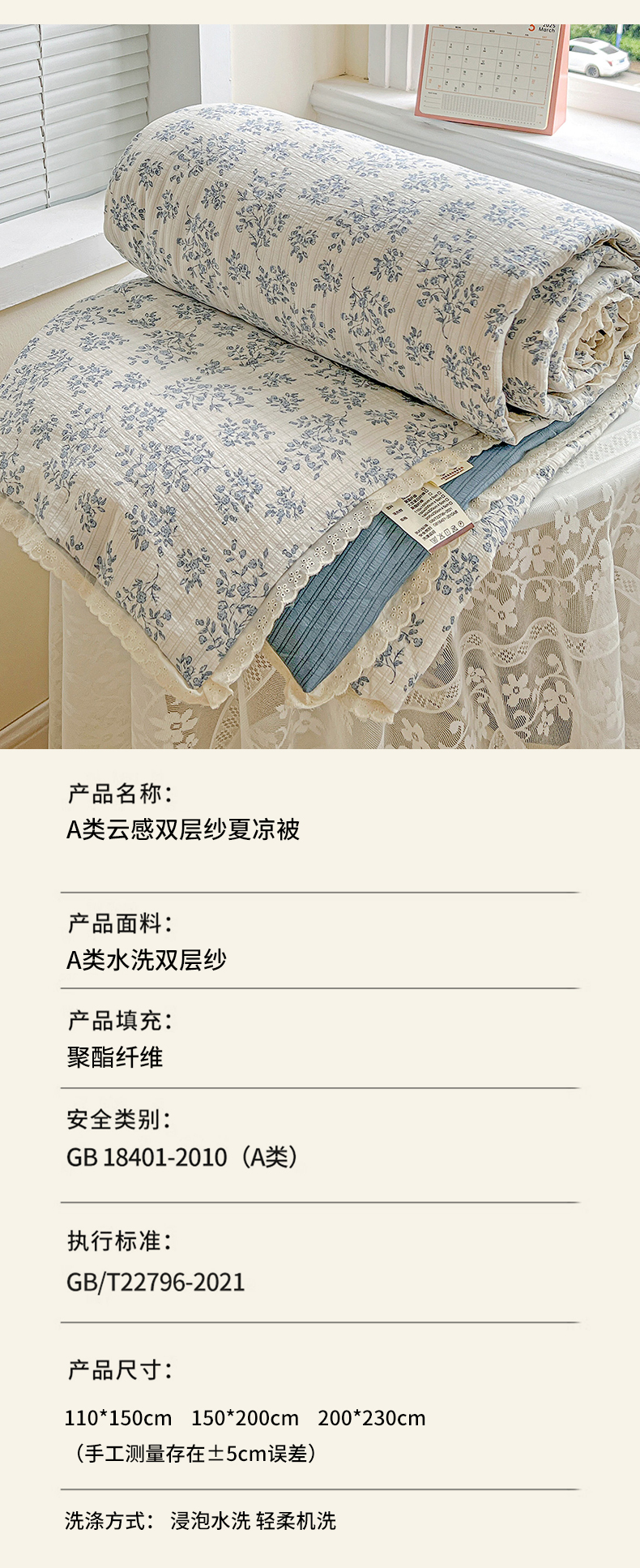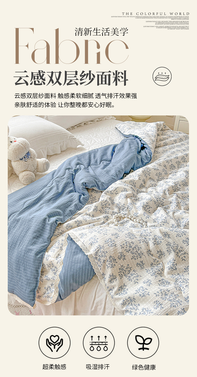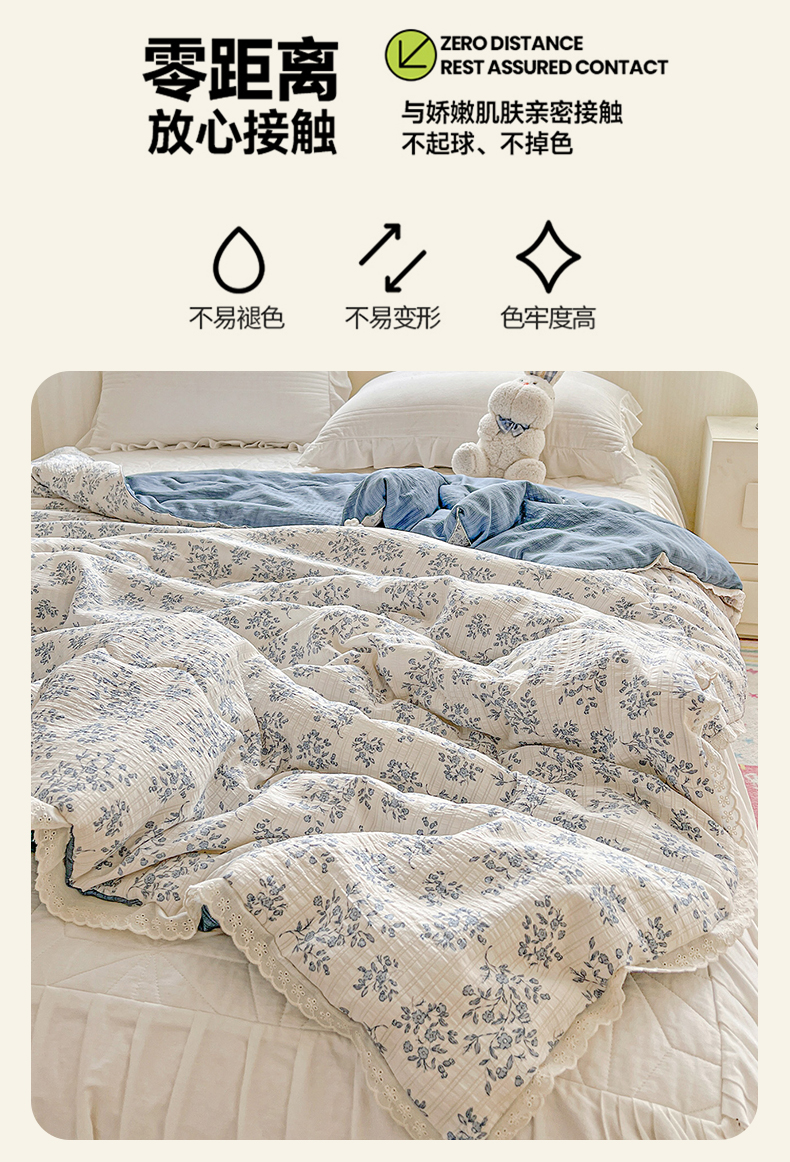 (总)艺菲阁家纺 2025新款花边款小碎花A类云感双层纱夏被,春风十里,海像深林,偏偏宠爱,倾心-米,人间草木,森田野园,相思-粉,相思-蓝