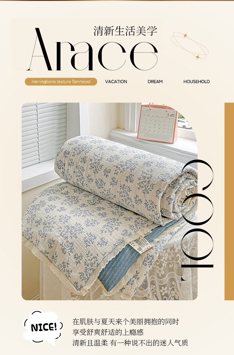 艺菲阁家纺 2026爆款升级花边工艺双层纱夏凉被 浅画
