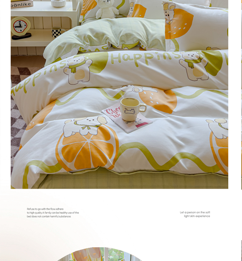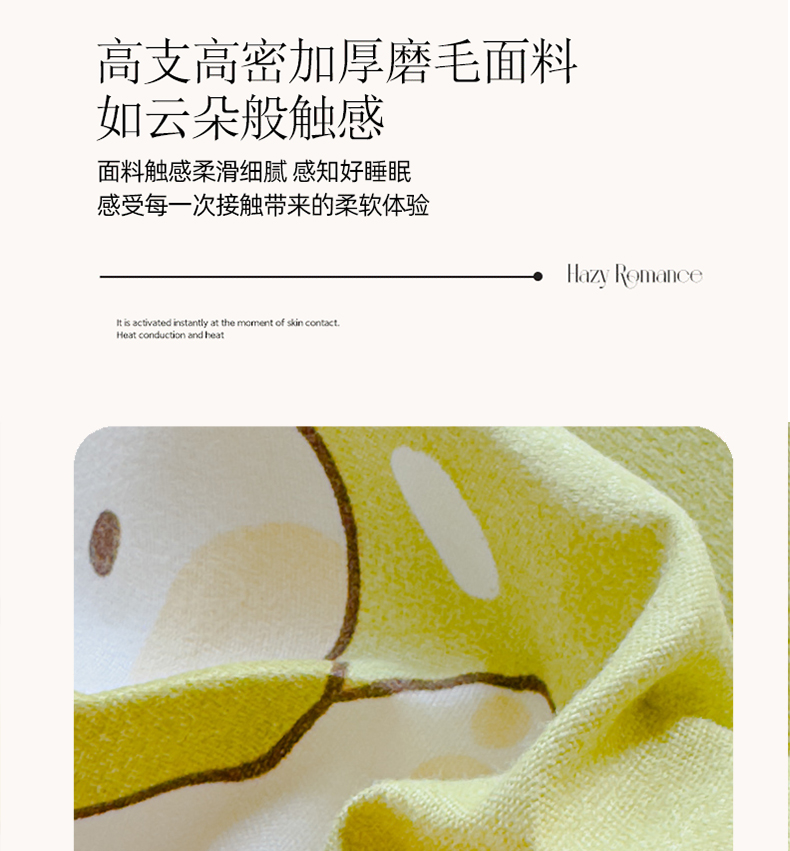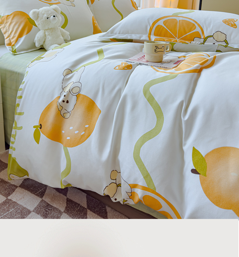 商品名称:佑佳家纺 2024新款磨毛印花植物羊绒单被套 柠檬熊