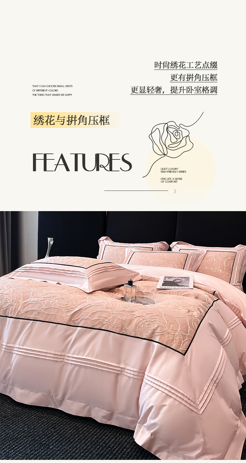 当前位置: 91家纺网 > 商品网购 > 床品套件 > 四件套 > 其它四件套 > 置顶家纺 2026新款亲肤棉玫瑰刺绣提花卡罗拉系列四件套 卡罗拉-魅粉