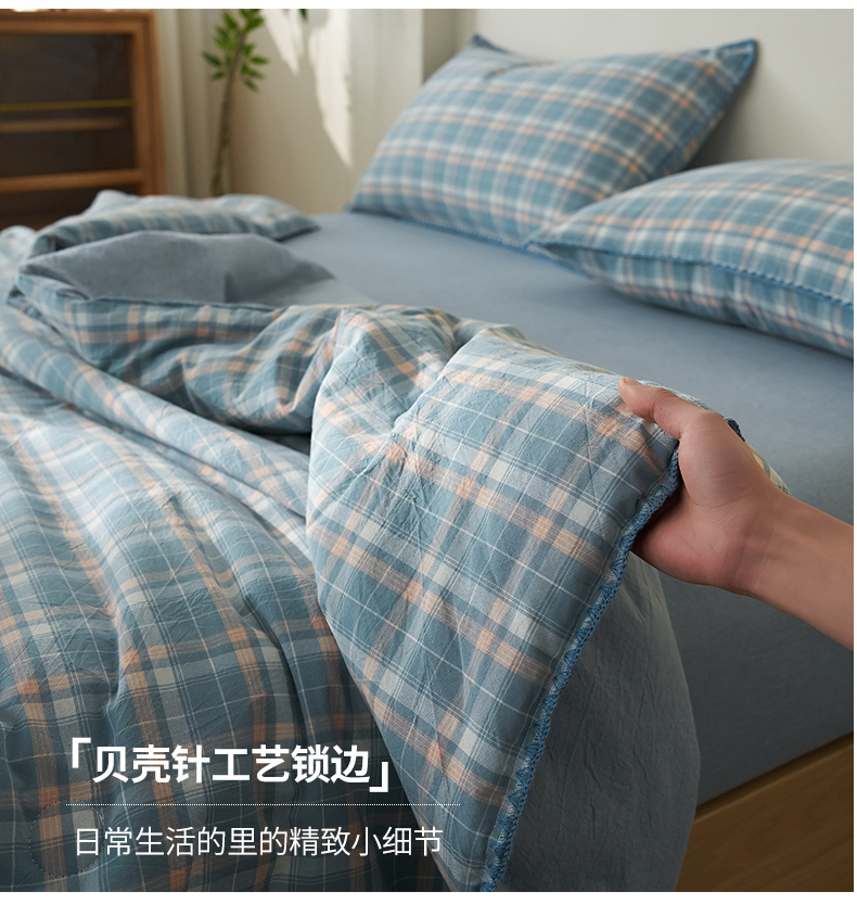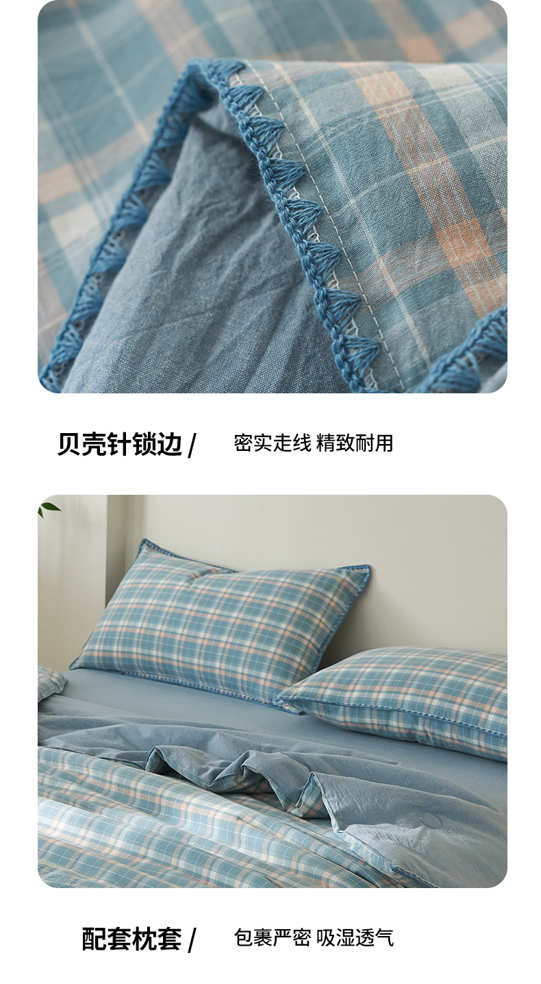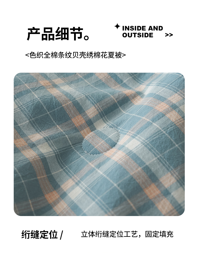 商品名称:暖阳 2026新款无印风色织全棉贝壳绣棉花夏被夏凉被空调被 贝壳海军格蓝
