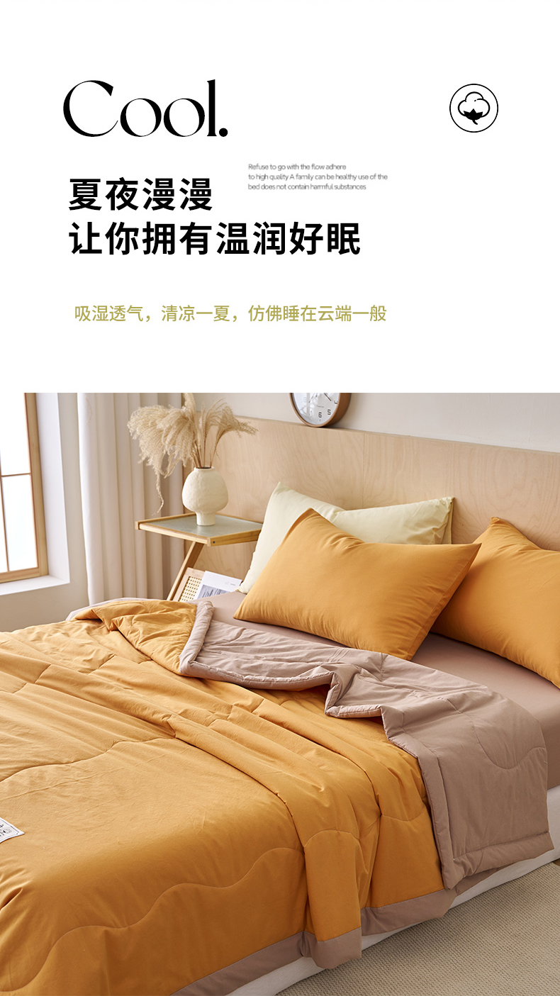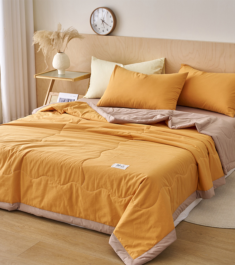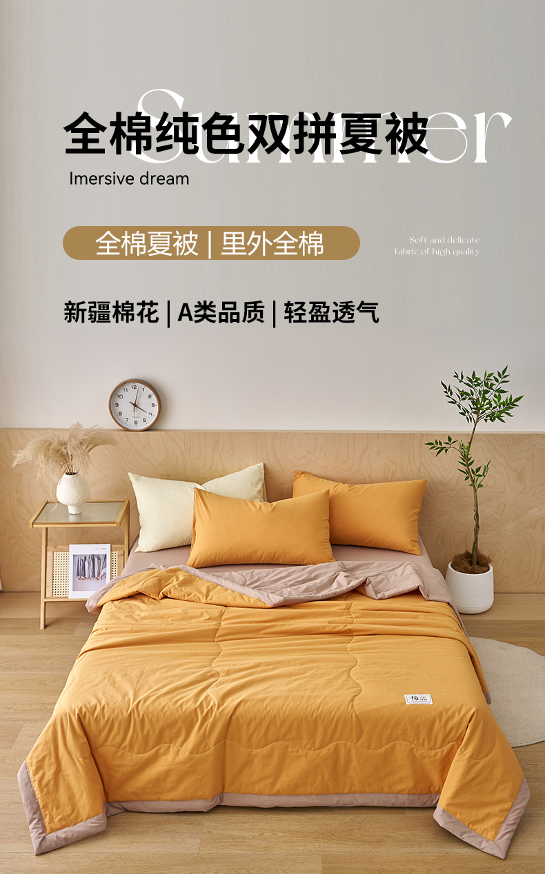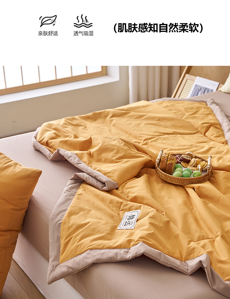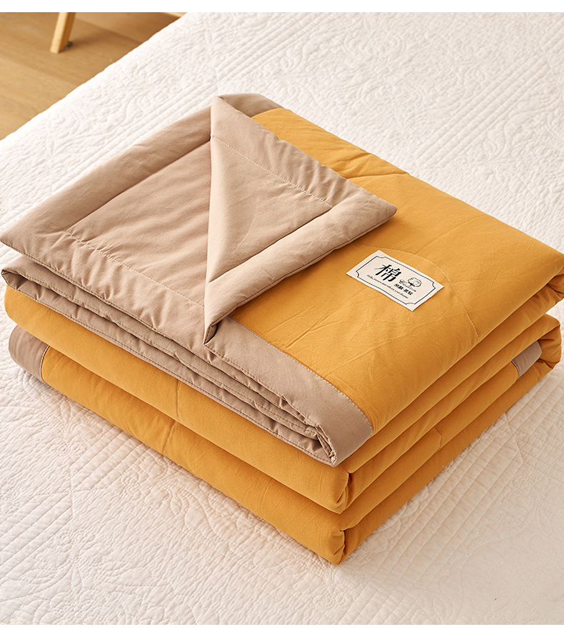 暖阳 2026新款全棉纯色+拼色棉花夏被夏凉被空调被 南瓜拼卡其
