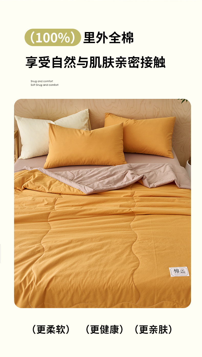 商品名称:暖阳 2026新款全棉纯色+拼色棉花夏被夏凉被空调被 南瓜拼卡其