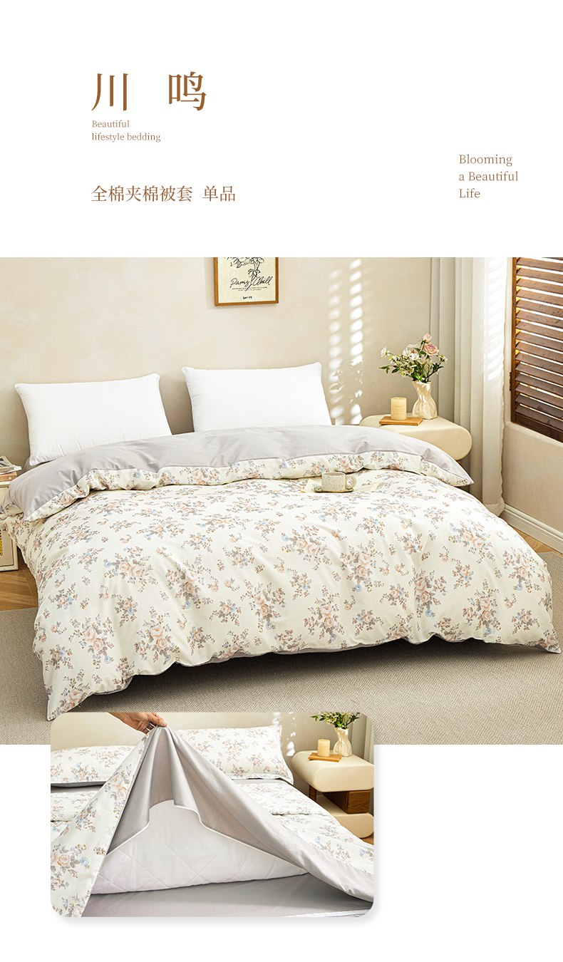 商品名称:(总)元元家居(元元被业) 2026新款全棉13372套件及单品【印花款】-被套夹棉四件套