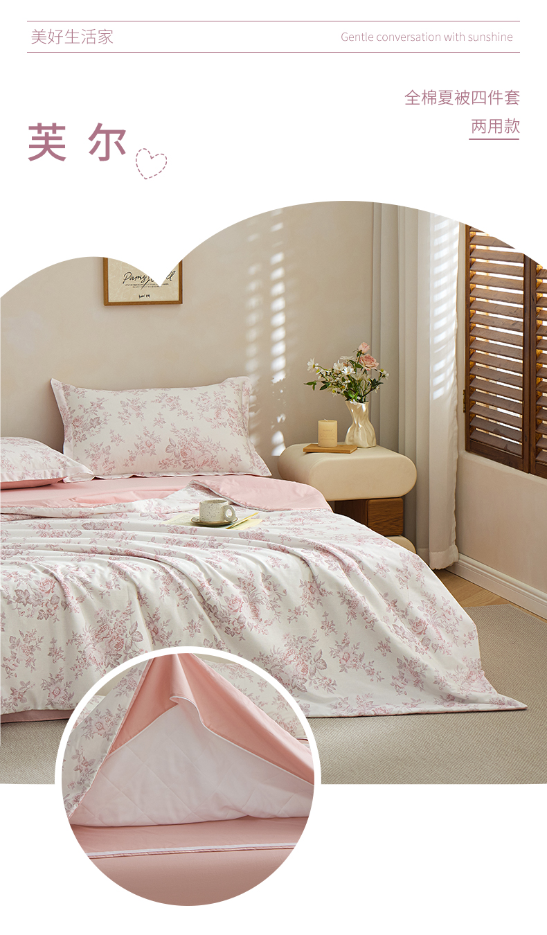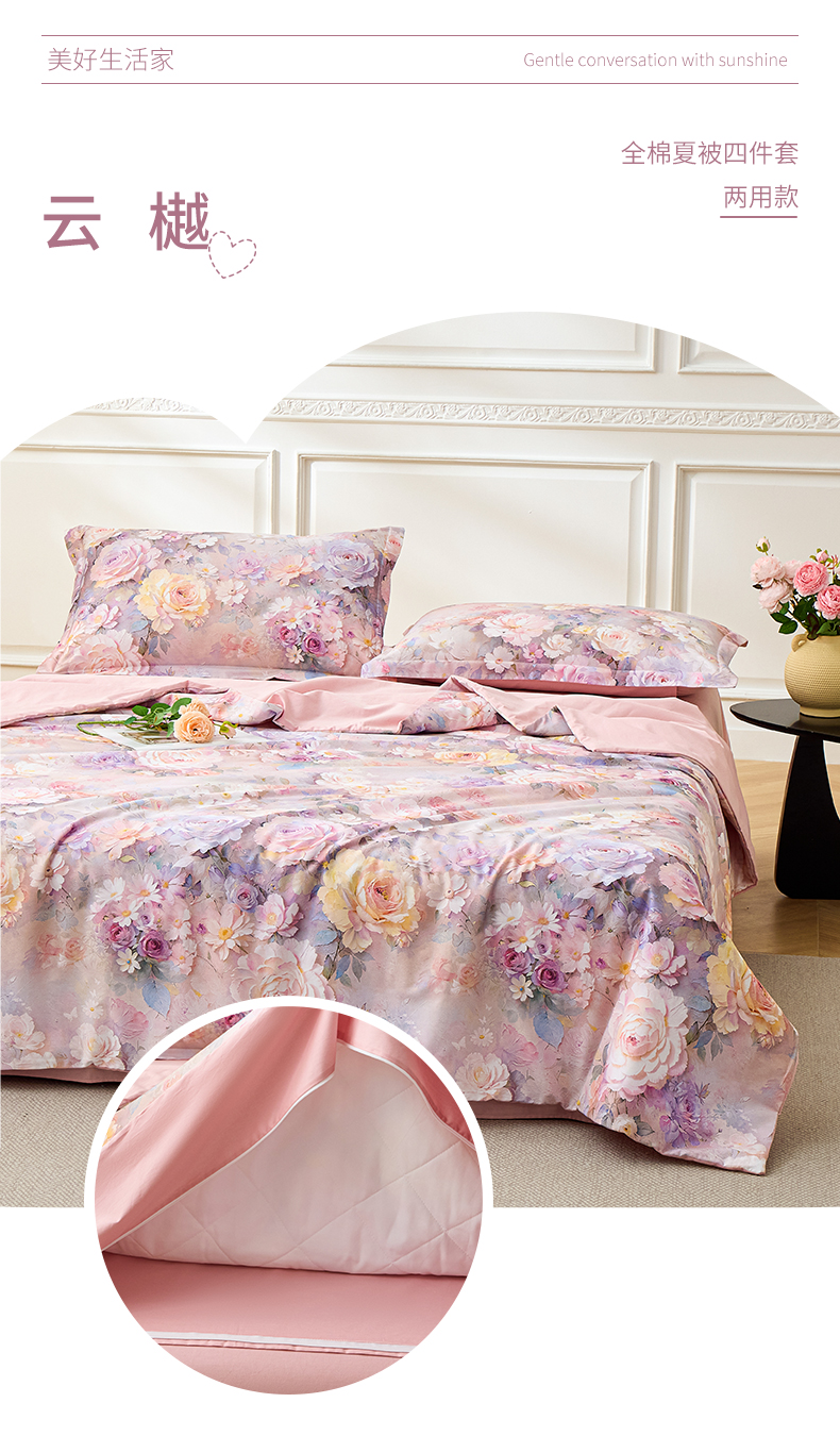 元元家居(元元被业) 2026新款全棉纯棉13372印花两用夏被夏凉被空调被四件套 月棠