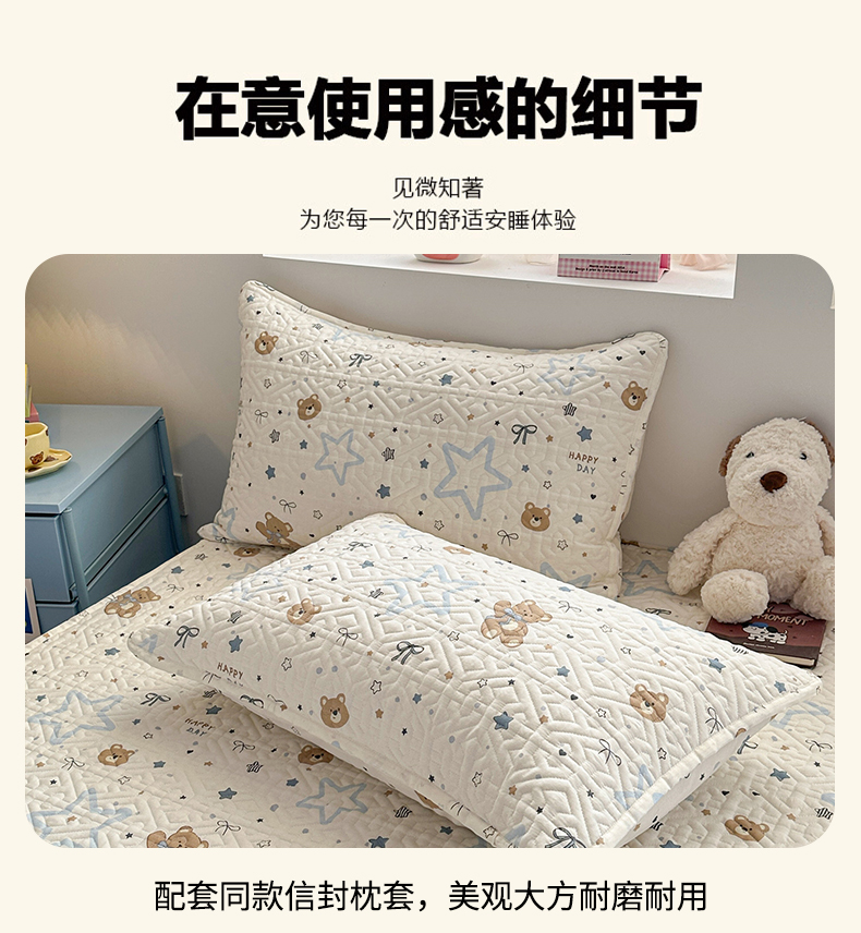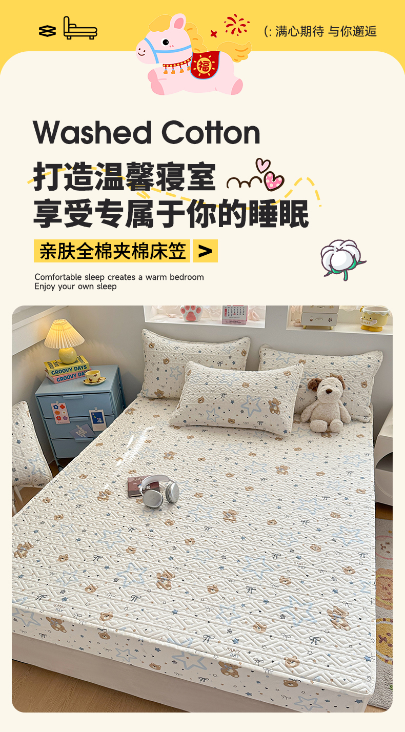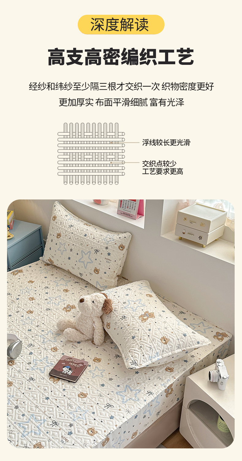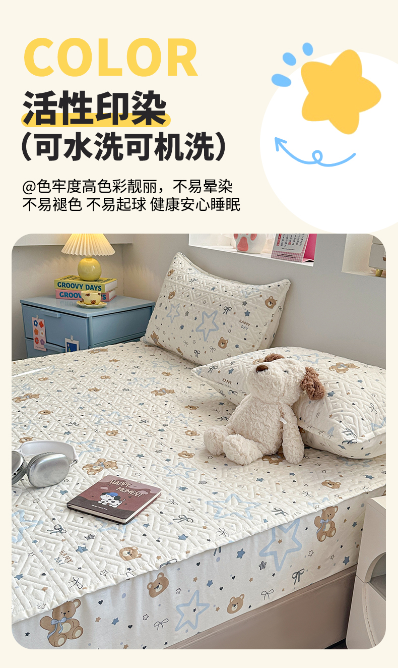 商品名称:忘忧草 2026新款清新简约全棉印花夹棉床笠 小熊天文馆