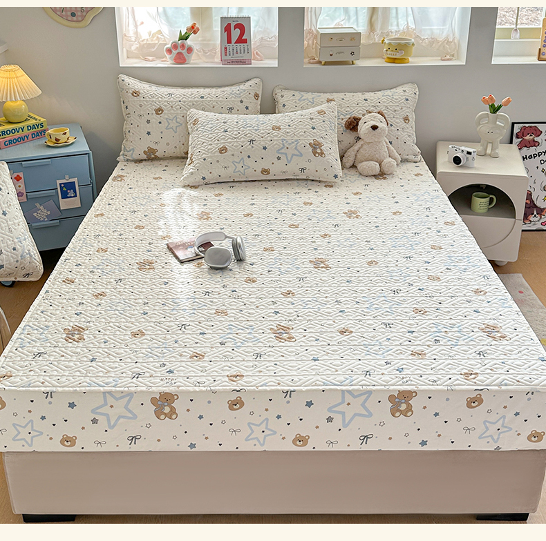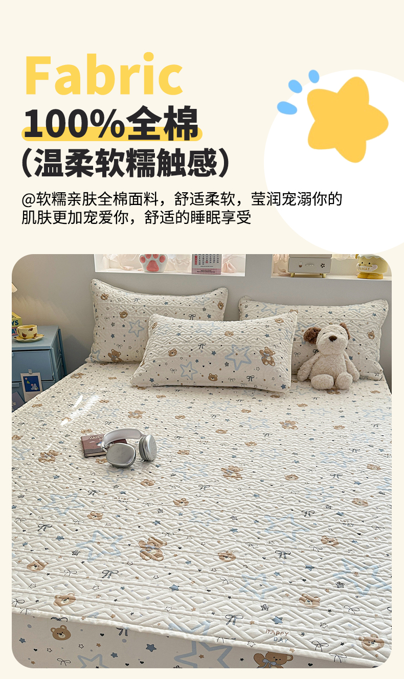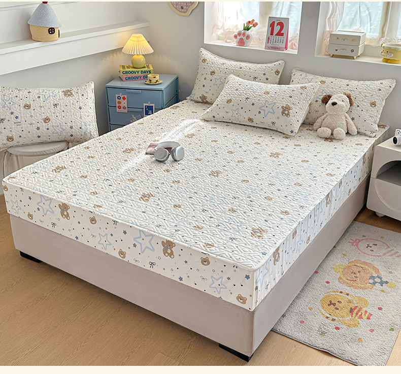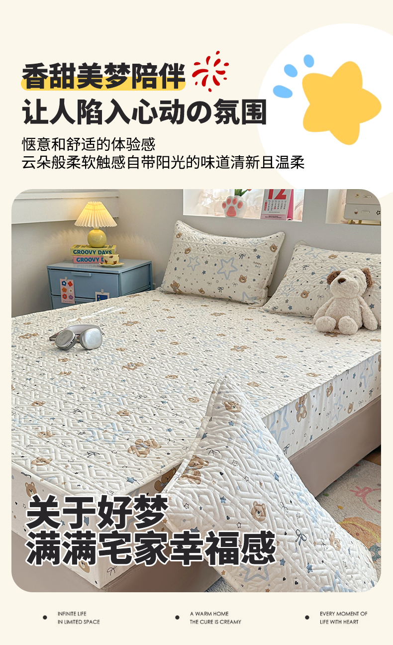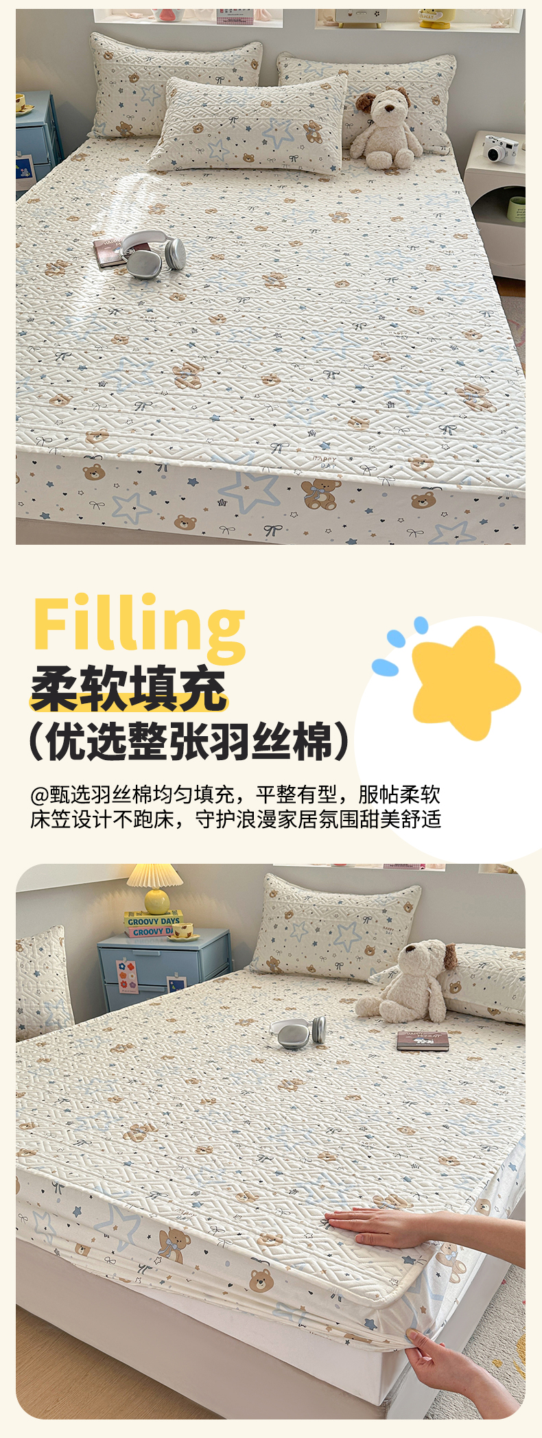 商品名称:忘忧草 2026新款清新简约全棉印花夹棉床笠 小熊天文馆