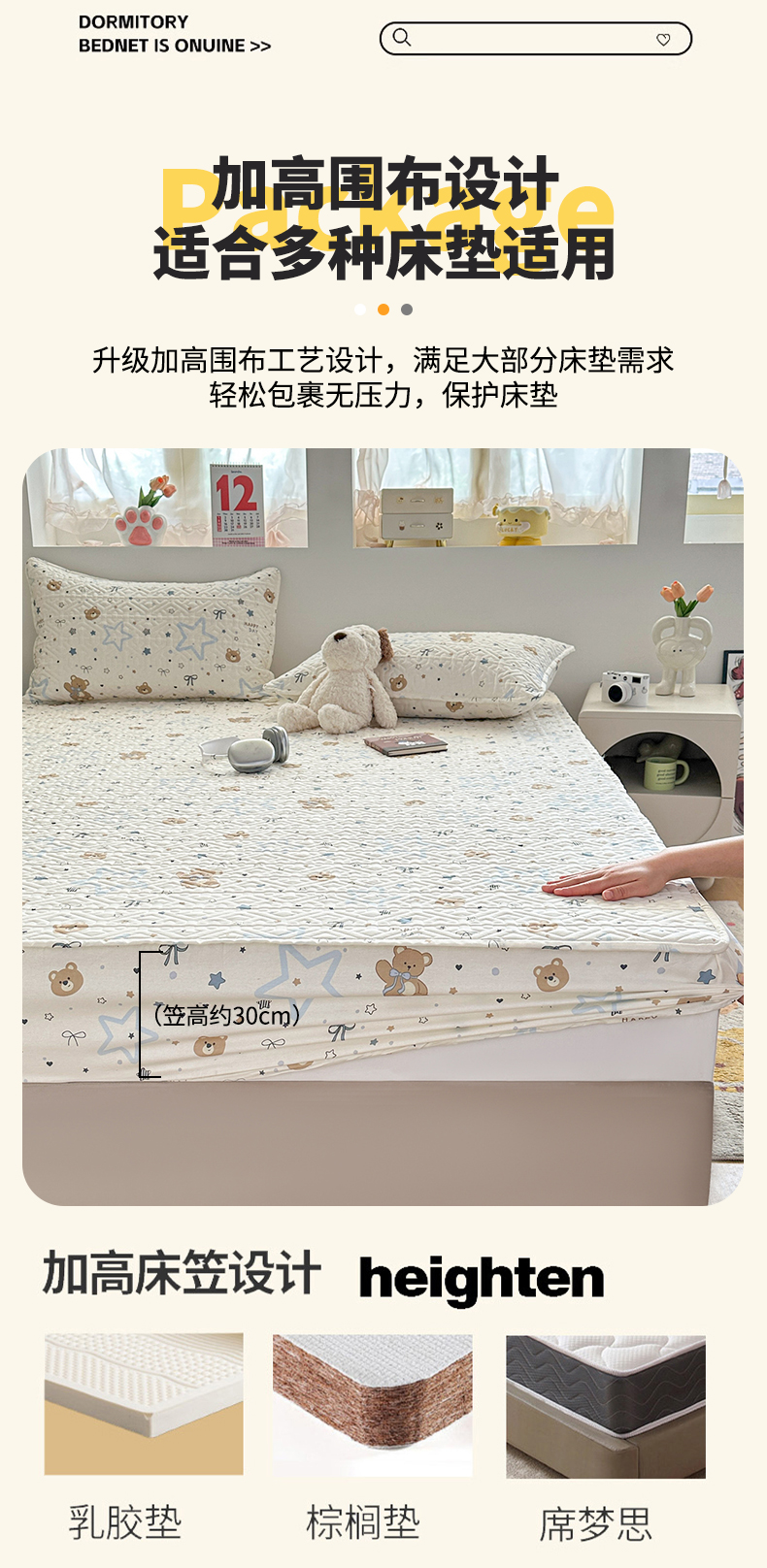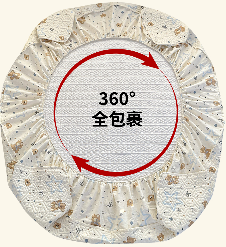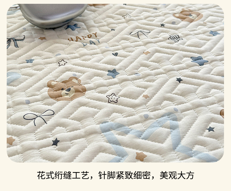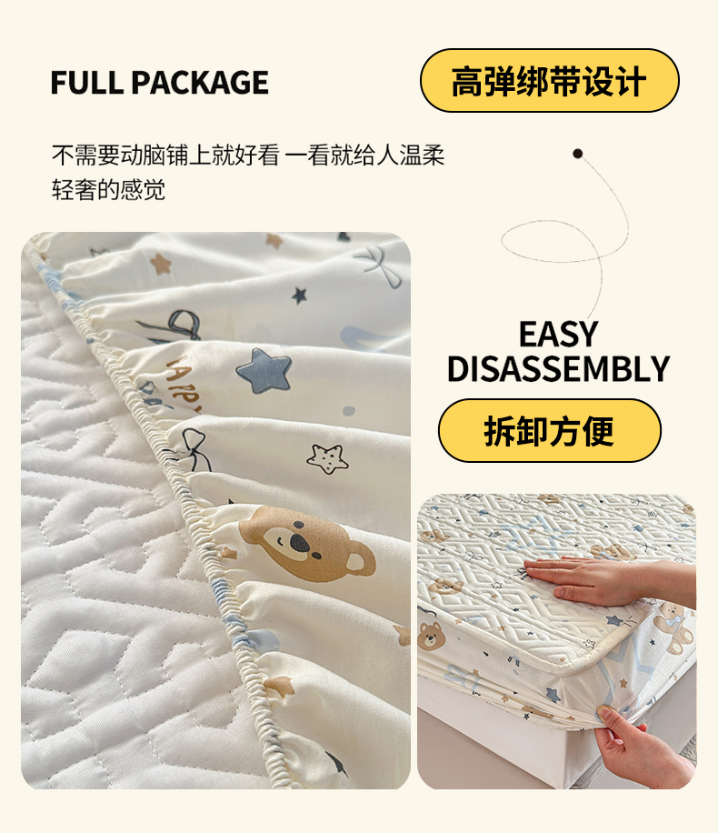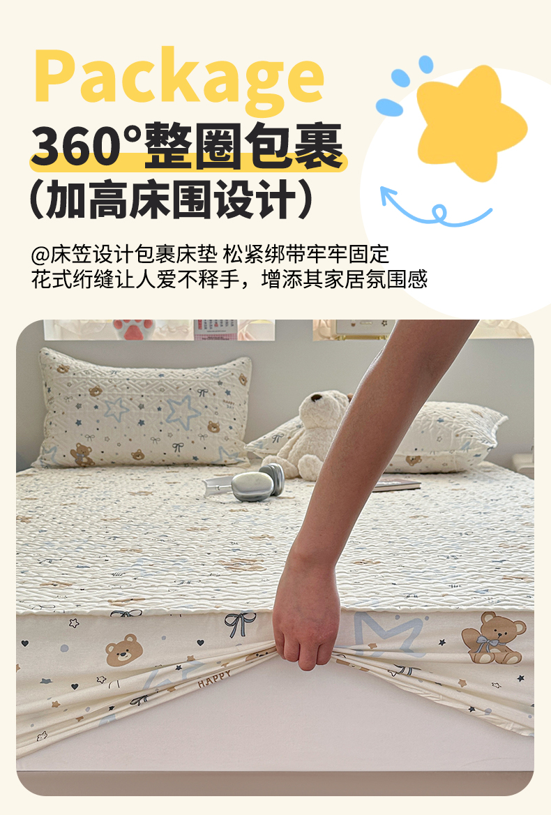 商品名称:忘忧草 2026新款清新简约全棉印花夹棉床笠 小熊天文馆