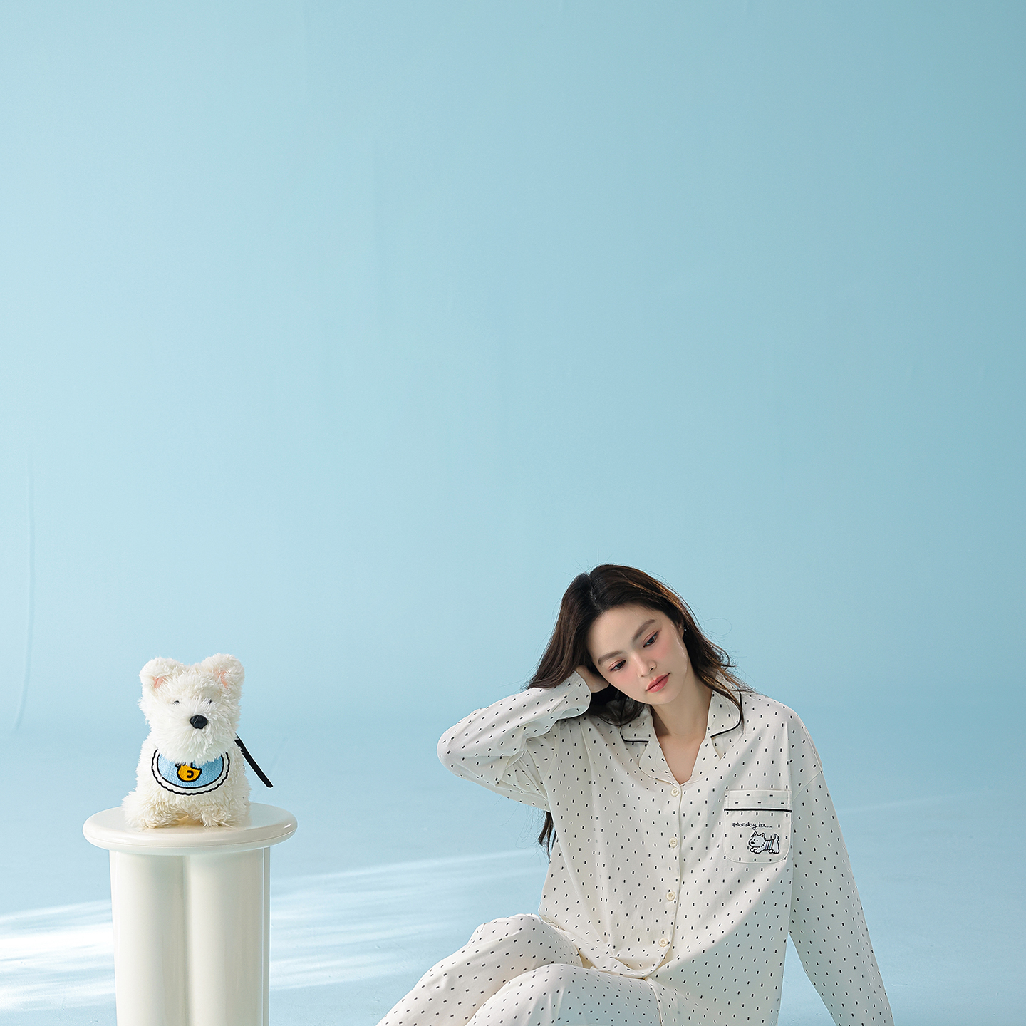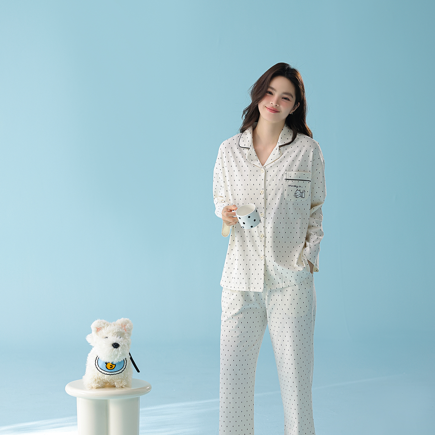 当前位置: 91家纺网 > 商品网购 > 居家日用 > 睡衣/家居服套装 > (总)妍景家居生活馆 2026新款新疆棉情侣款翻领黑白波点套装
