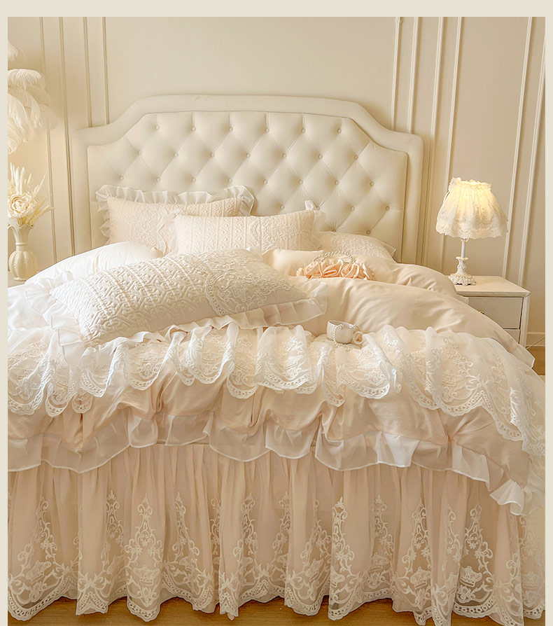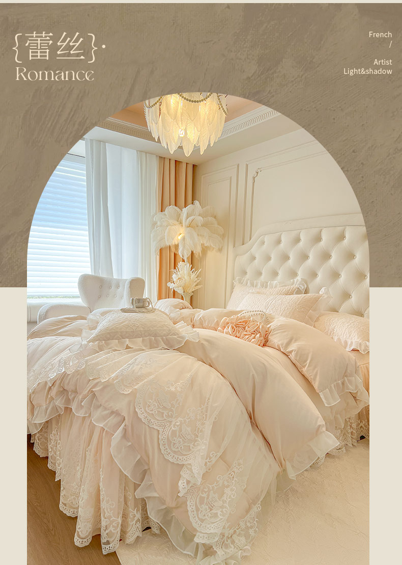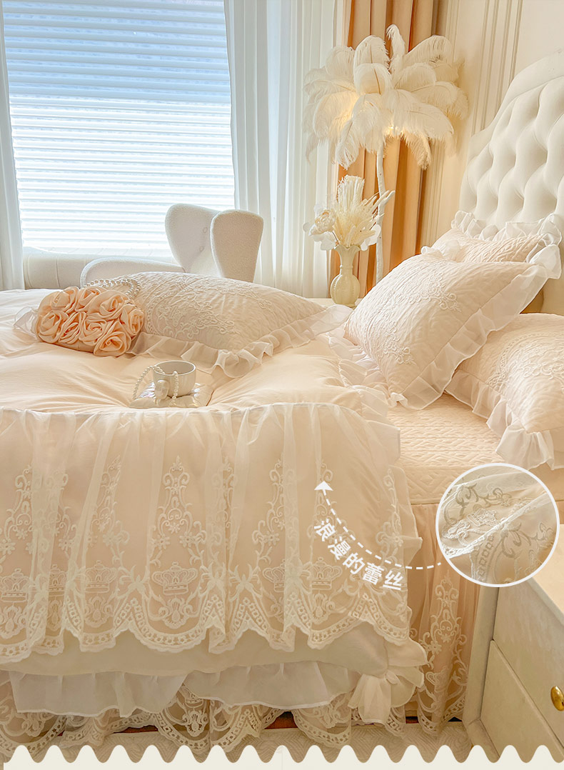 当前位置: 91家纺网 > 商品网购 > 床品套件 > 四件套 > 其它四件套 > 恋尚 2026新款木凉淳浪漫蕾丝床裙四件套-米朵(控价220起) 米朵-米黄