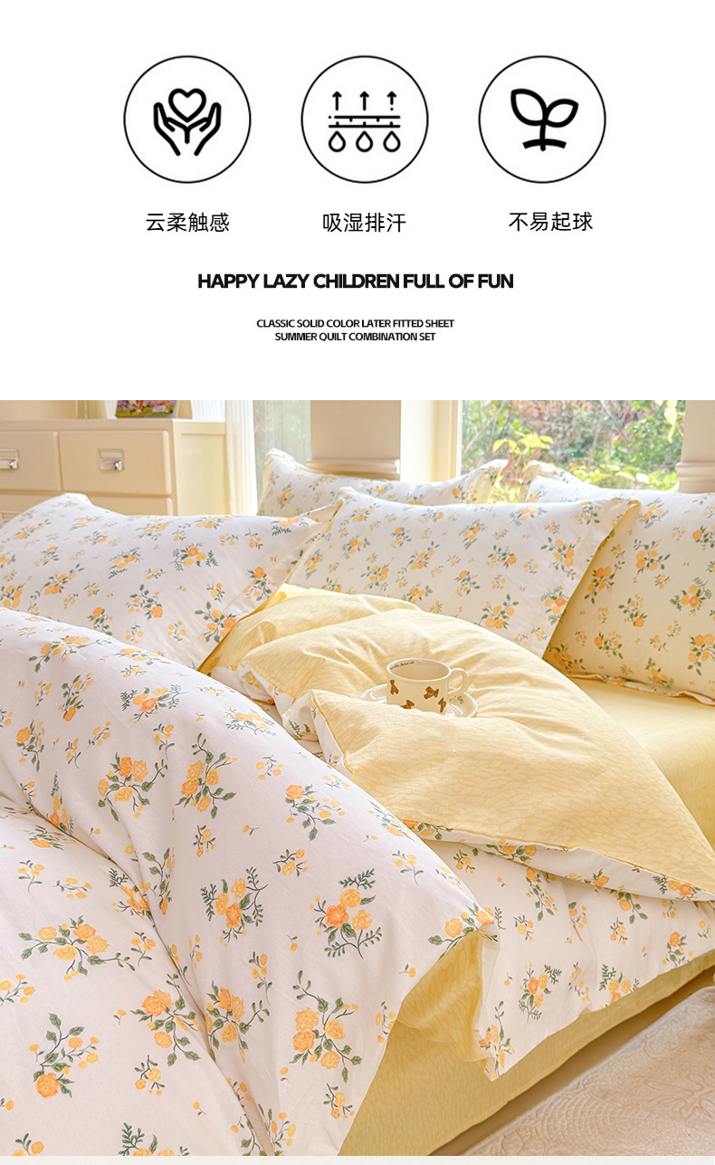 当前位置: 91家纺网 > 商品网购 > 床品套件 > 四件套 > 全棉普通四件套 > 佑金甜 2026新款精梳全棉印花四件套 柠夏