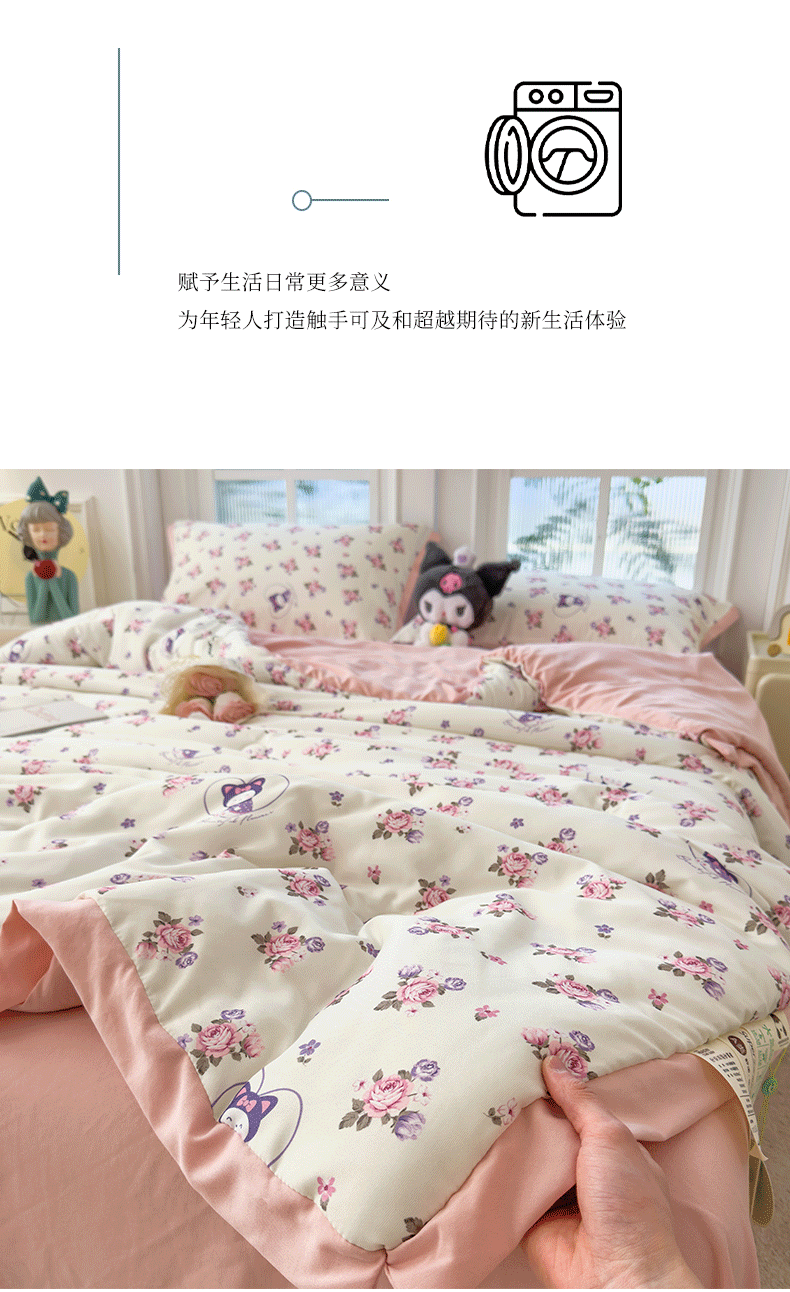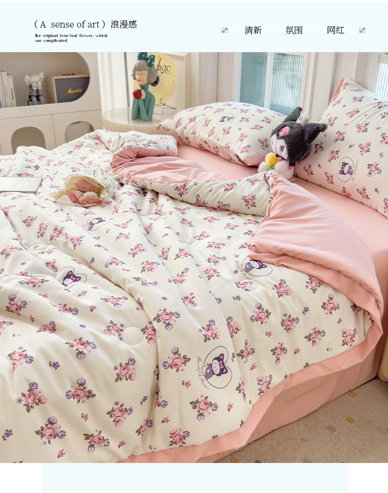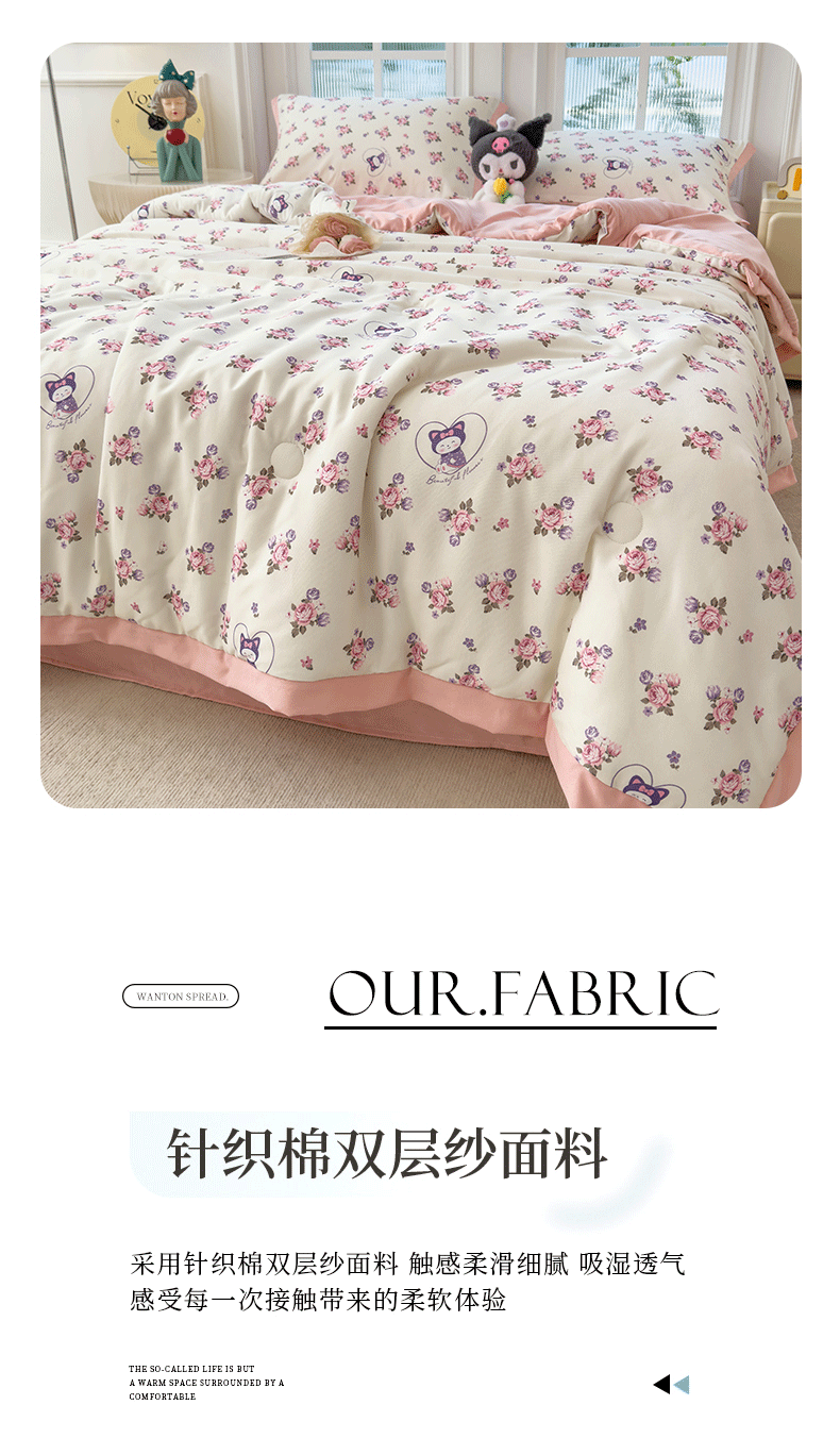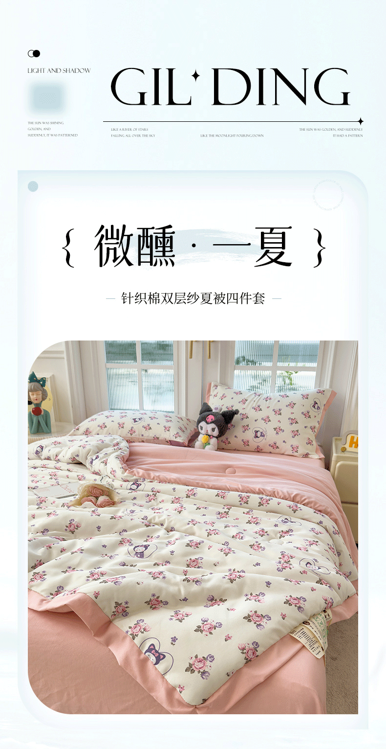 当前位置: 91家纺网 > 商品网购 > 床品套件 > 四件套 > 夏被四件套 > 悦织语 2026新款A类针织棉双层纱韩版夏被四件套空调被 甜心库洛