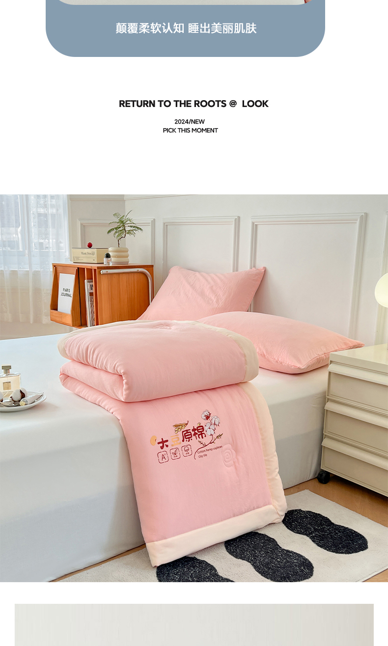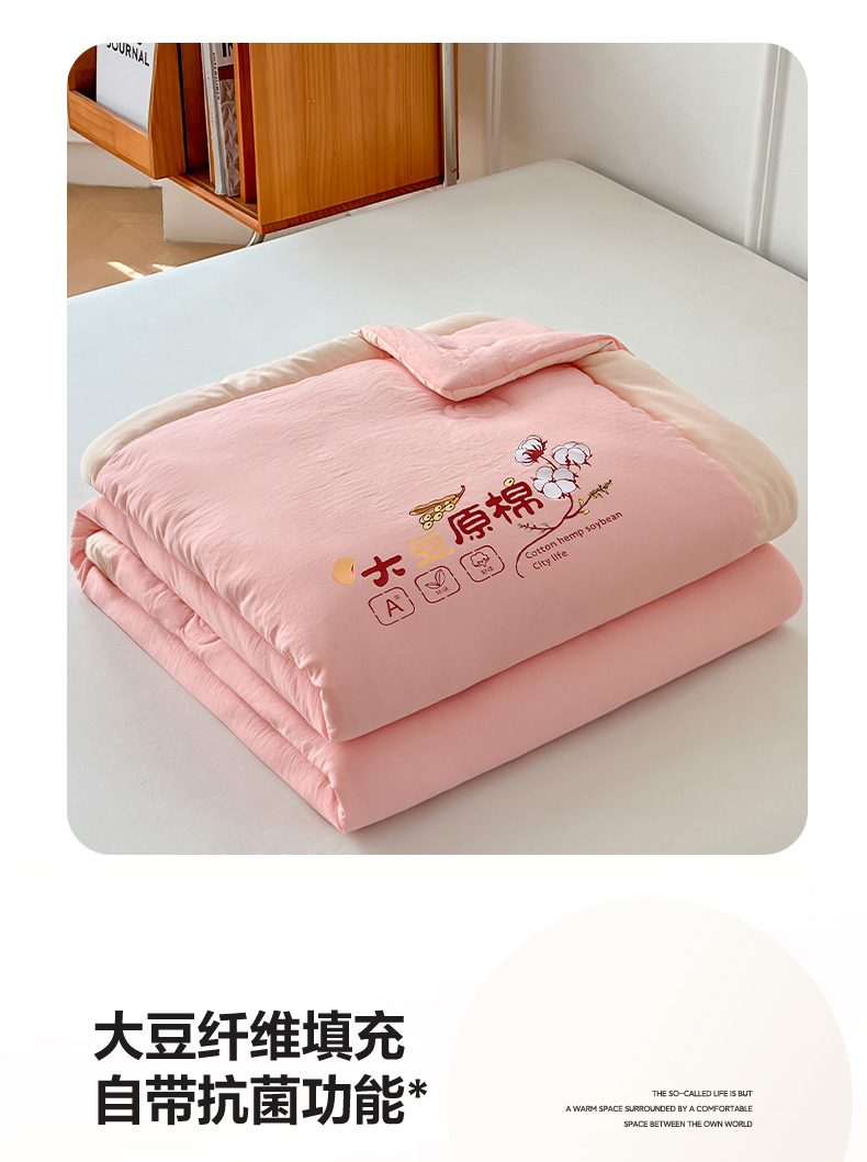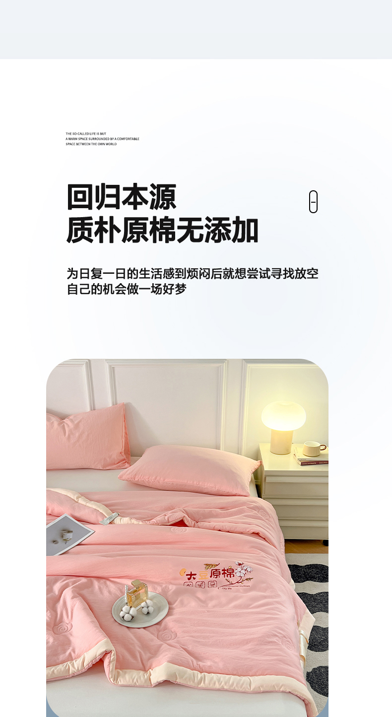 悦织语 2026新款A类纯色原棉大豆夏被 原棉-粉
