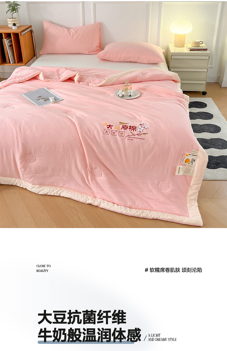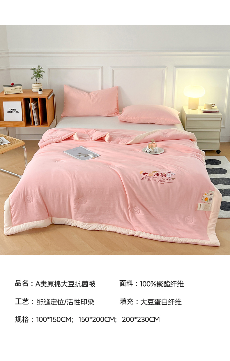 商品名称:悦织语 2026新款A类纯色原棉大豆夏被 原棉-粉