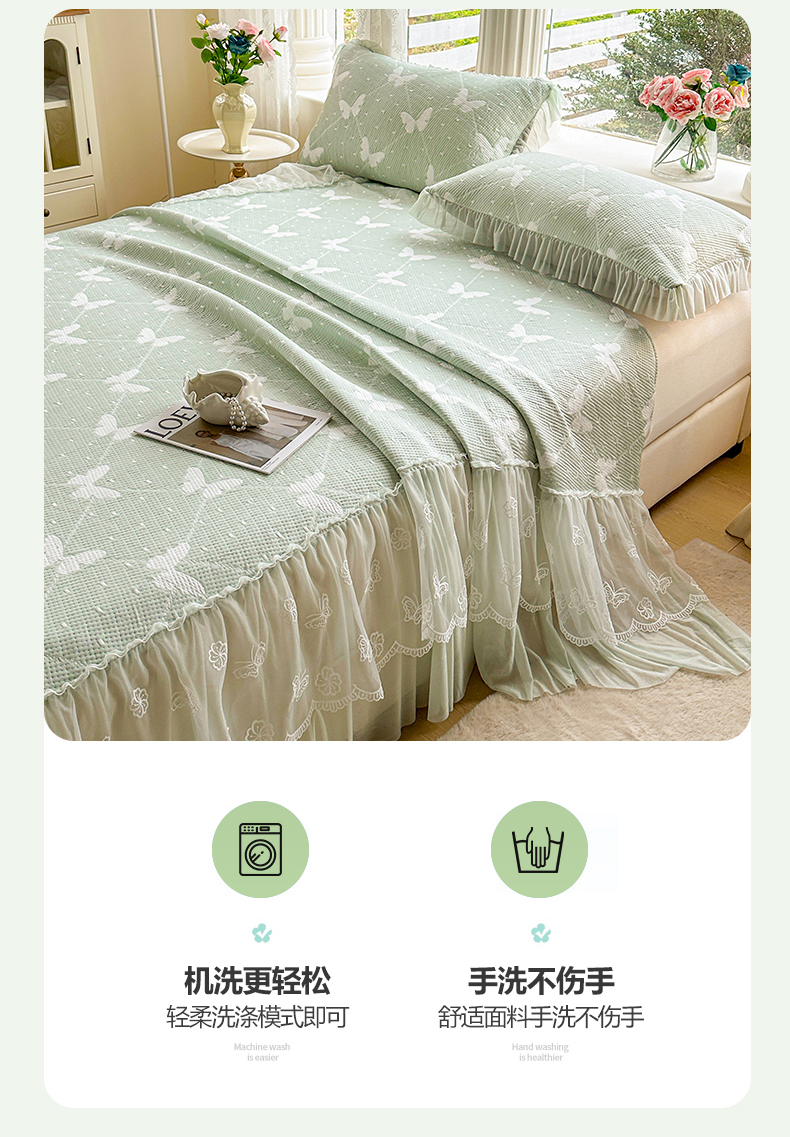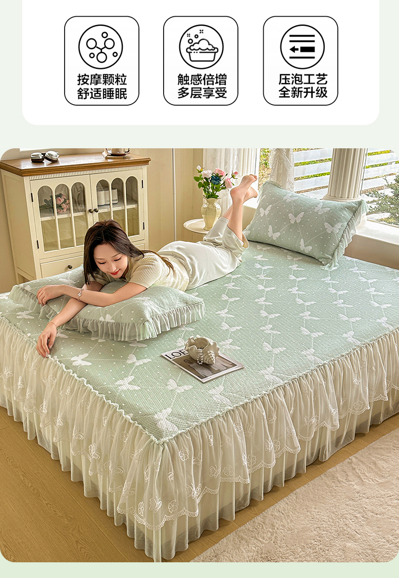 当前位置: 91家纺网 > 商品网购 > 床上用品 > 凉席 > 其他凉席 > 恒爱家纺 2026新款A类凉感冰豆豆床裙席三件套 蝶舞-绿