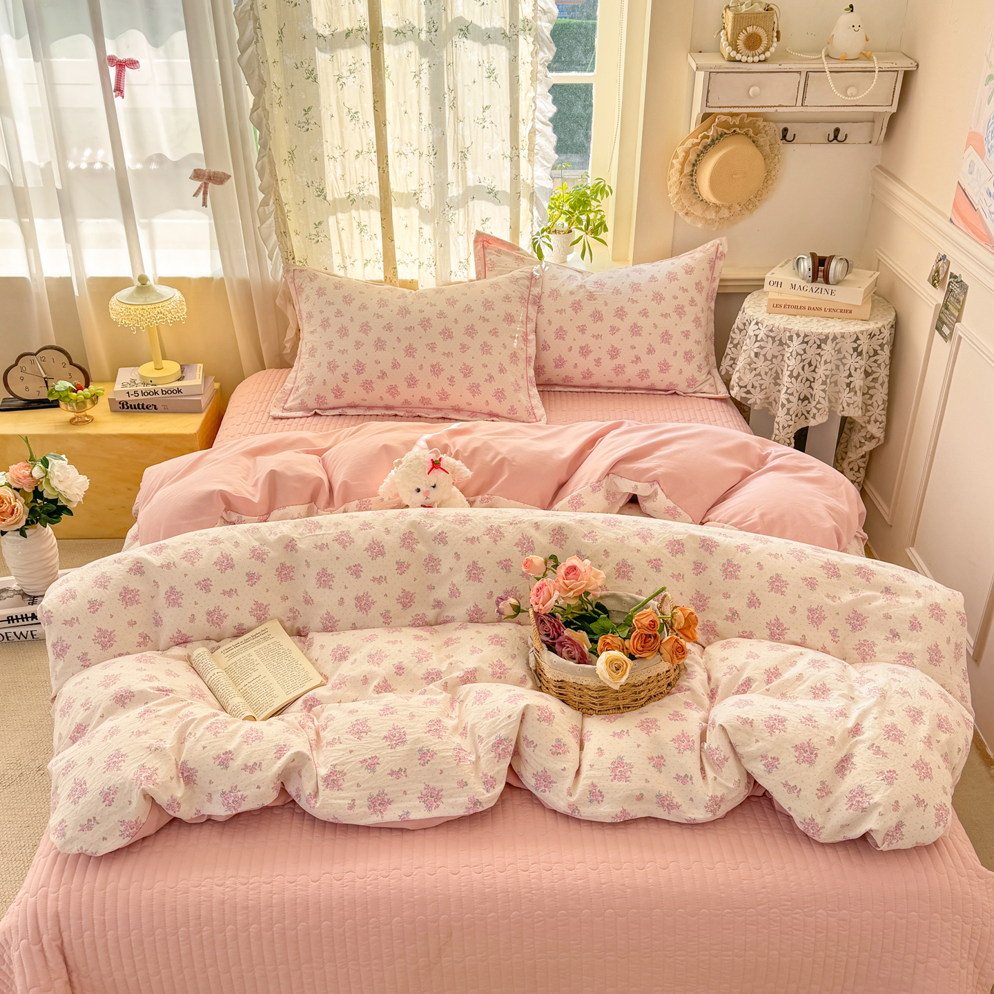 (总)富之航家纺 2025直播爆款公主风床盖夏被四件套,白玫瑰,露丝,奶油波点,小城故事,小兰花,樱桃千层,云水瑶
