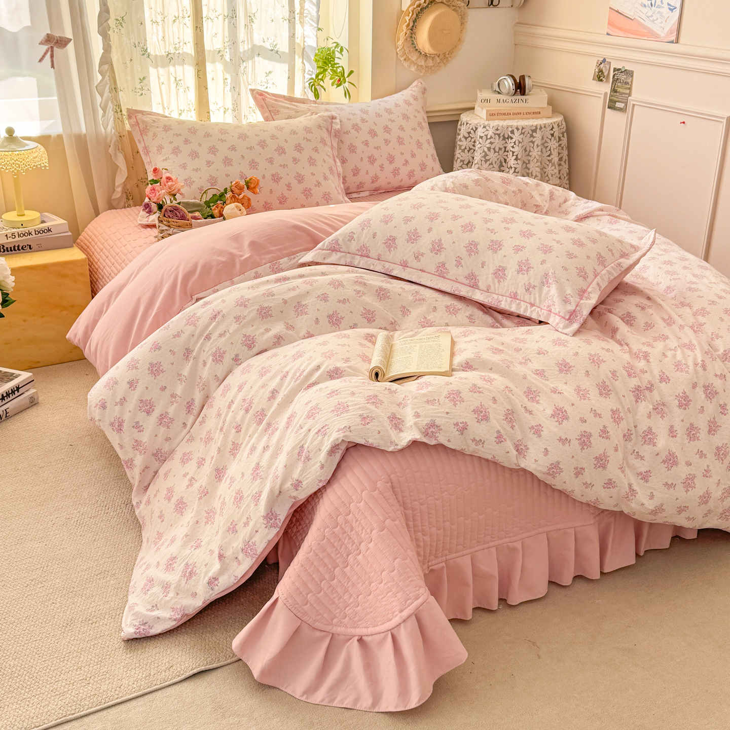 (总)2025新款韩版花边床盖四件套公主风床盖四件套,春日初见,繁花入梦,浮生若梦,花影,浅夏,倾城之恋,紫薇花园
