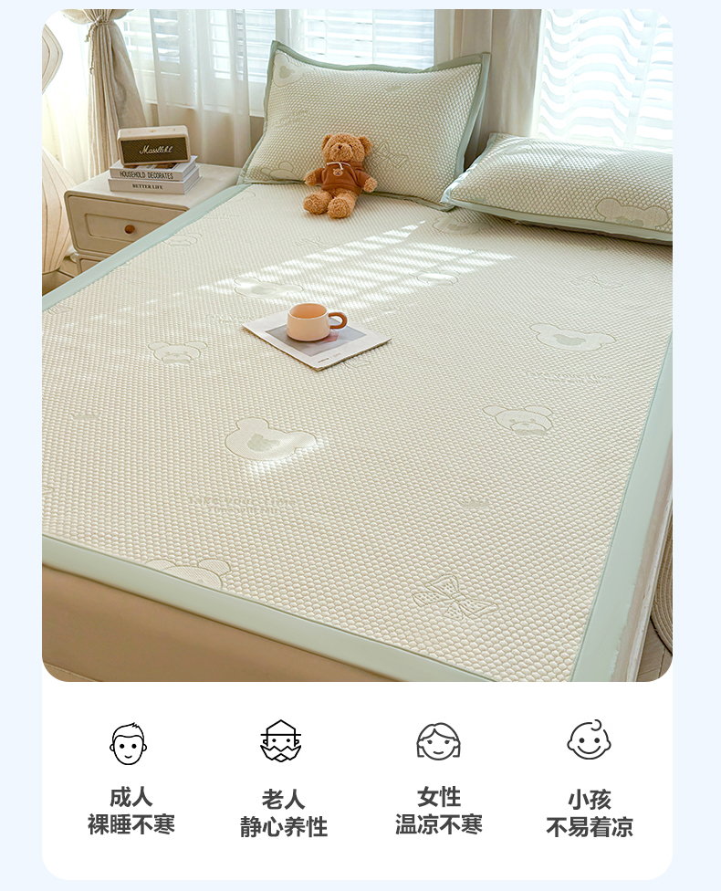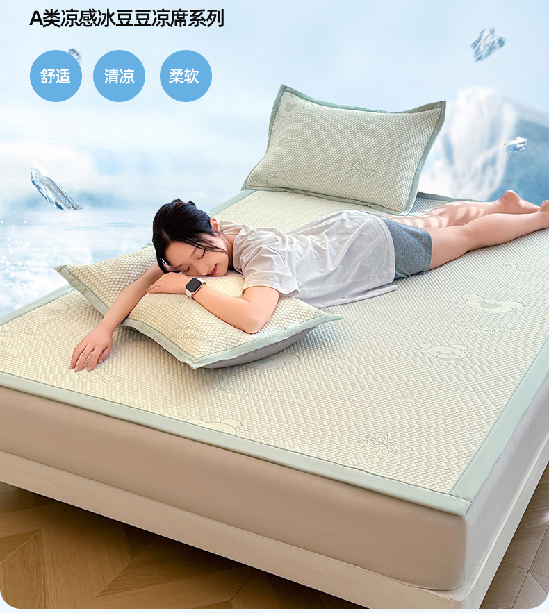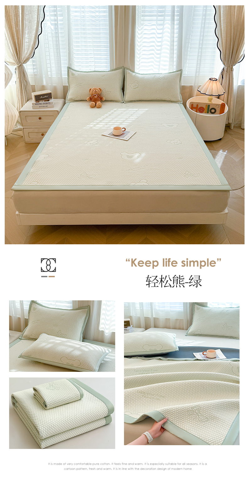 当前位置: 91家纺网 > 商品网购 > 床上用品 > 凉席 > 其他凉席 > 恒爱家纺 2026新款A类凉感冰豆豆凉席系列三件套 轻松熊-绿