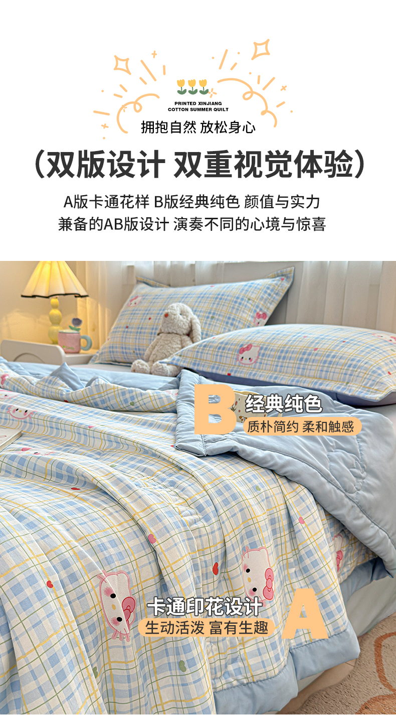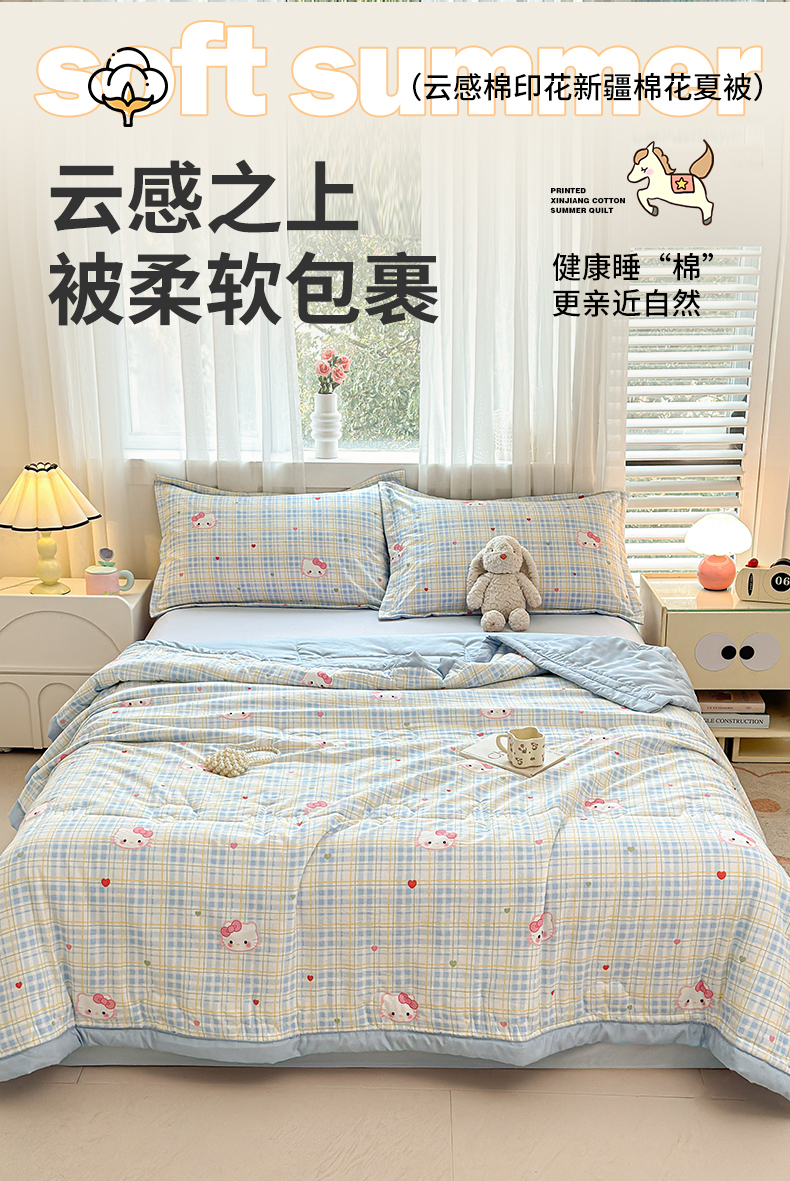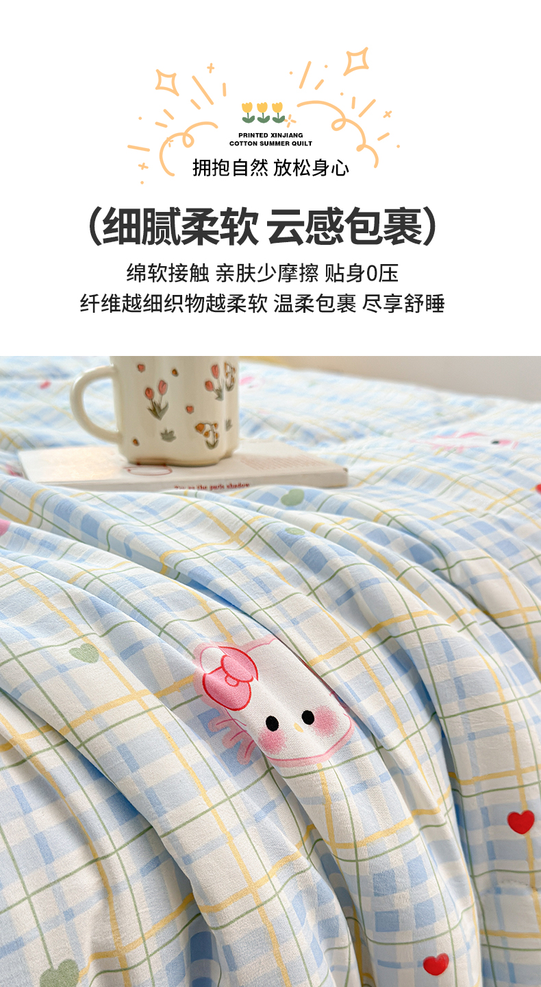 (总)西域种棉人·千百笠 2026新款A类新疆棉花夏凉被加宽包边水洗棉卡通印花吸湿透气棉花夏被空调被,云感宝莉马,云感波点,云感草莓,云感动物城,云感队列兔,云感红苹果,云感蝴蝶结,云感花彩,云感花彩兔,云感花梦女孩,云感花之蔓,云感晶咪,云感腊肠狗,云感萌仔,云感奶芙猫,云感派对,云感青苹果,云感瑞拉,云感生日狗,云感生日派,云感甜品乐园,云感小繁花,云感小熊,云感星星,云感星星草莓,云感幸运喵,云感叶初语,云感郁金兔