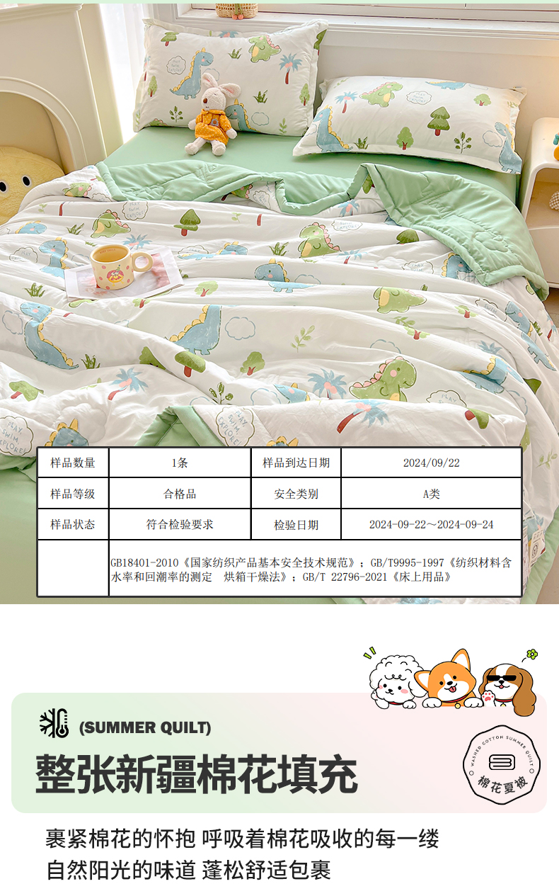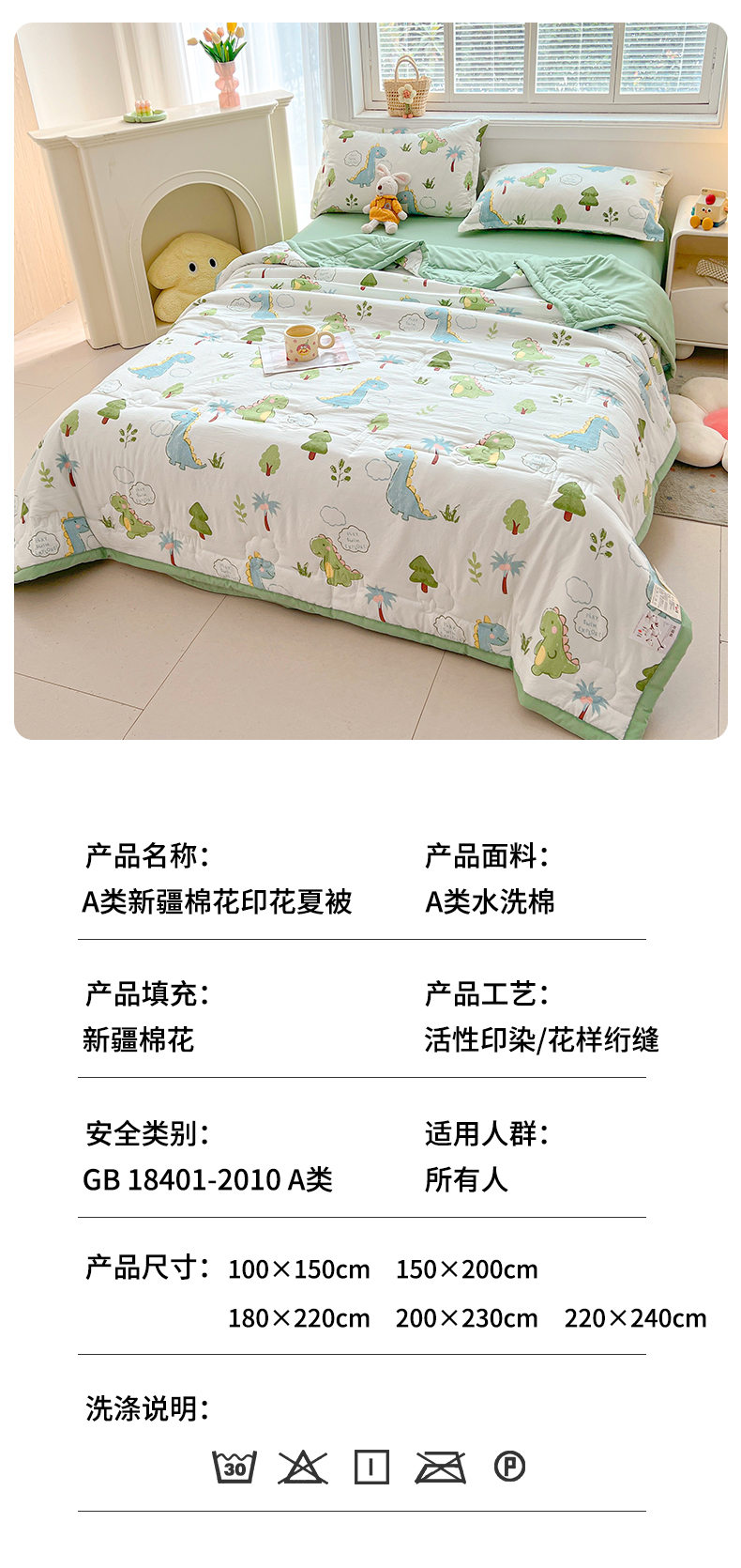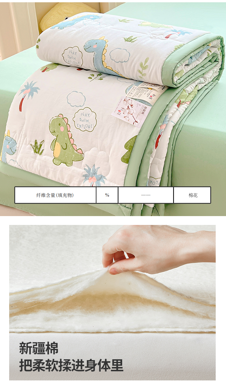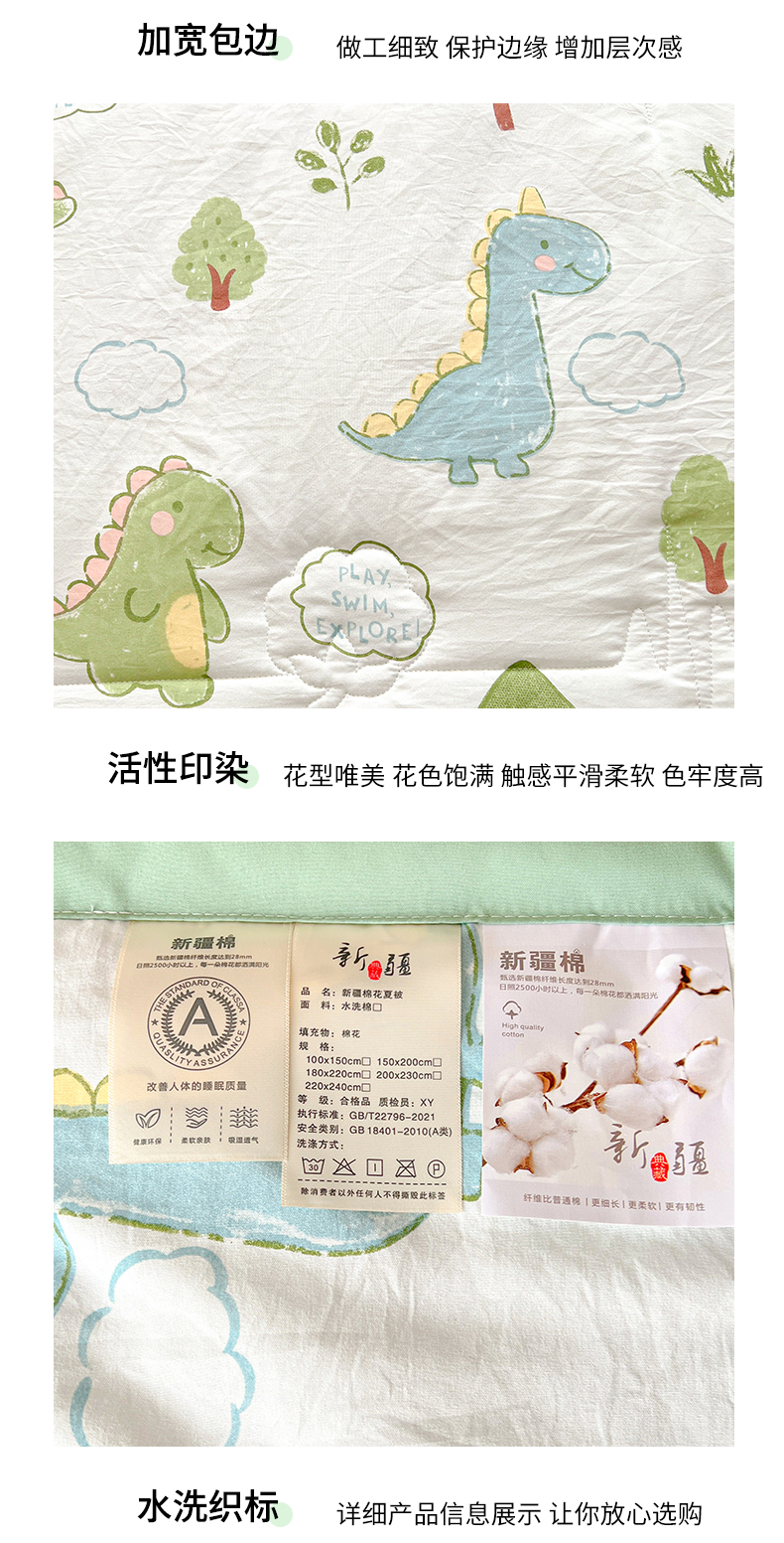 商品名称:西域种棉人·千百笠 2026新款A类印花手包边凌香新疆棉花夏被 凌香 恐龙